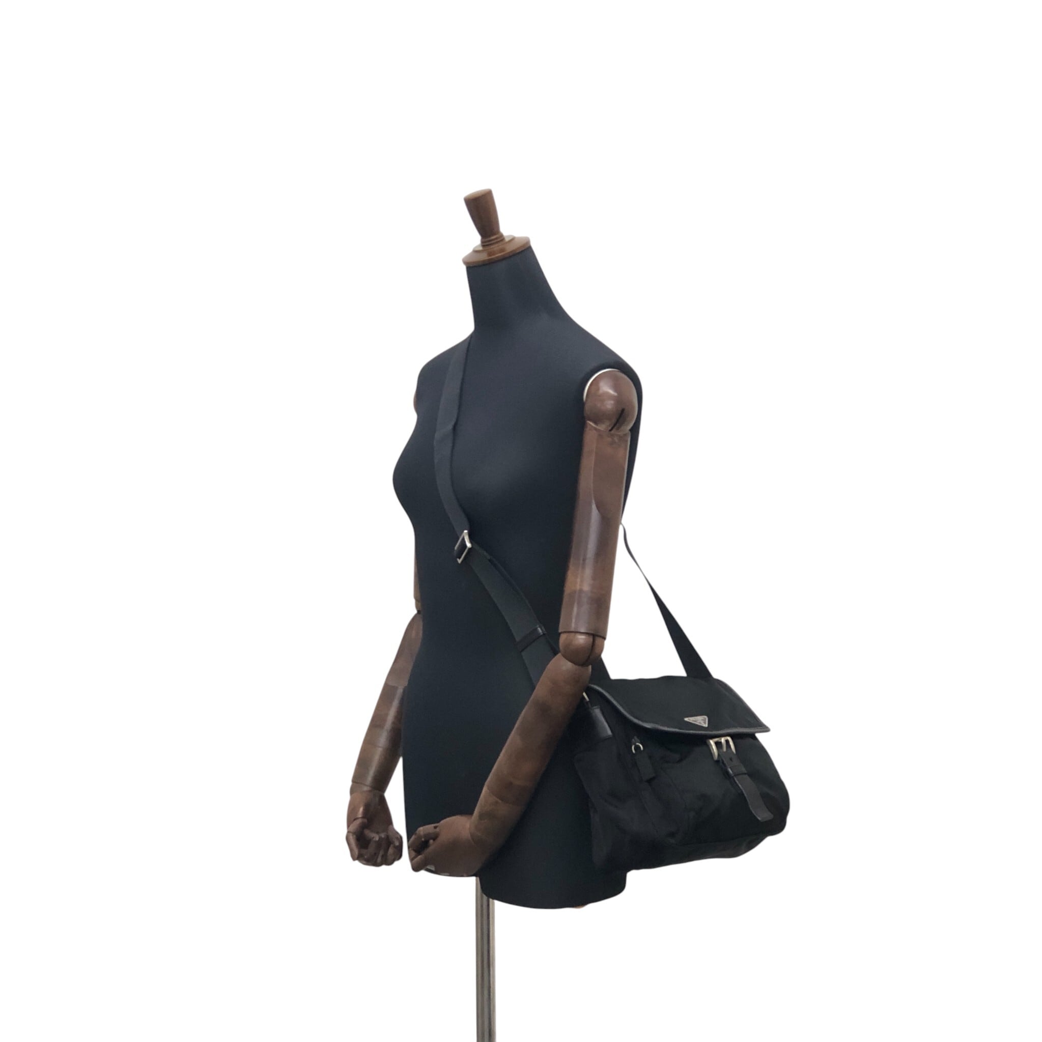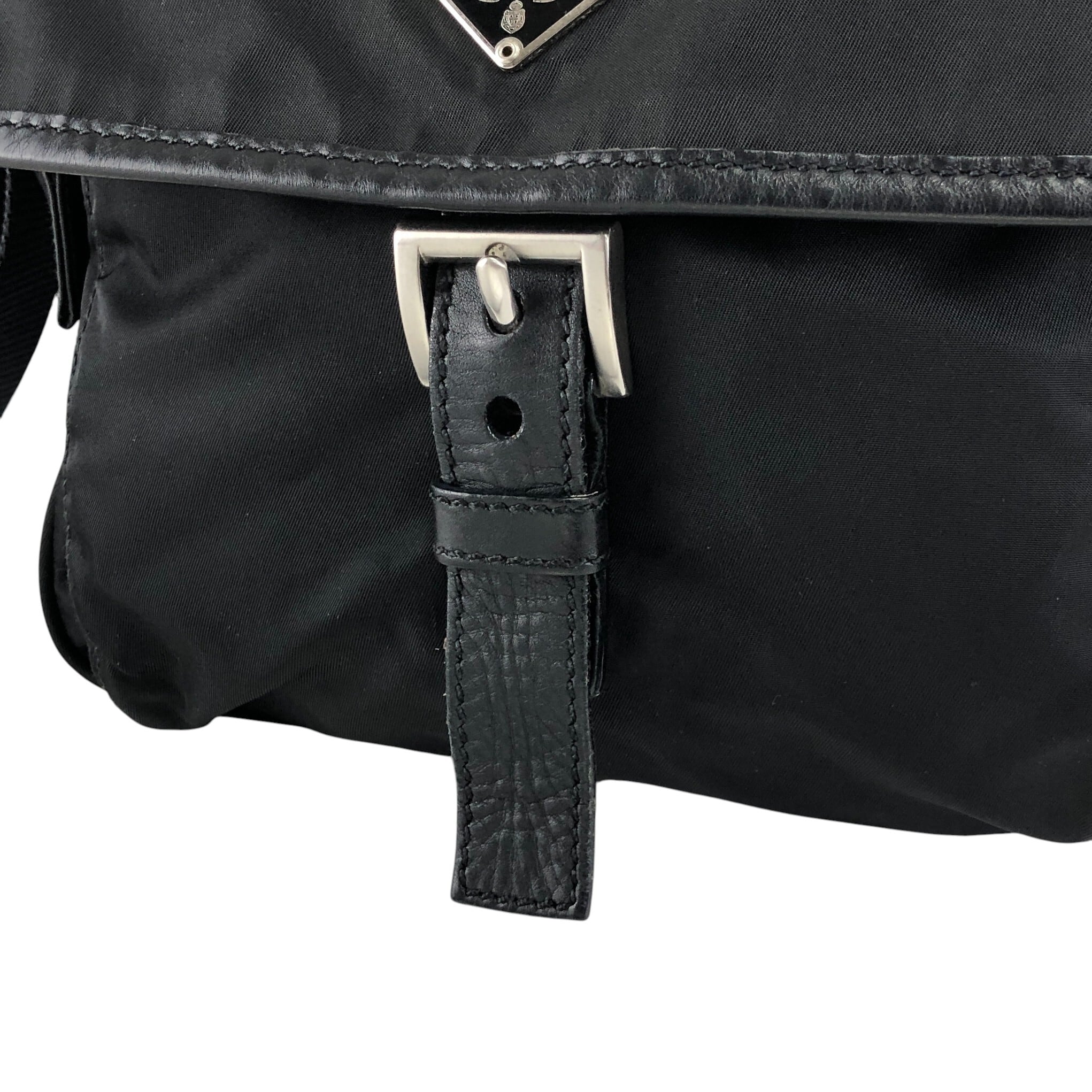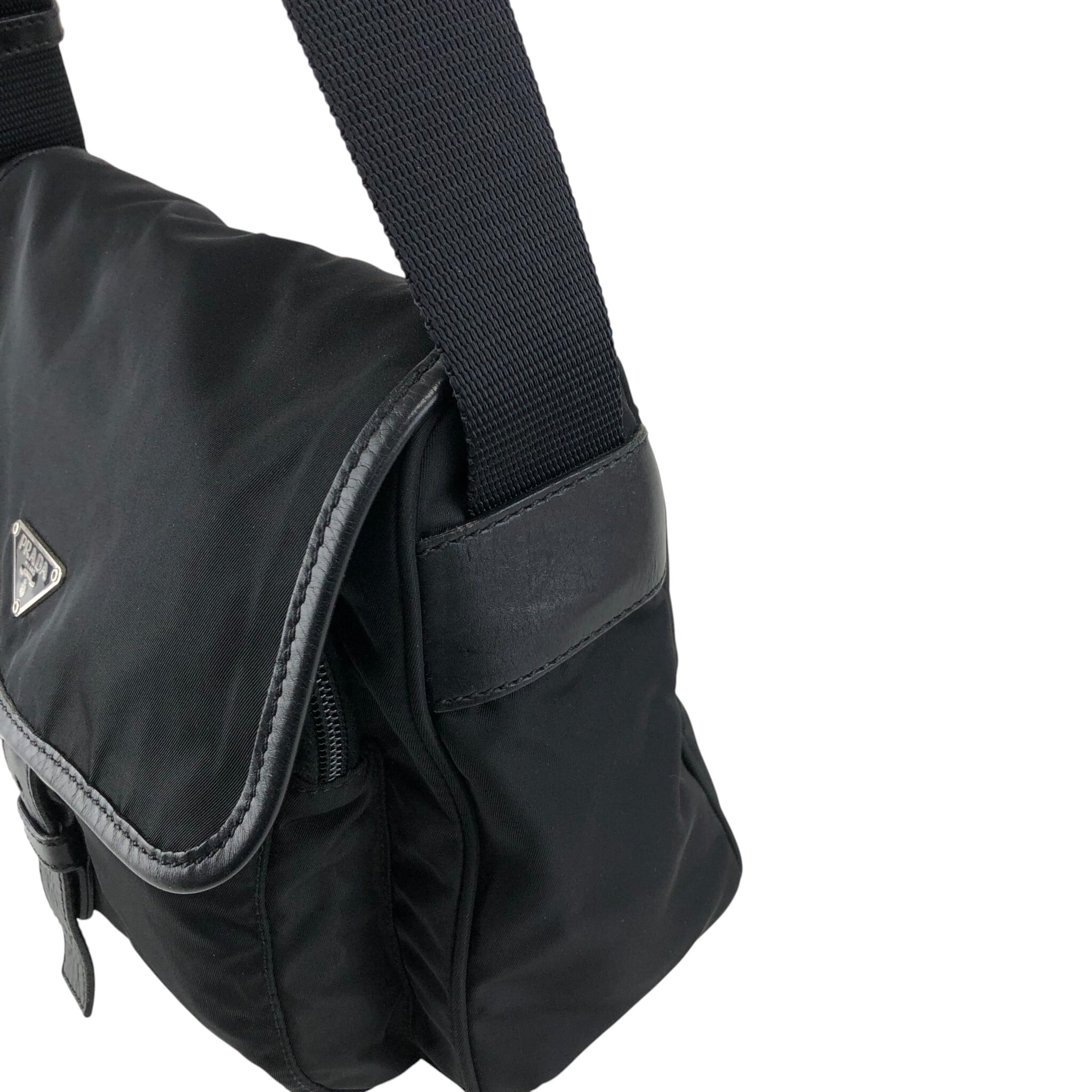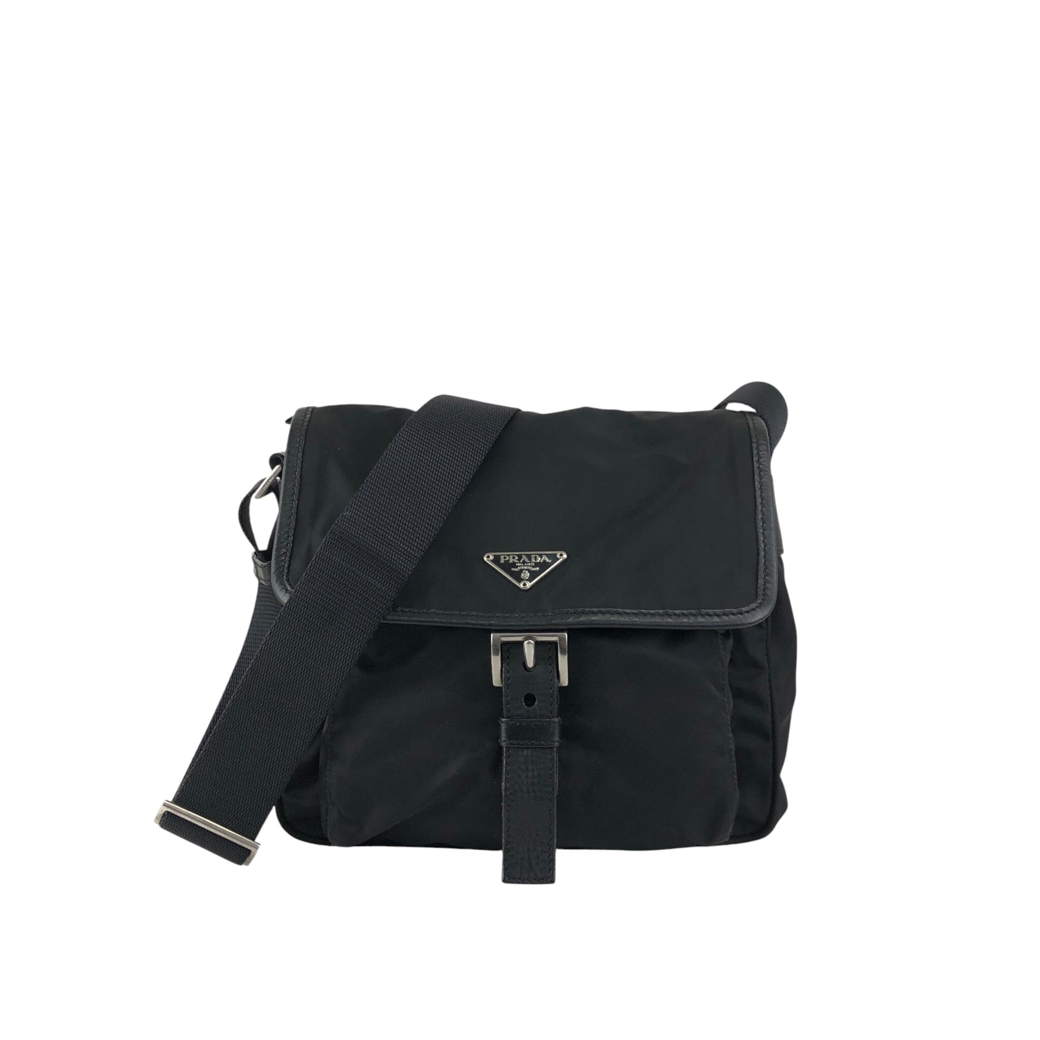 PRADA プラダ ショルダーバッグ ブラック トライアングルロゴ ナイロン フロントバックル vintage ヴィンテージ オールド kyt5ds