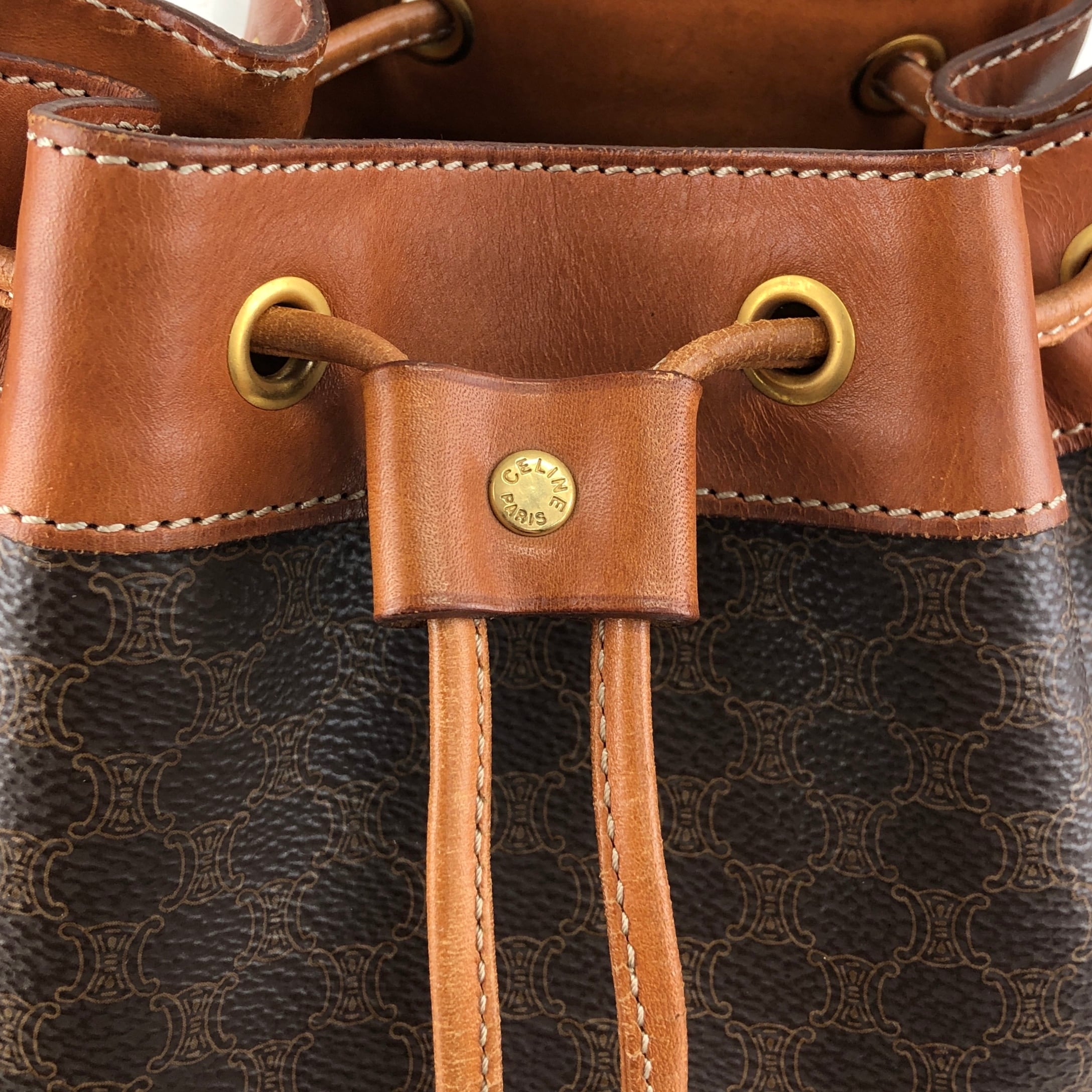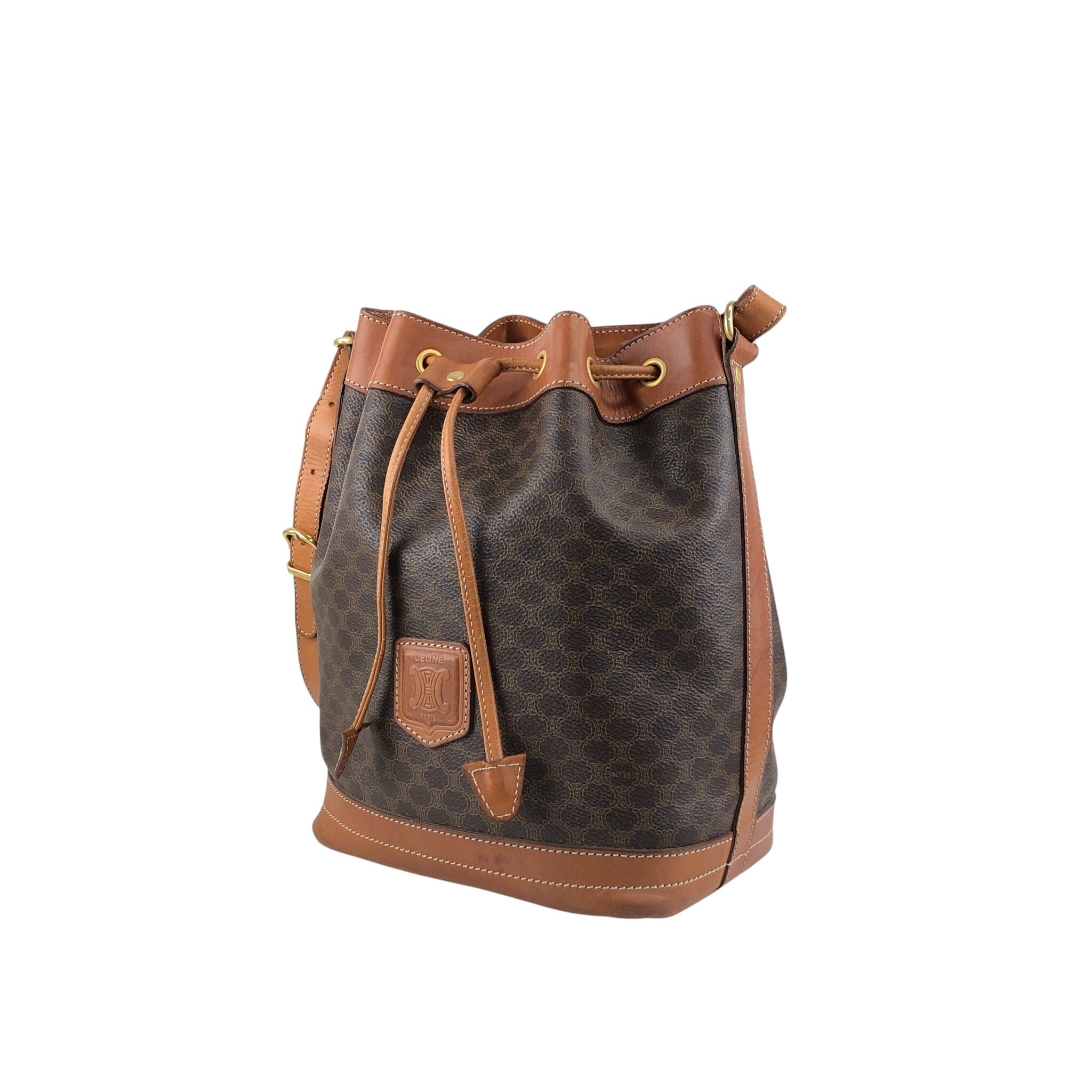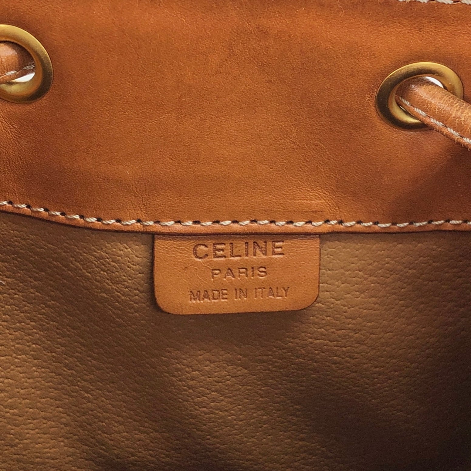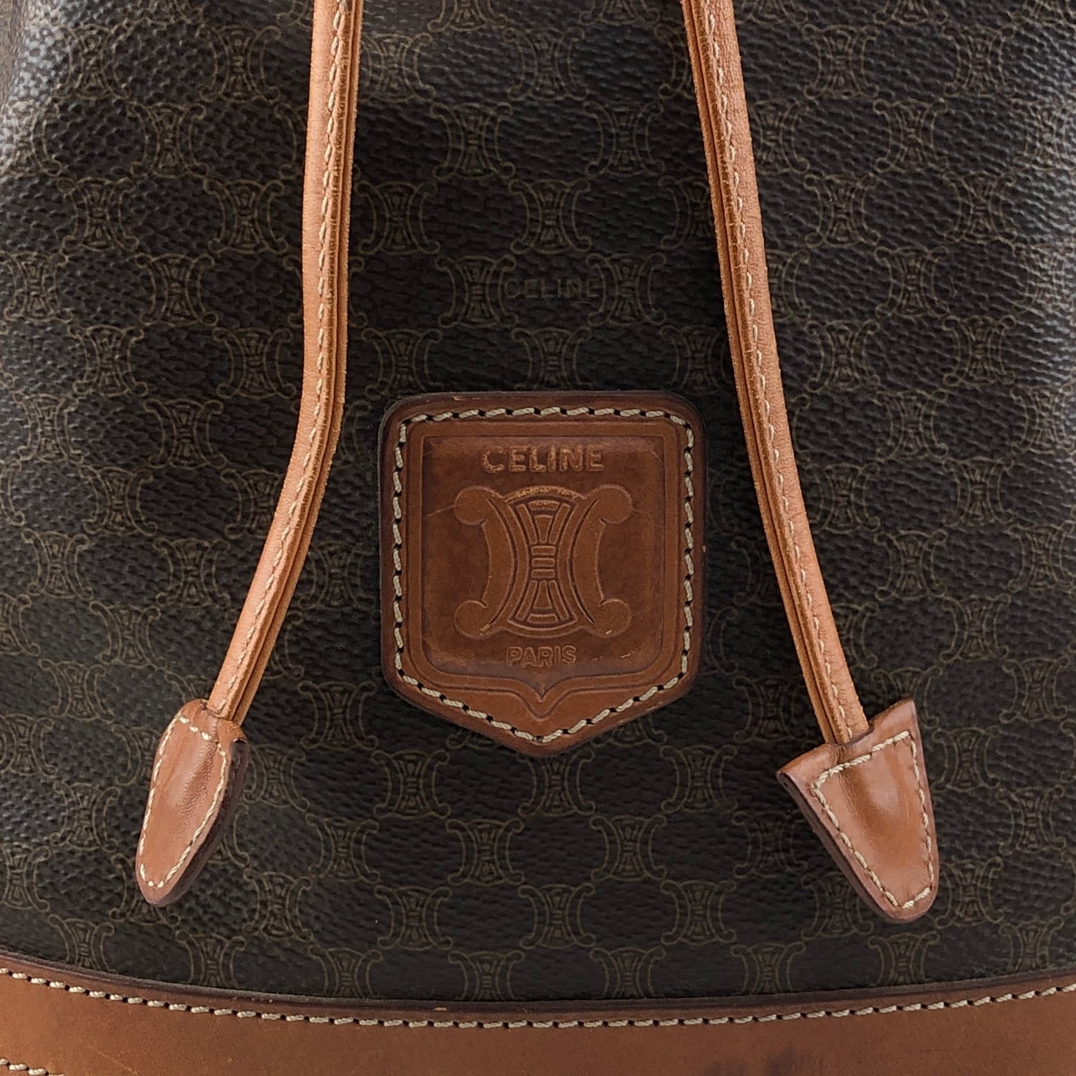 CELINE セリーヌ マカダム ショルダーバッグ ブラウン ブラゾン型押し PVCレザー 巾着 vintage ヴィンテージ オールド 2wtdcs