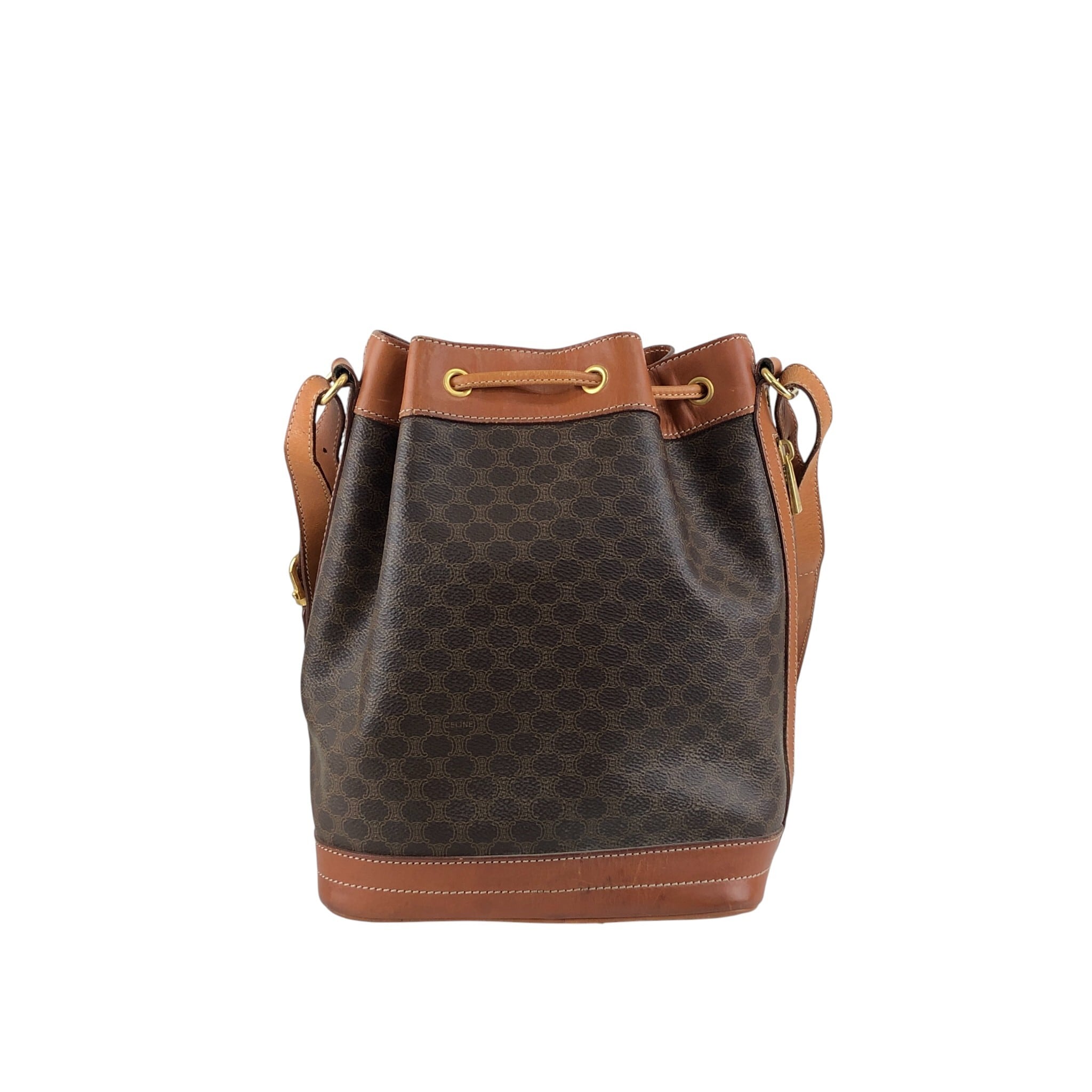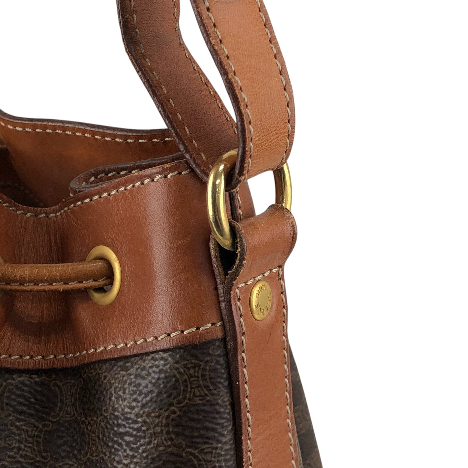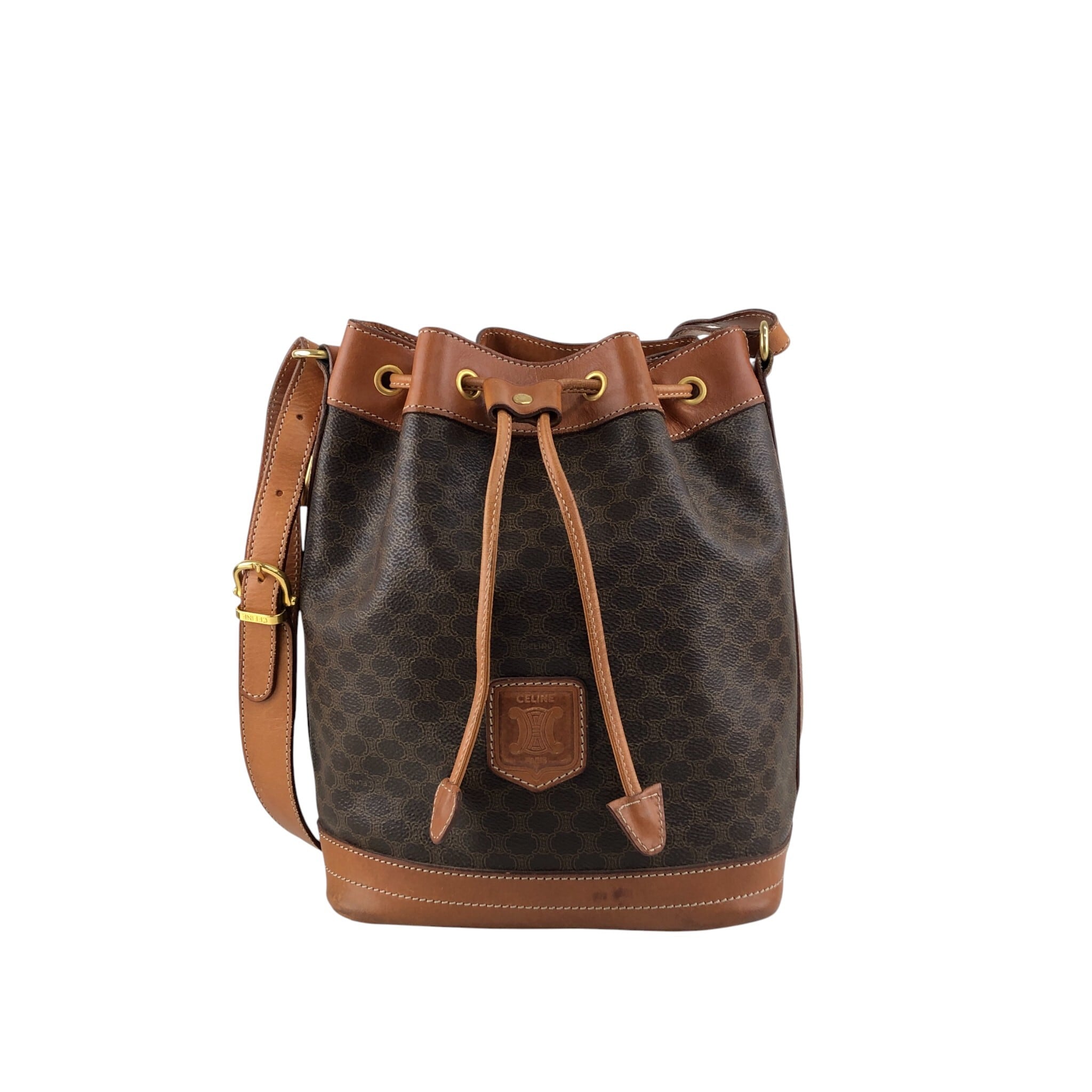 CELINE セリーヌ マカダム ショルダーバッグ ブラウン ブラゾン型押し PVCレザー 巾着 vintage ヴィンテージ オールド 2wtdcs