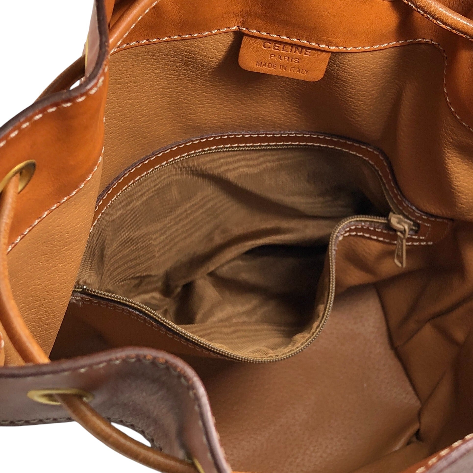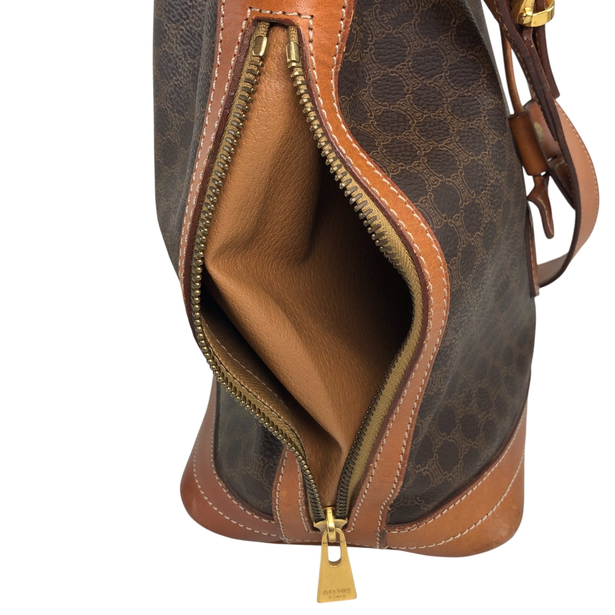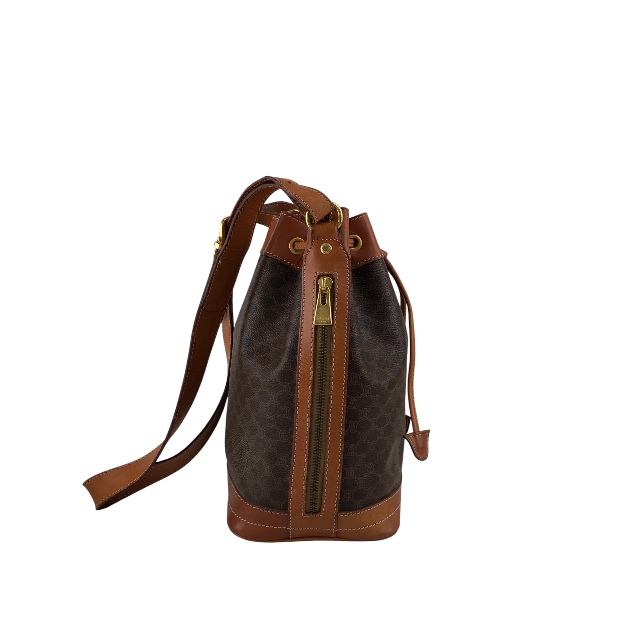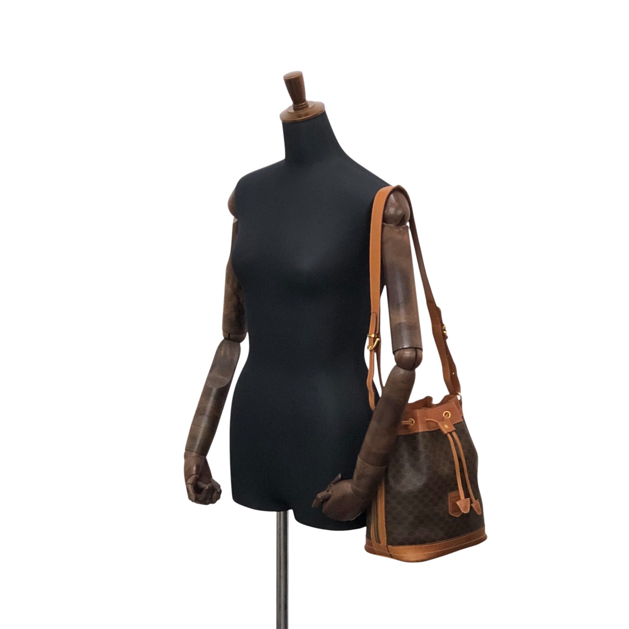 CELINE セリーヌ マカダム ショルダーバッグ ブラウン ブラゾン型押し PVCレザー 巾着 vintage ヴィンテージ オールド 2wtdcs