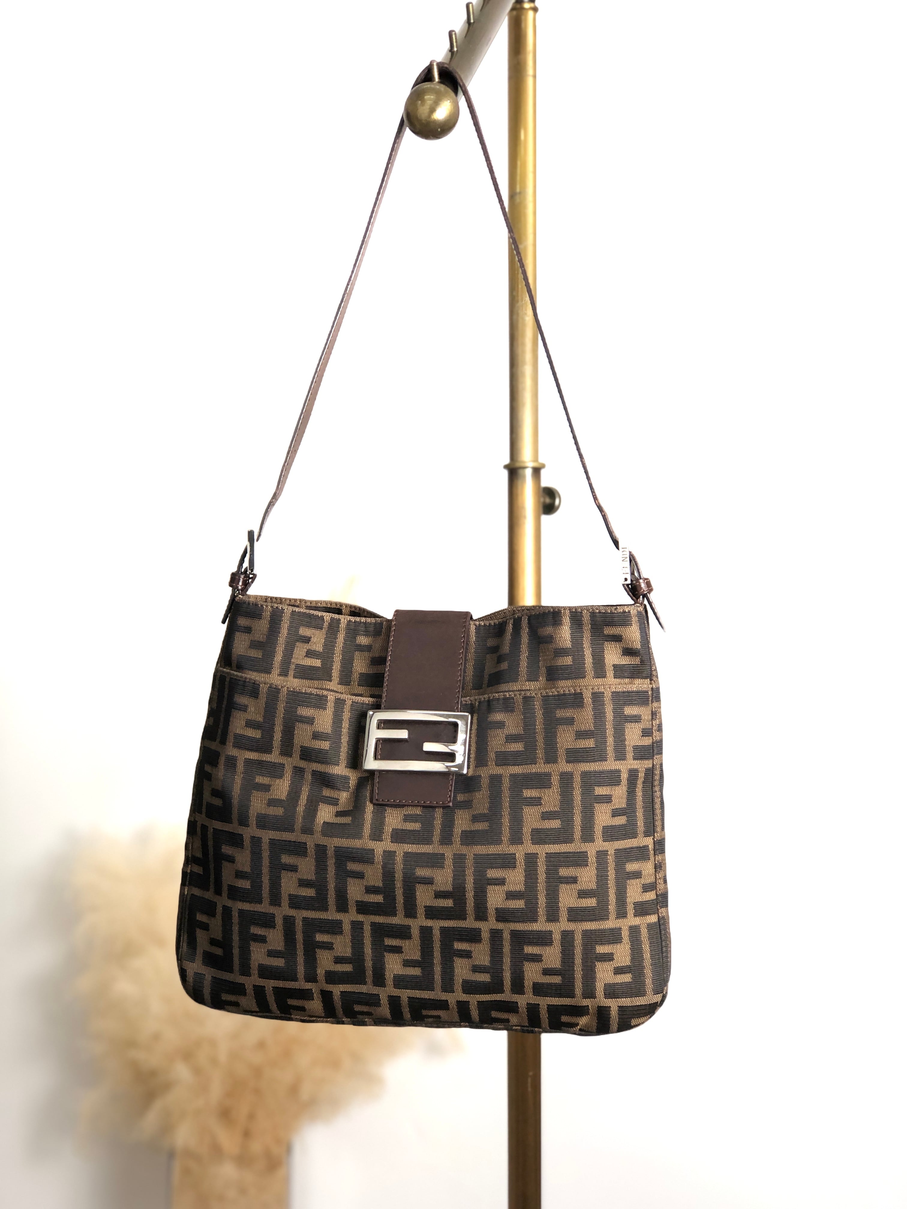 FENDI フェンディ ズッカ ショルダーバッグ ブラウン ロゴ ジャガード vintage ヴィンテージ オールド x7uxd4