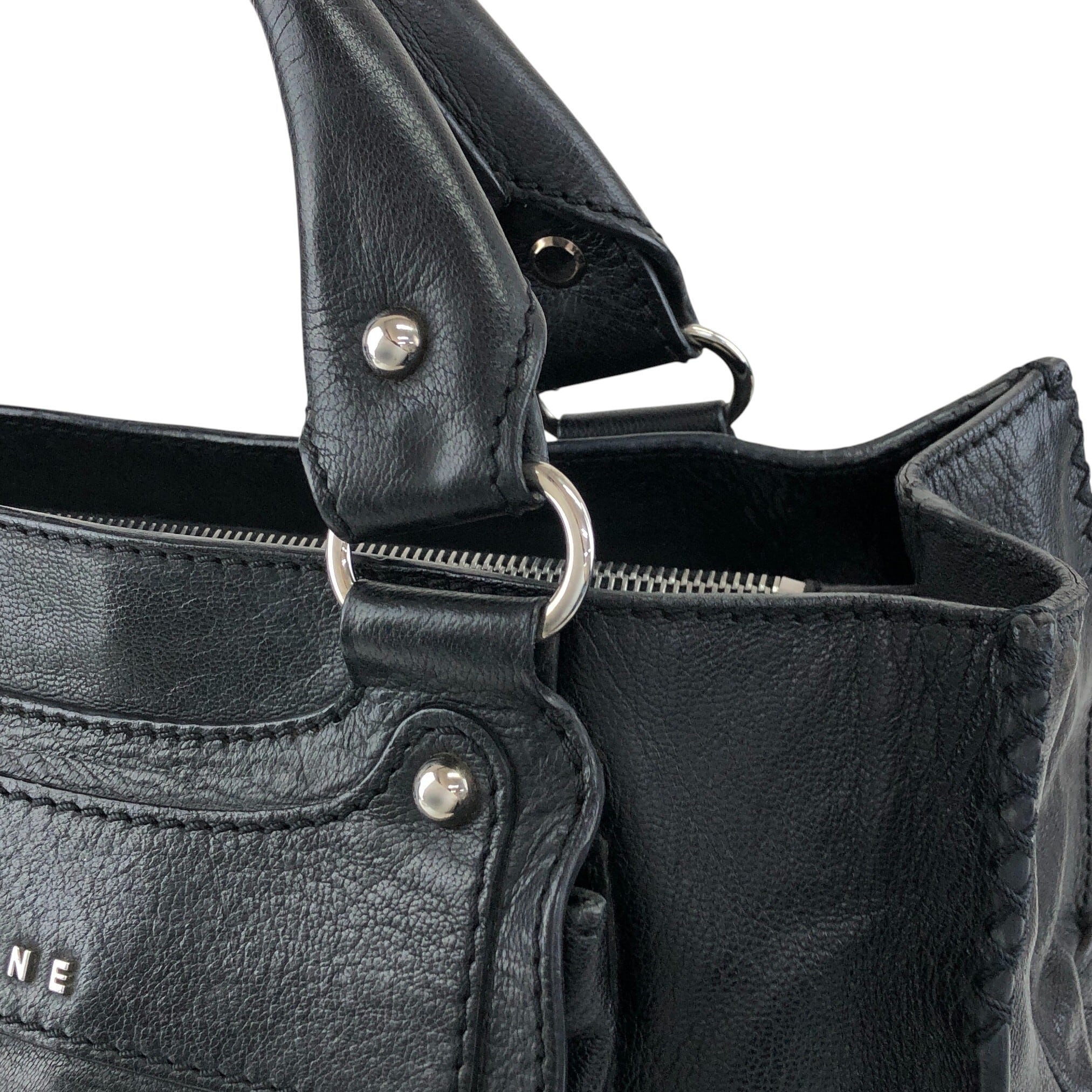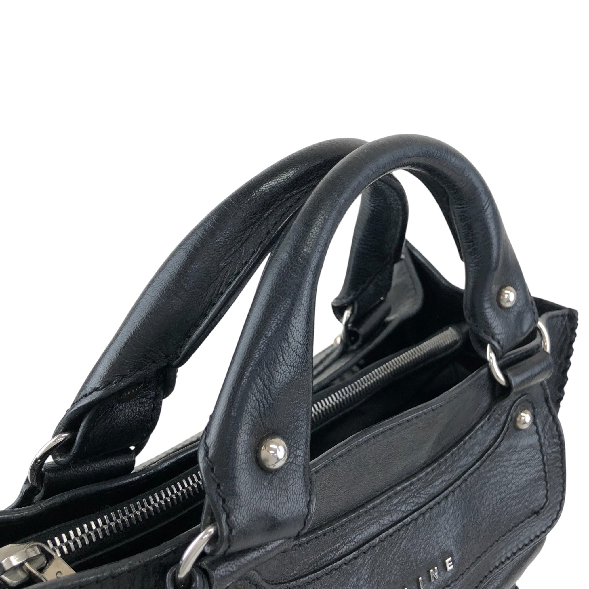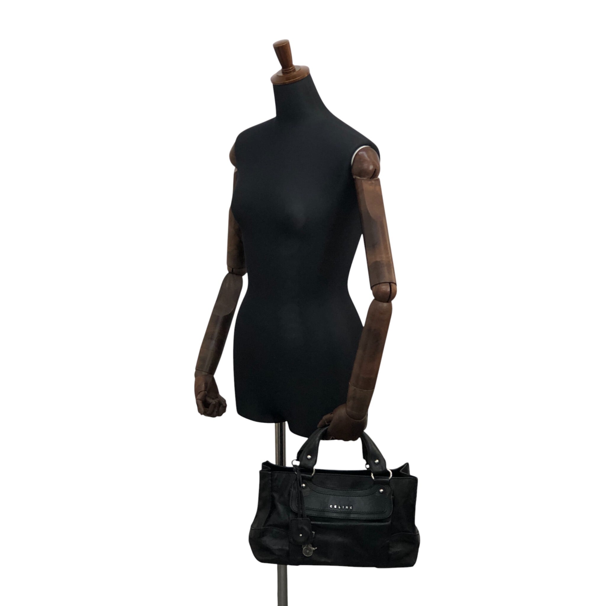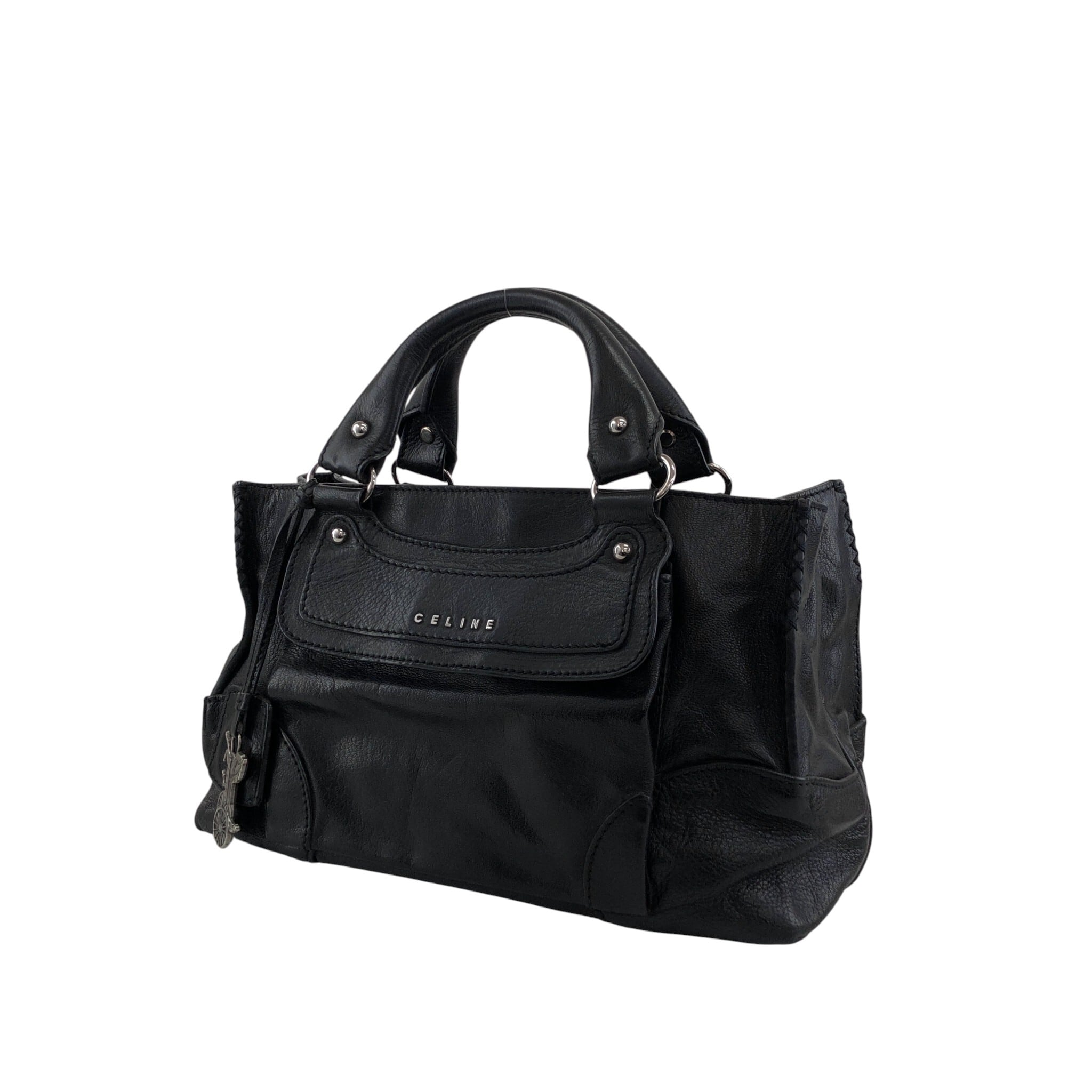 CELINE セリーヌ ハンドバッグ ブラック ロゴ レザー 馬車 ブギーバッグ vintage ヴィンテージ オールド v5s4uu
