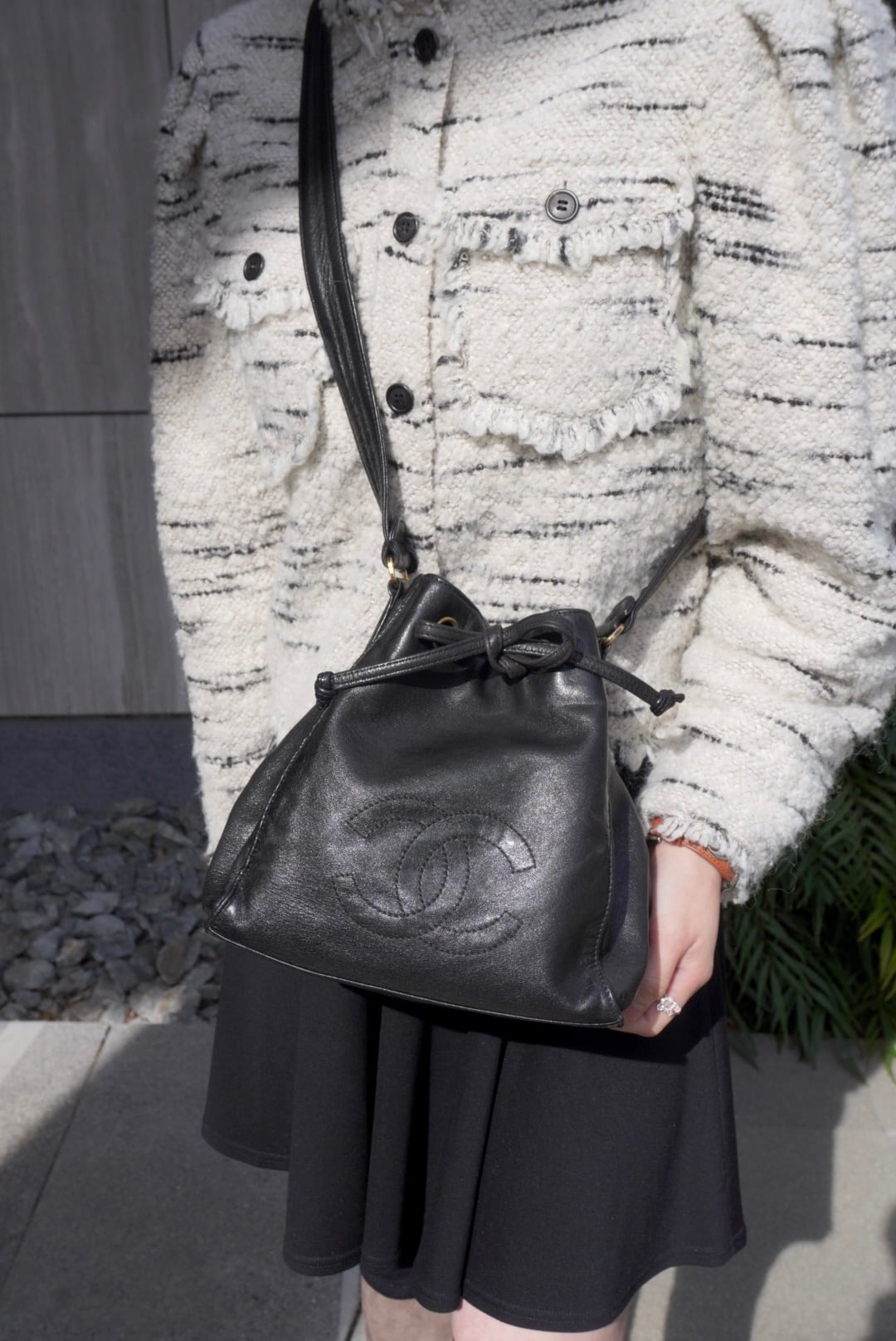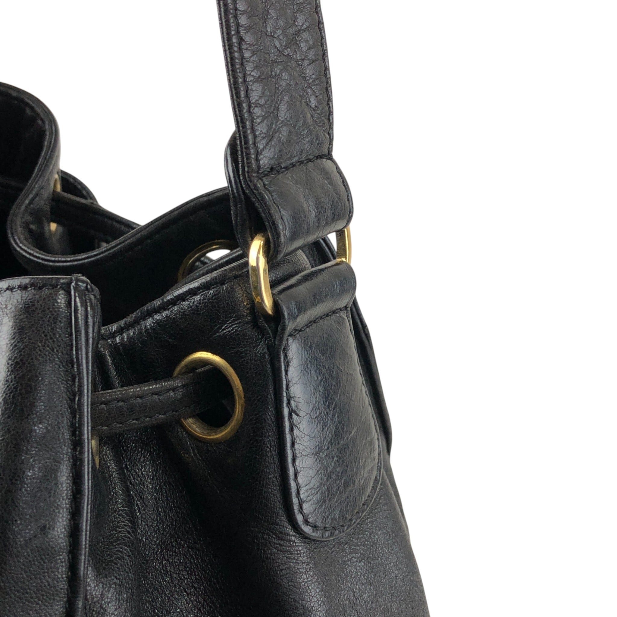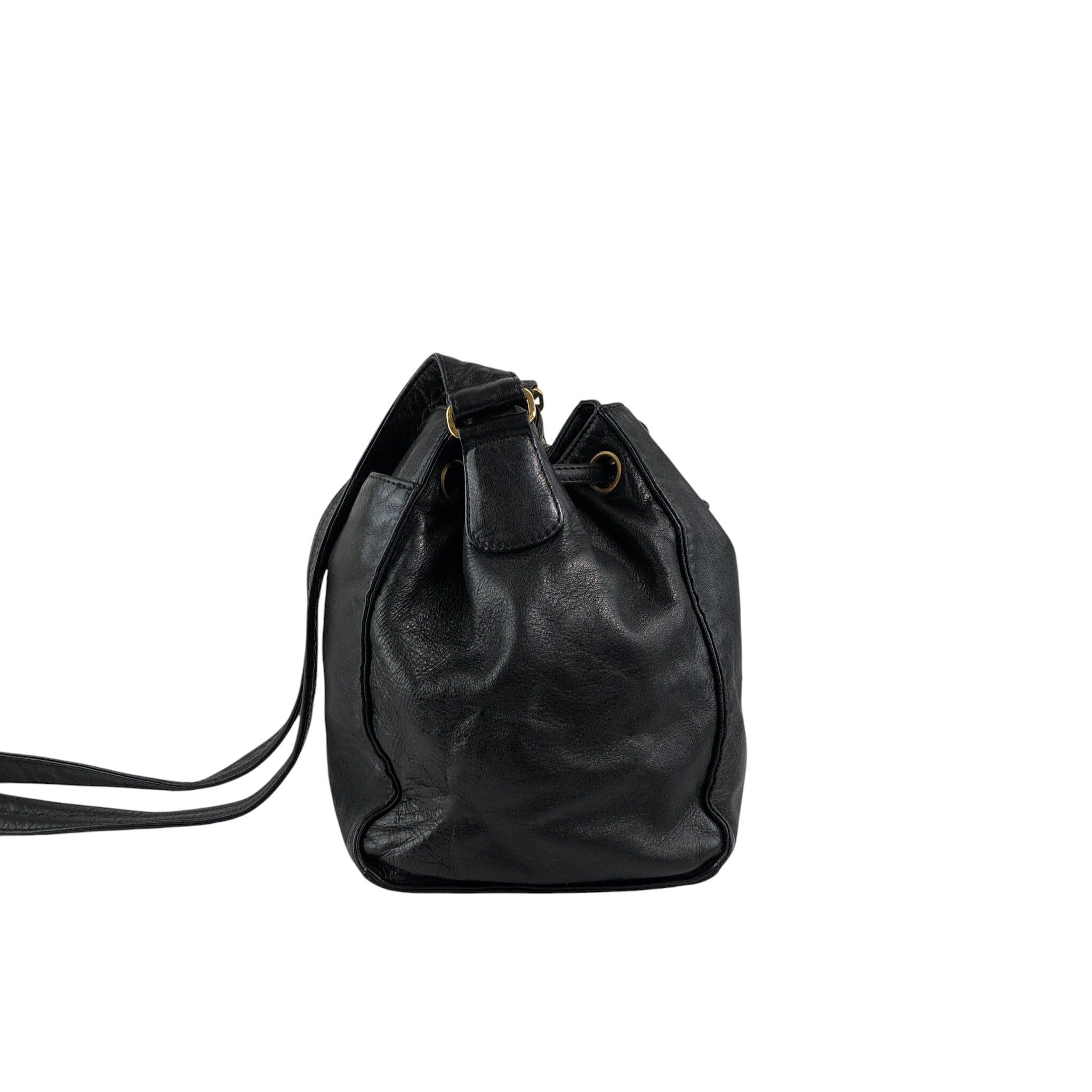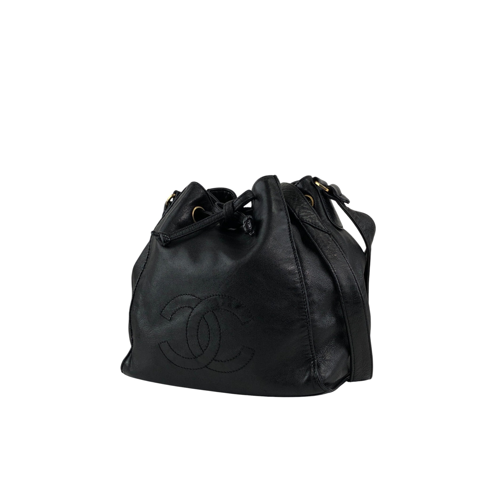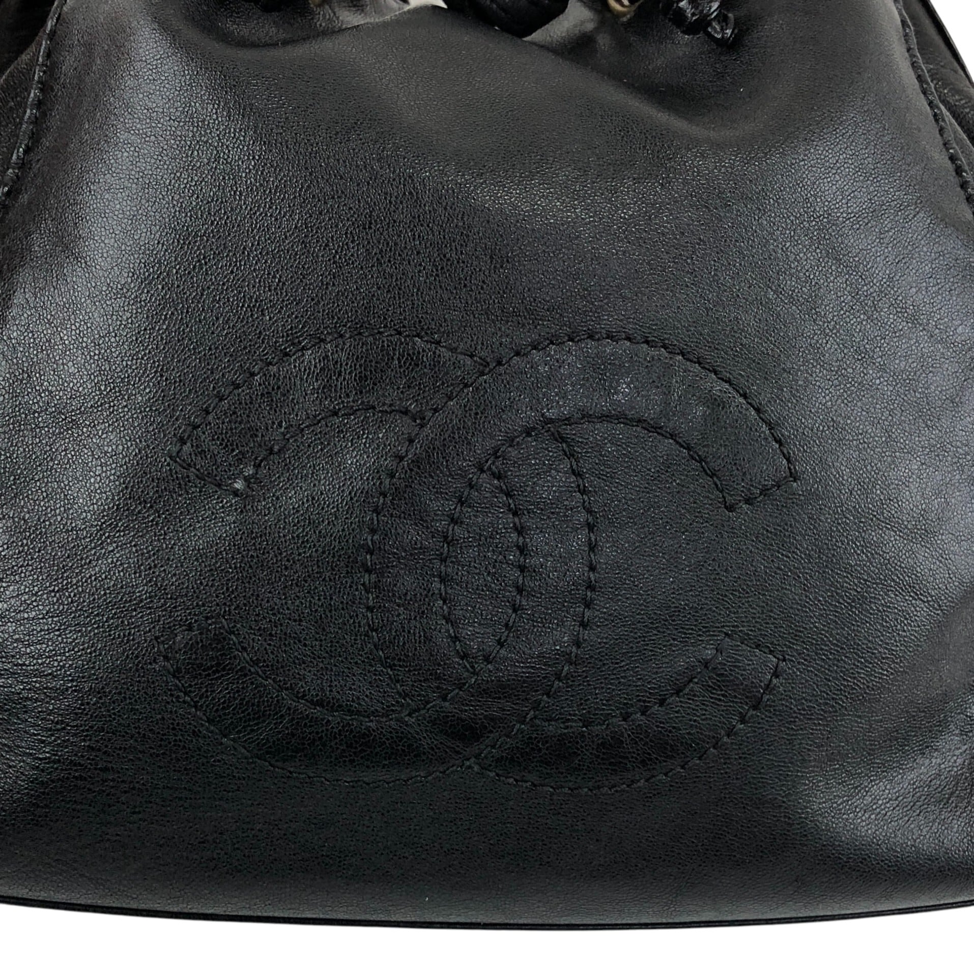 CHANEL シャネル ショルダーバッグ ブラック ココマーク レザー 巾着 vintage ヴィンテージ オールド ymaz3i