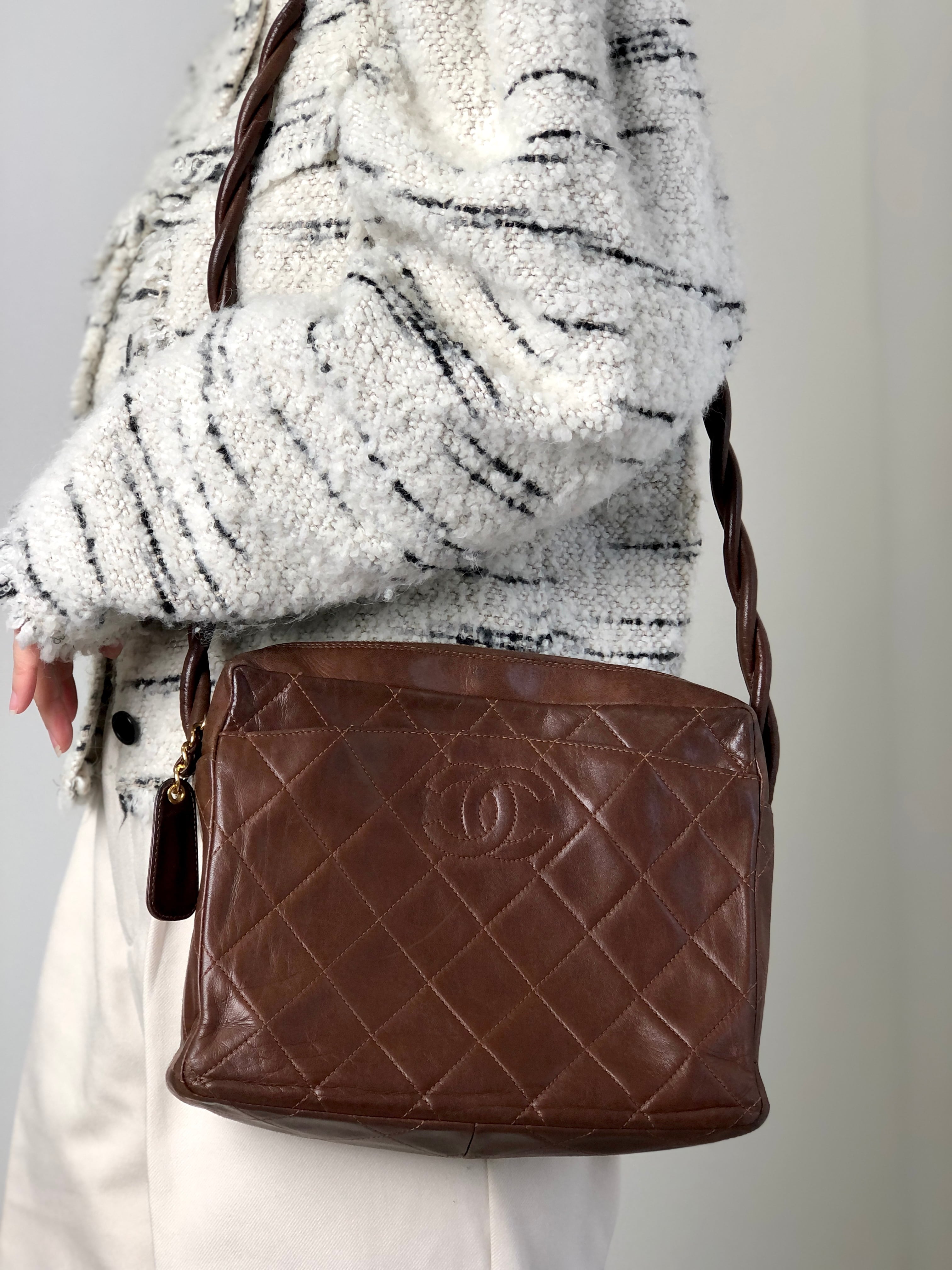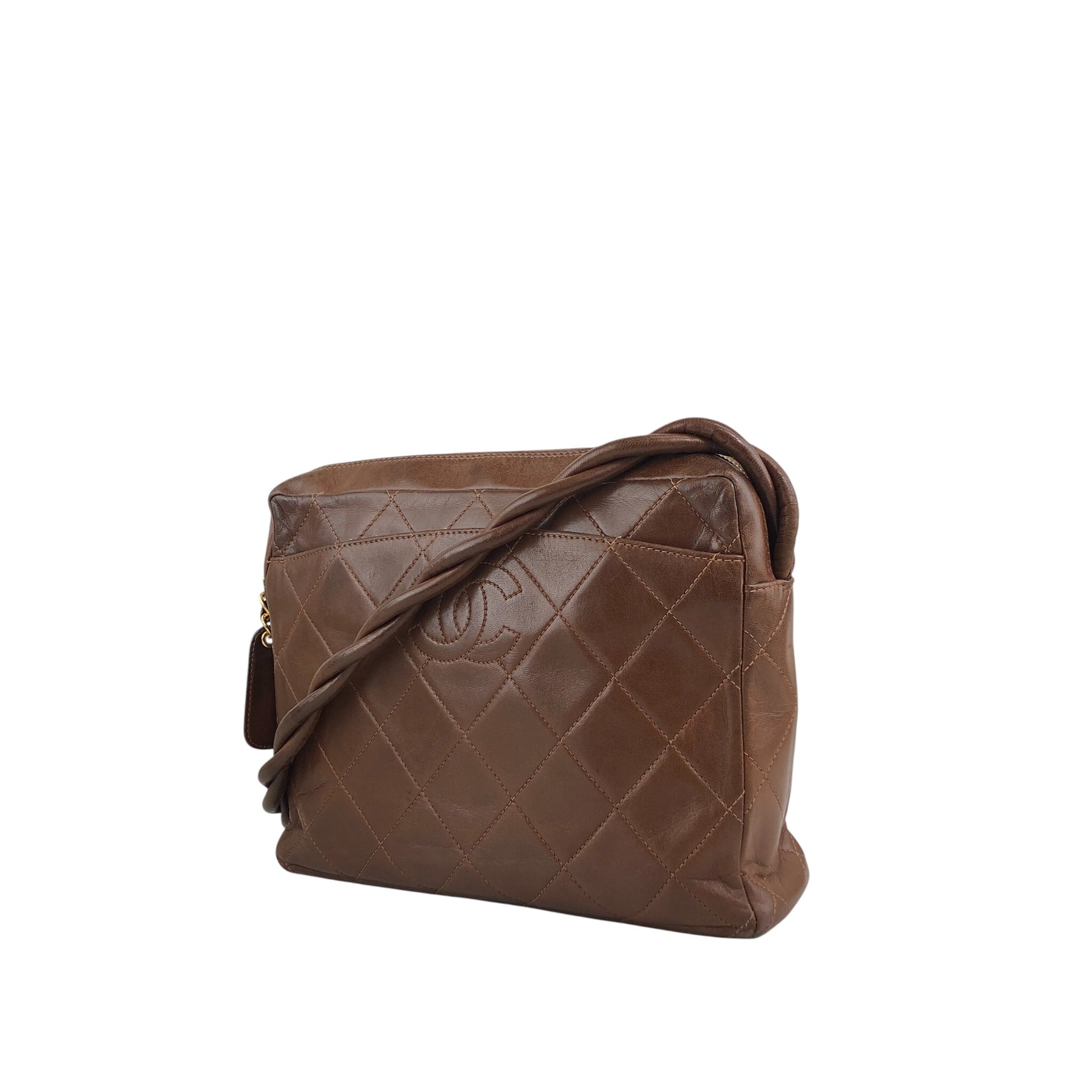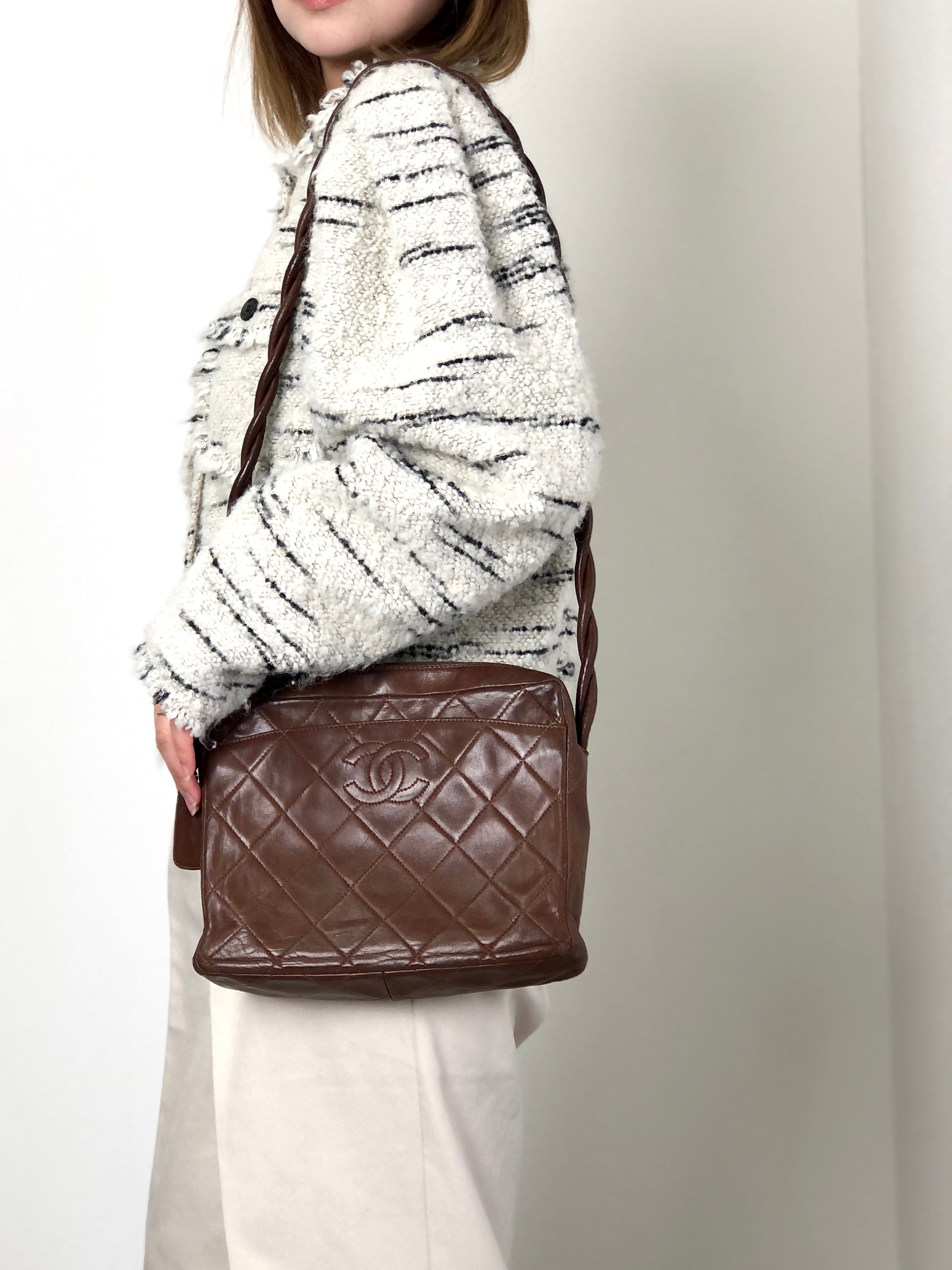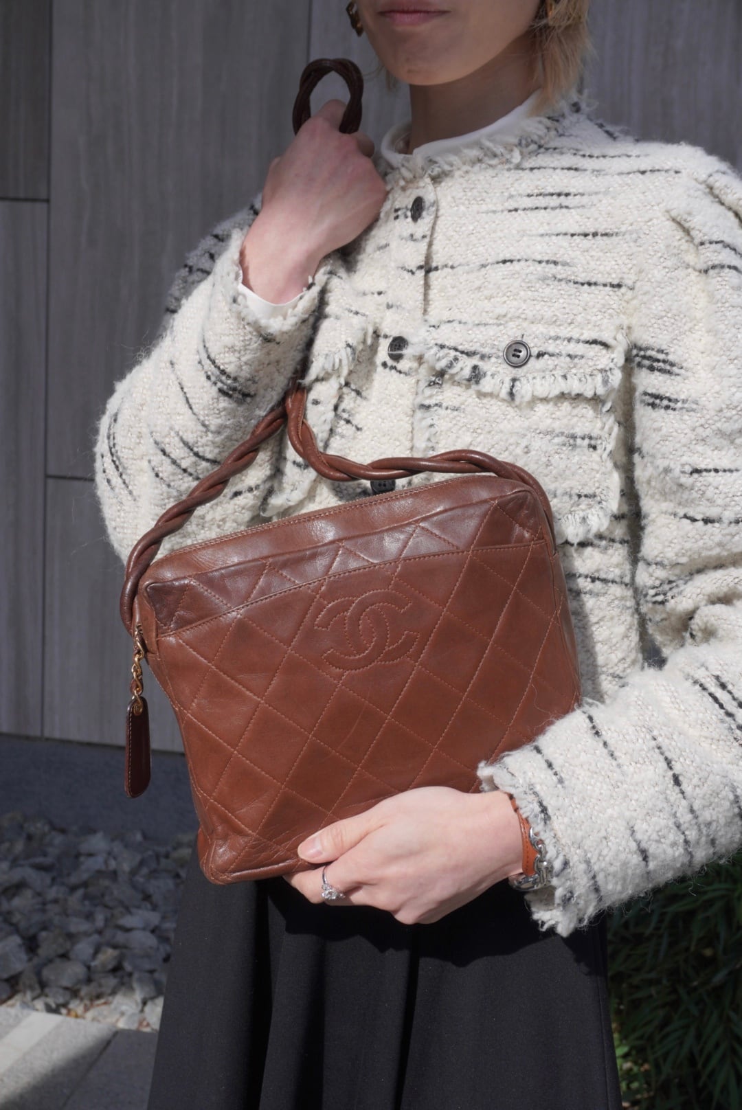 CHANEL シャネル ショルダーバッグ ブラウン ココマーク レザー マトラッセ ツイストショルダー vintage ヴィンテージ オールド 4u7hig