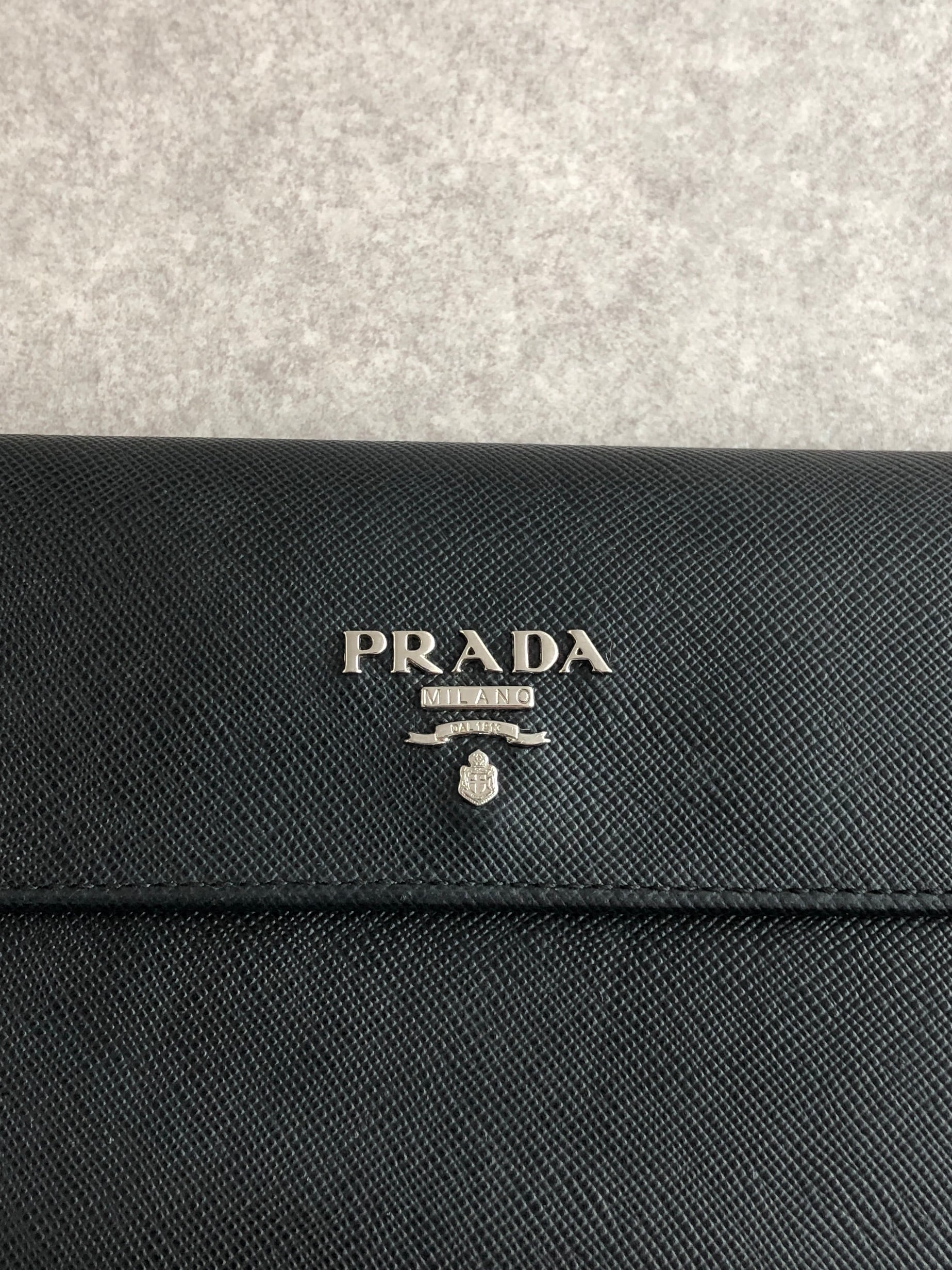PRADA プラダ 財布 ブラック ロゴ サフィアーノレザー 2つ折り vintage ヴィンテージ オールド gfnuwt