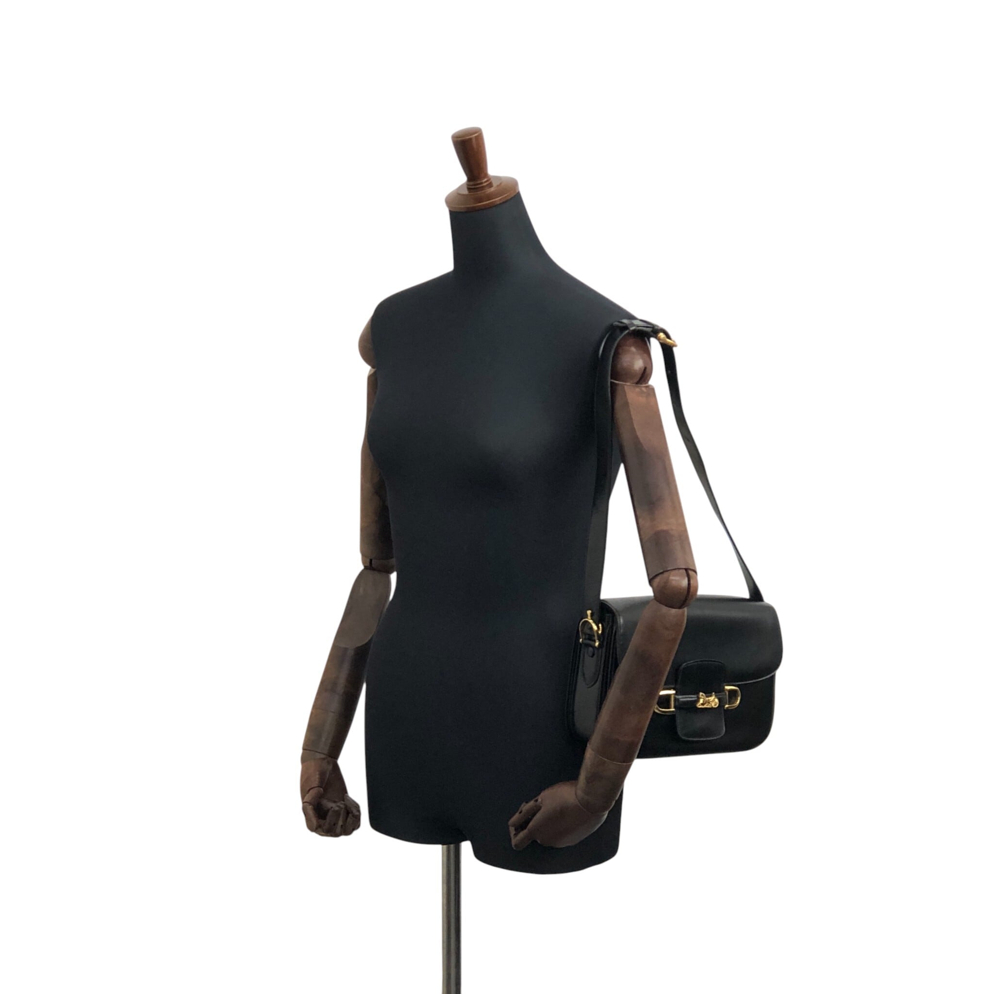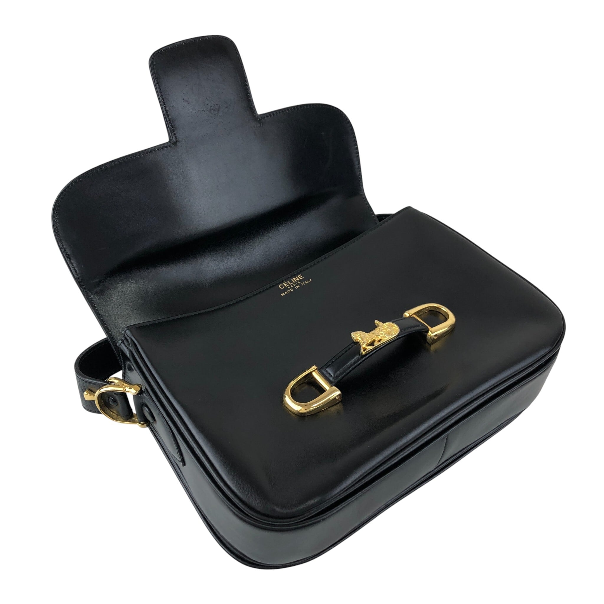 CELINE セリーヌ ショルダーバッグ ブラック 馬車 レザー セミショルダー vintage ヴィンテージ オールド gec7v4