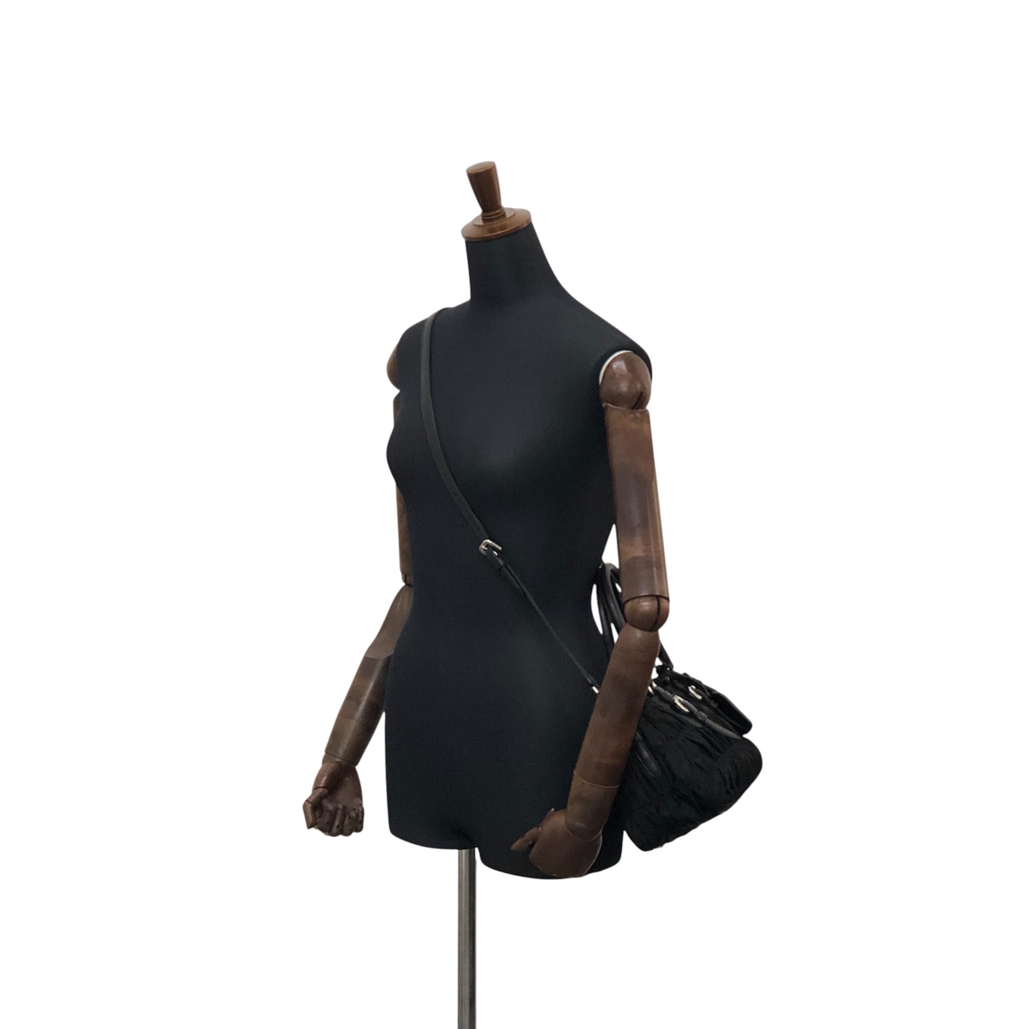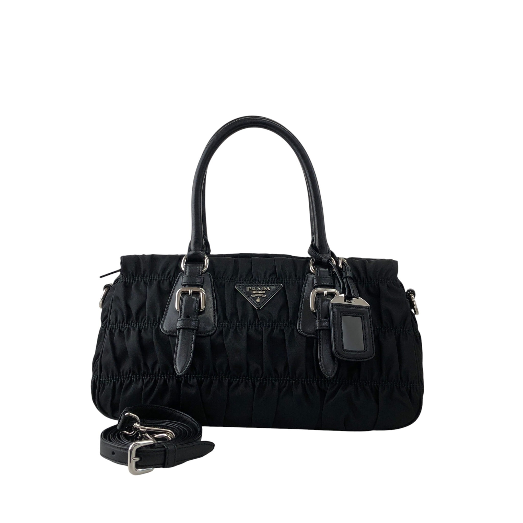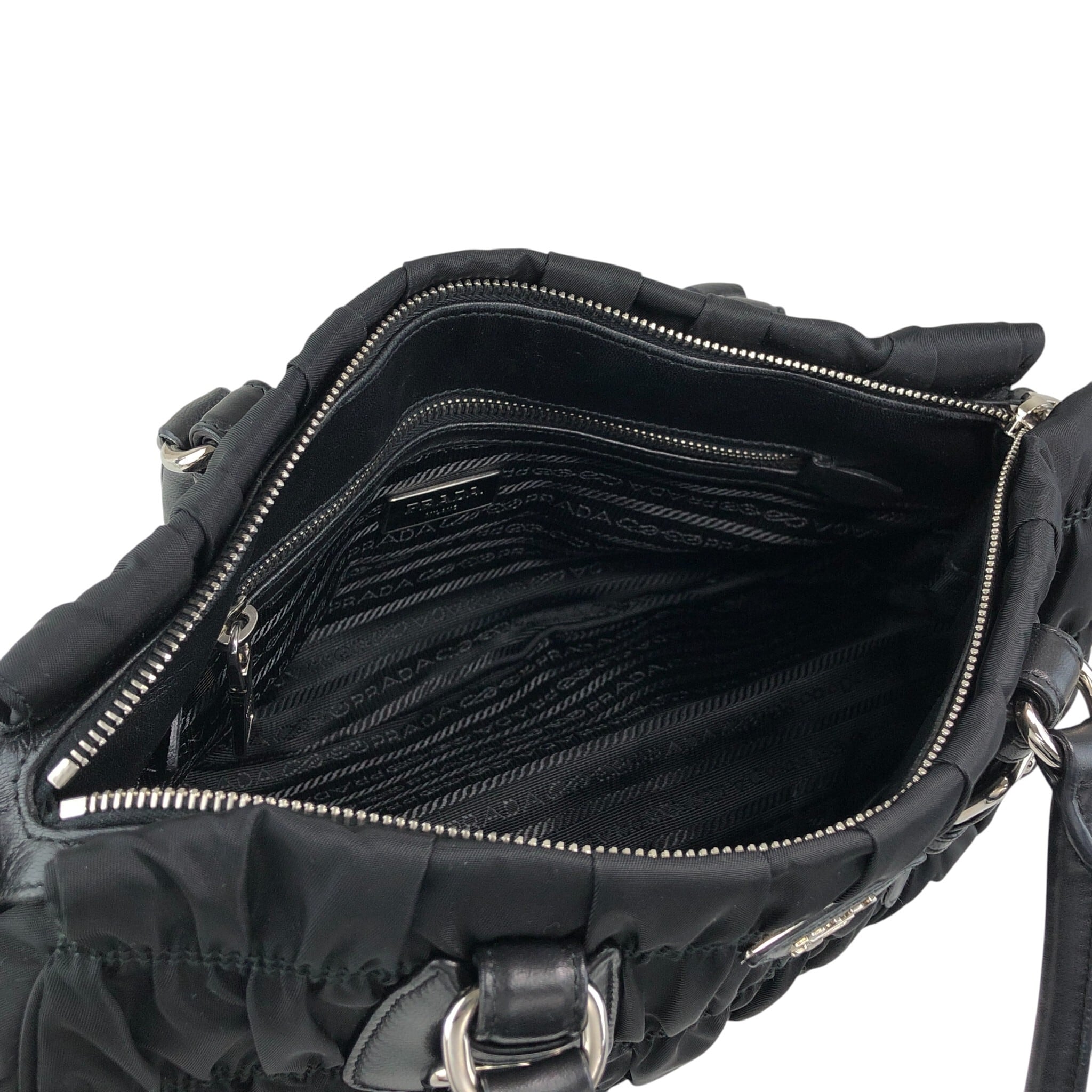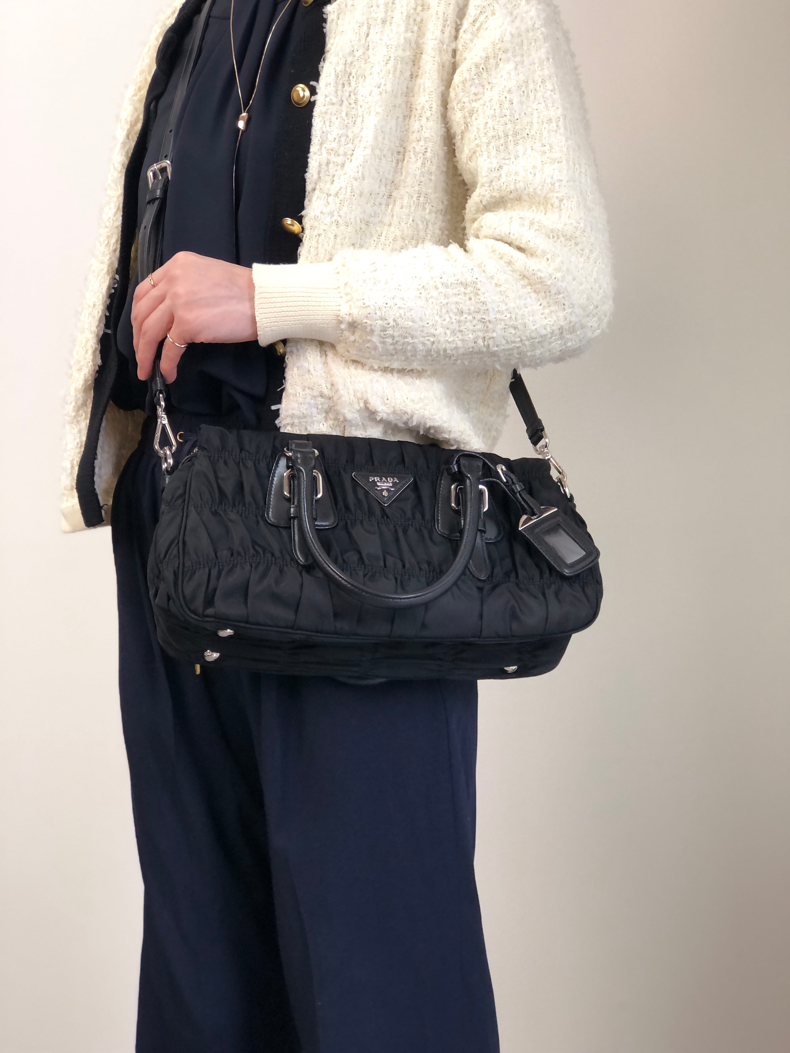 PRADA プラダ ショルダーバッグ ブラック トライアングルロゴ ナイロン ギャザー 2WAY vintage ヴィンテージ オールド kcds2w