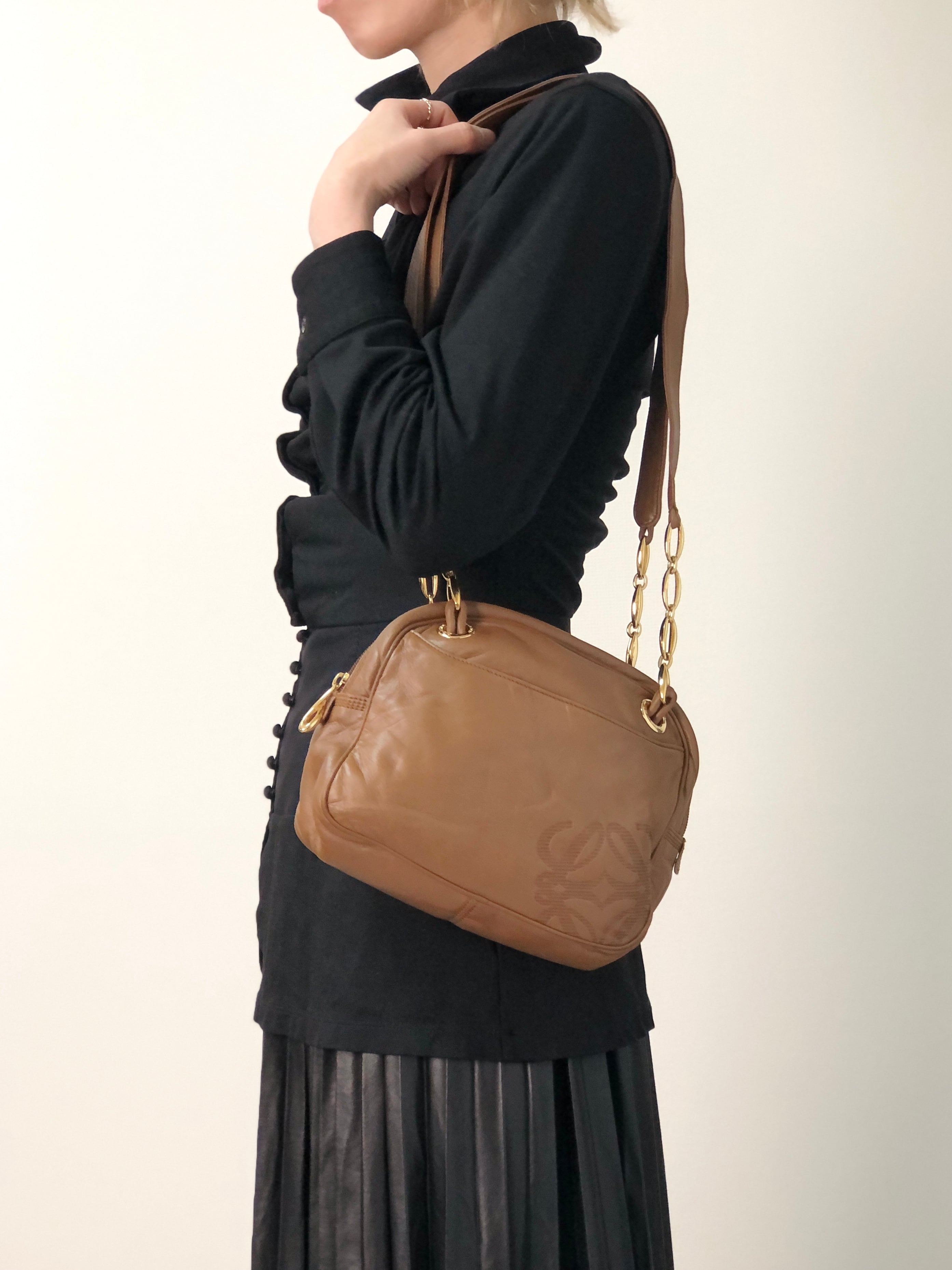 LOEWE ロエベ ショルダーバッグ ブラウン アナグラム ナッパレザー vintage ヴィンテージ オールド 4a627g