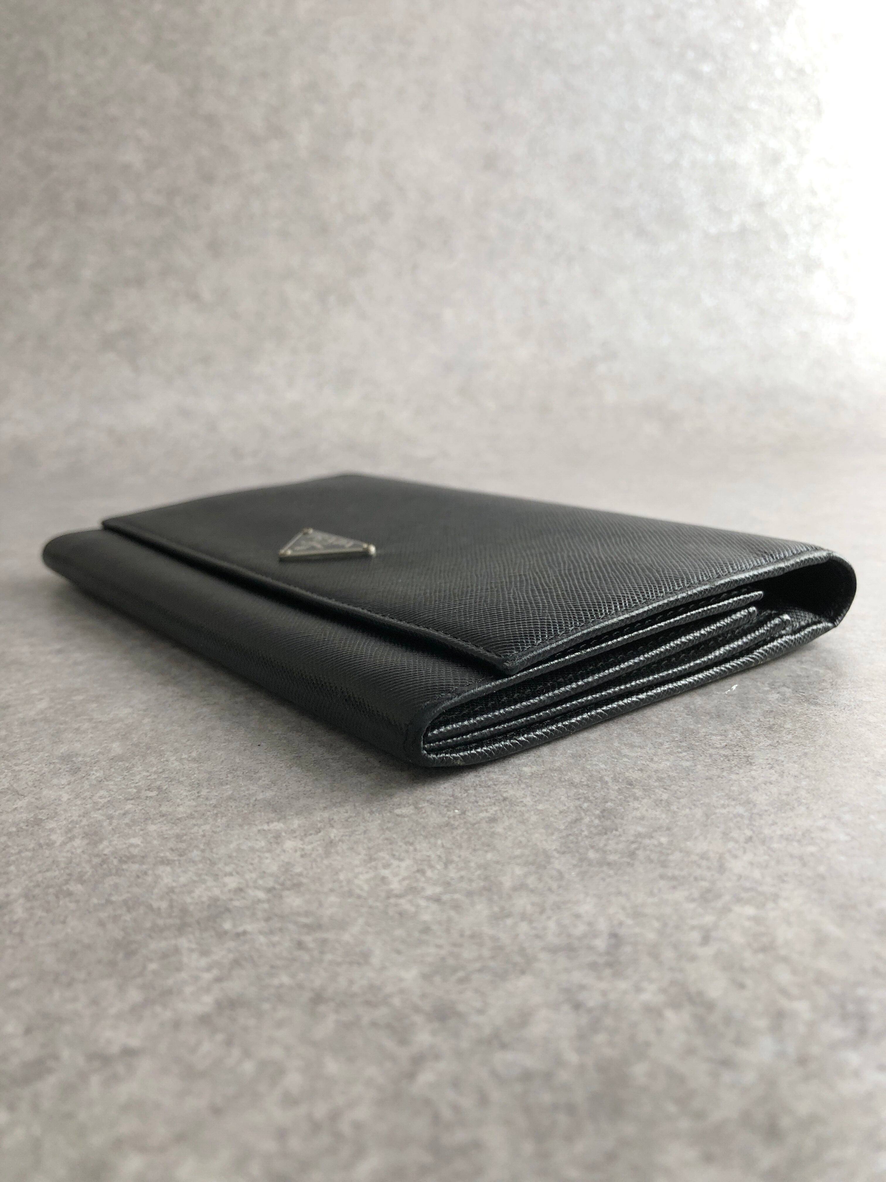 PRADA プラダ 財布 ブラック トライアングルロゴ サフィアーノレザー 2つ折り 長財布 vintage ヴィンテージ オールド dwgxzb