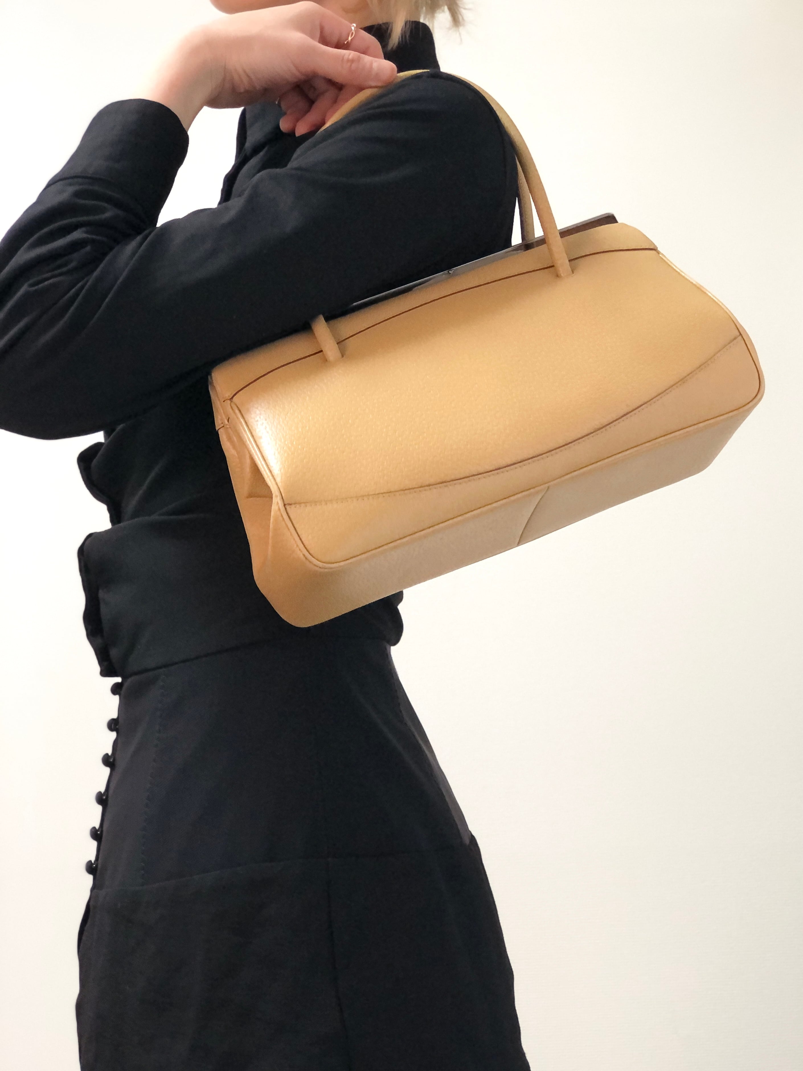 GUCCI グッチ ショルダーバッグ ベージュ レザー がま口 ワンショルダー vintage ヴィンテージ オールド y4d8ai
