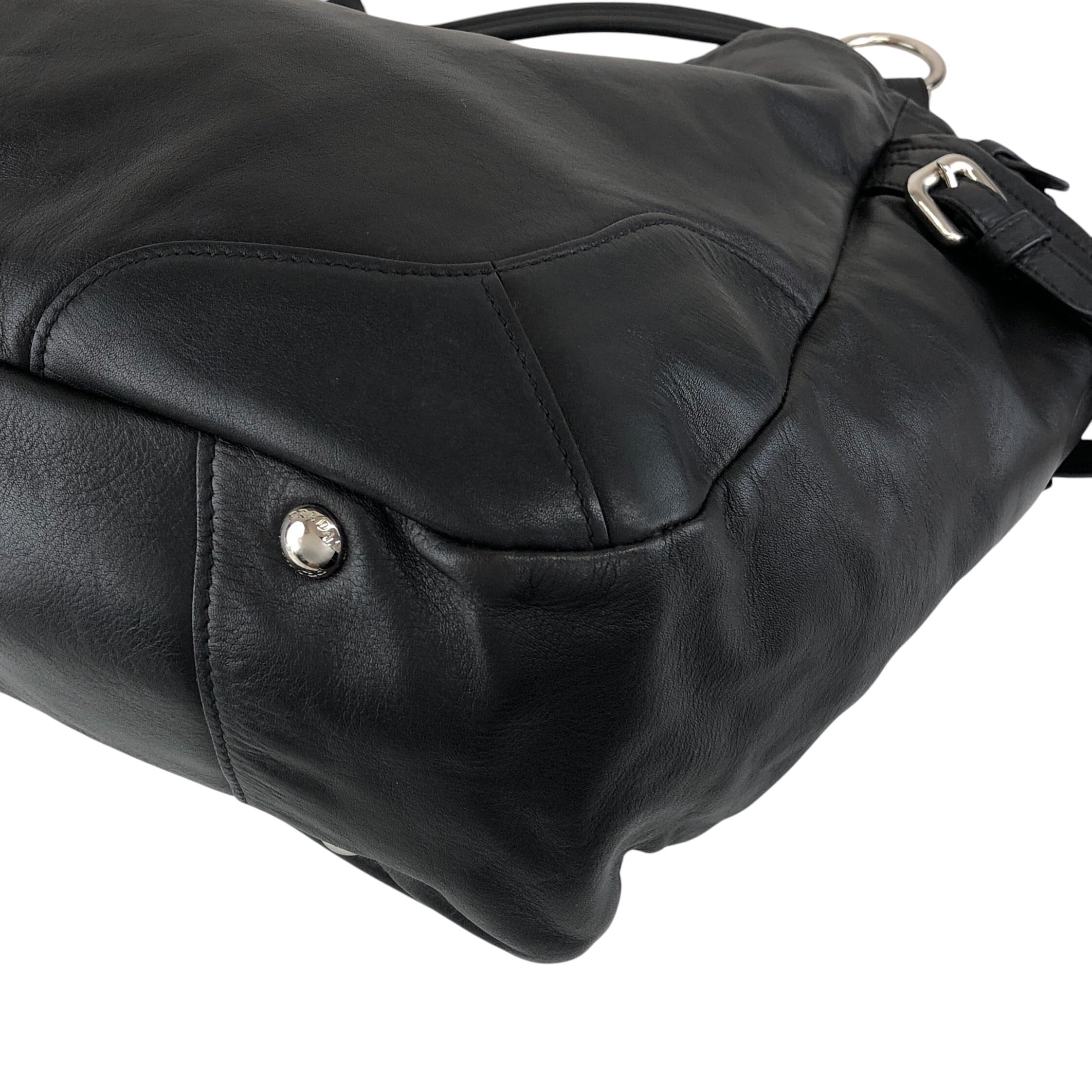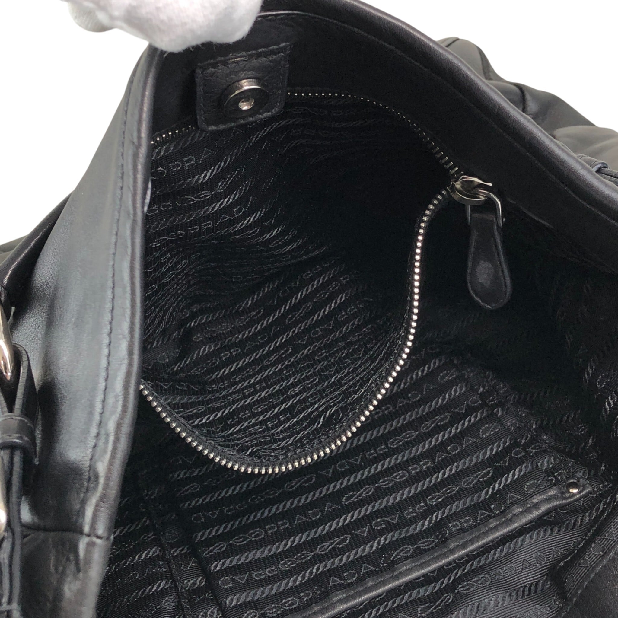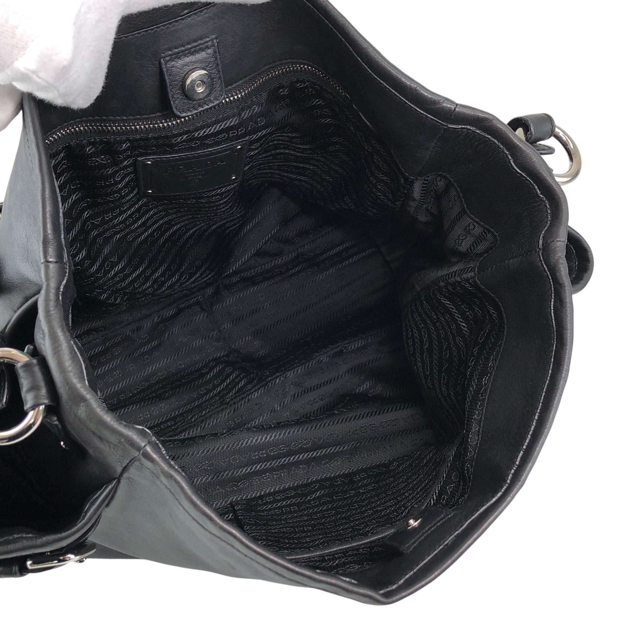 PRADA プラダ ハンドバッグ ブラック ロゴ レザー サイドポケット vintage ヴィンテージ オールド ab8g6p