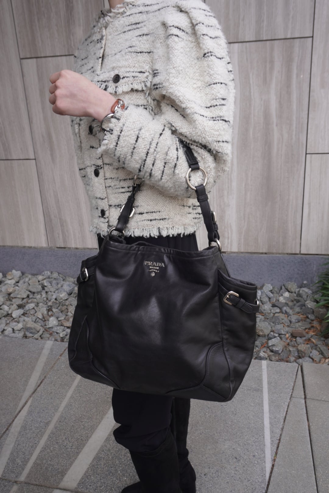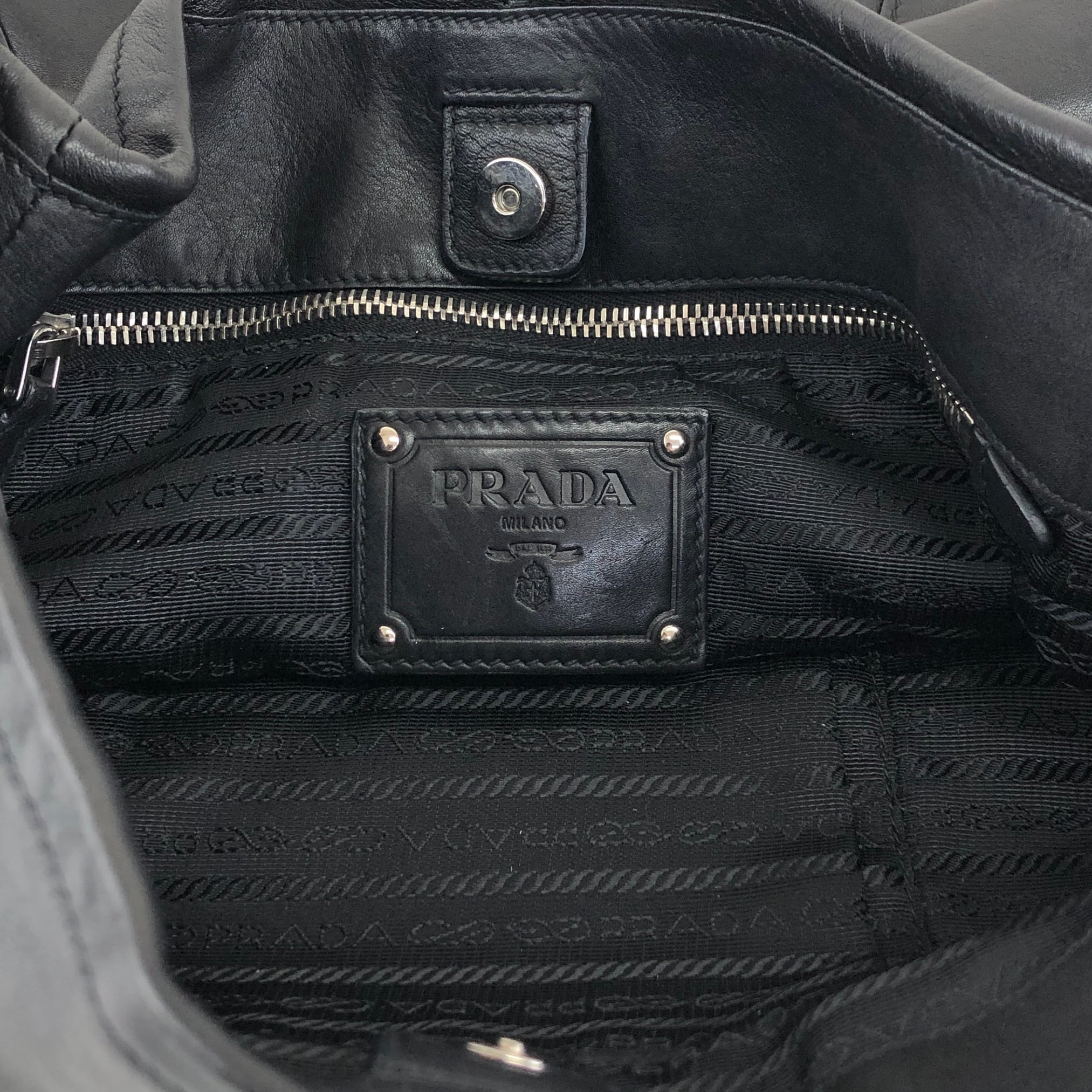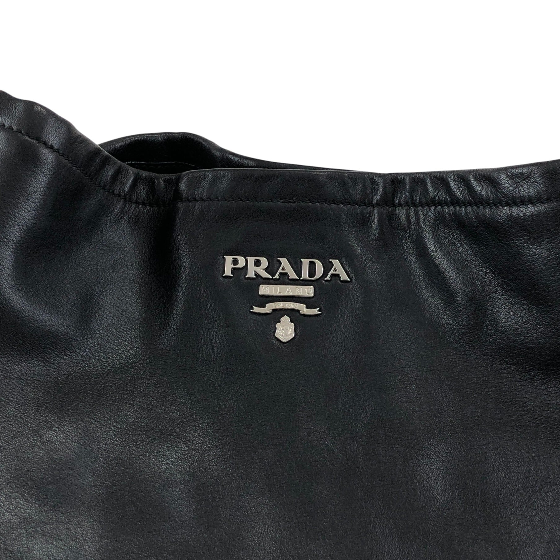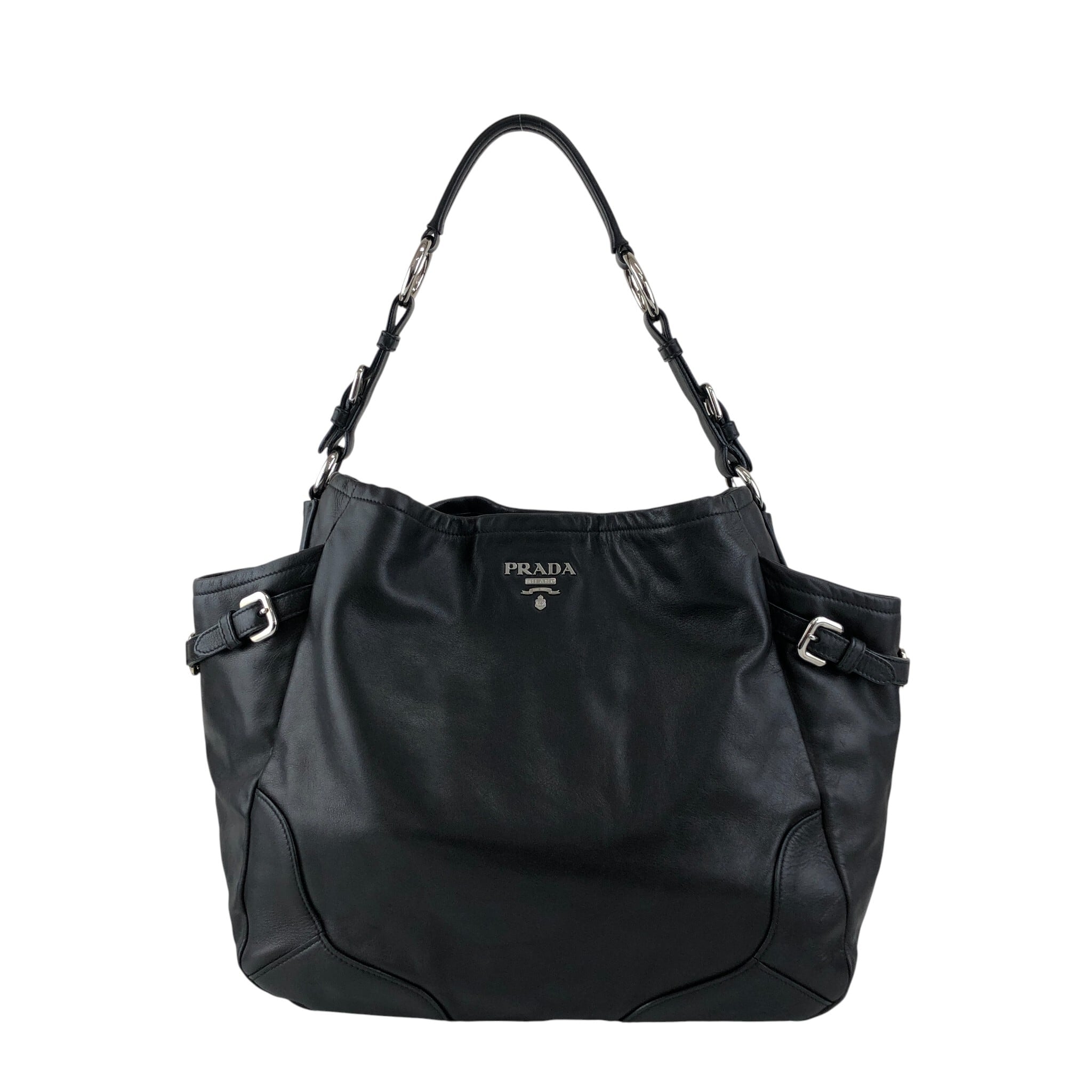 PRADA プラダ ハンドバッグ ブラック ロゴ レザー サイドポケット vintage ヴィンテージ オールド ab8g6p
