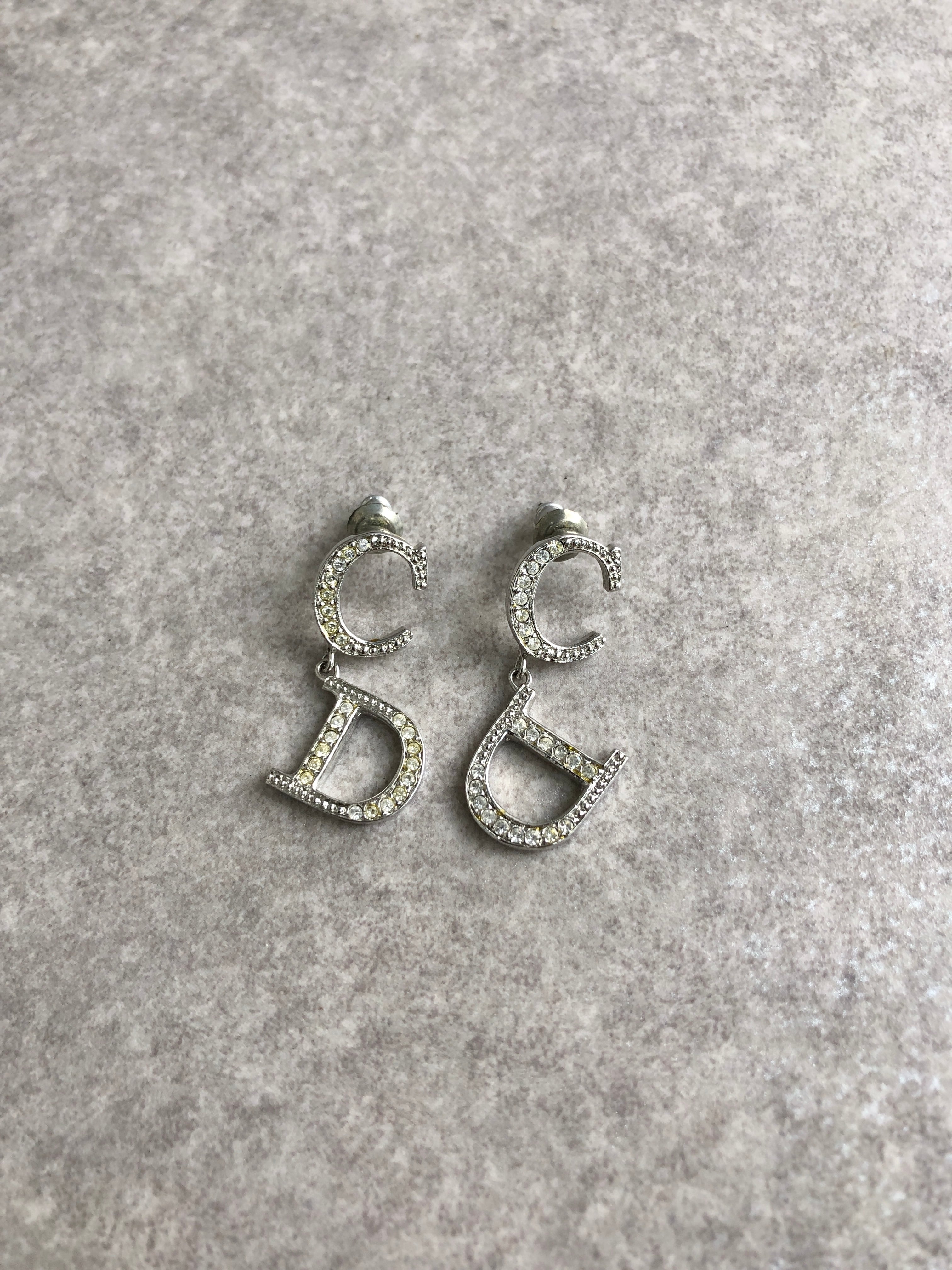 Christian Dior クリスチャン ディオール ピアス シルバー CDロゴ ラインストーン vintage ヴィンテージ オールド biaucg