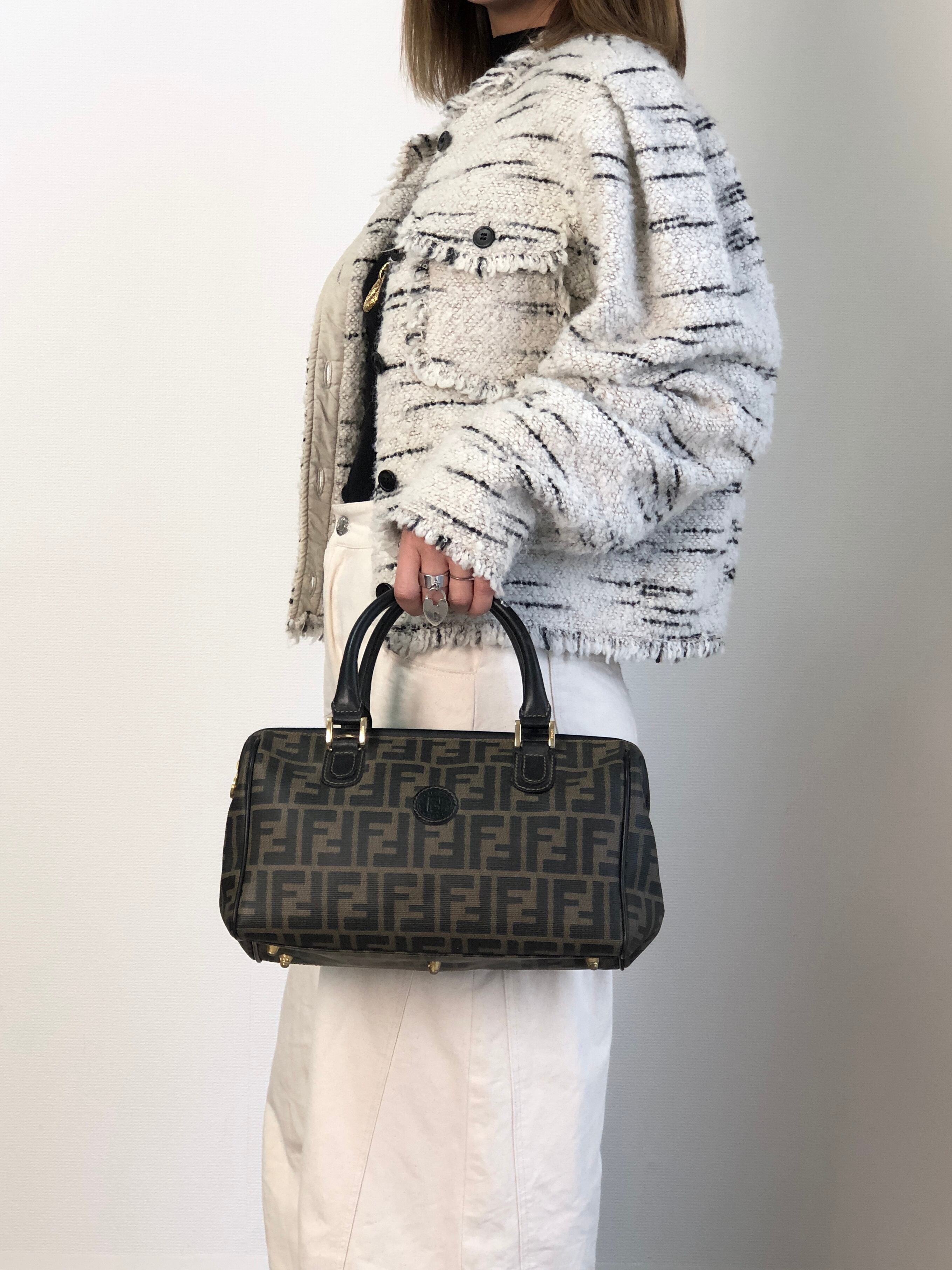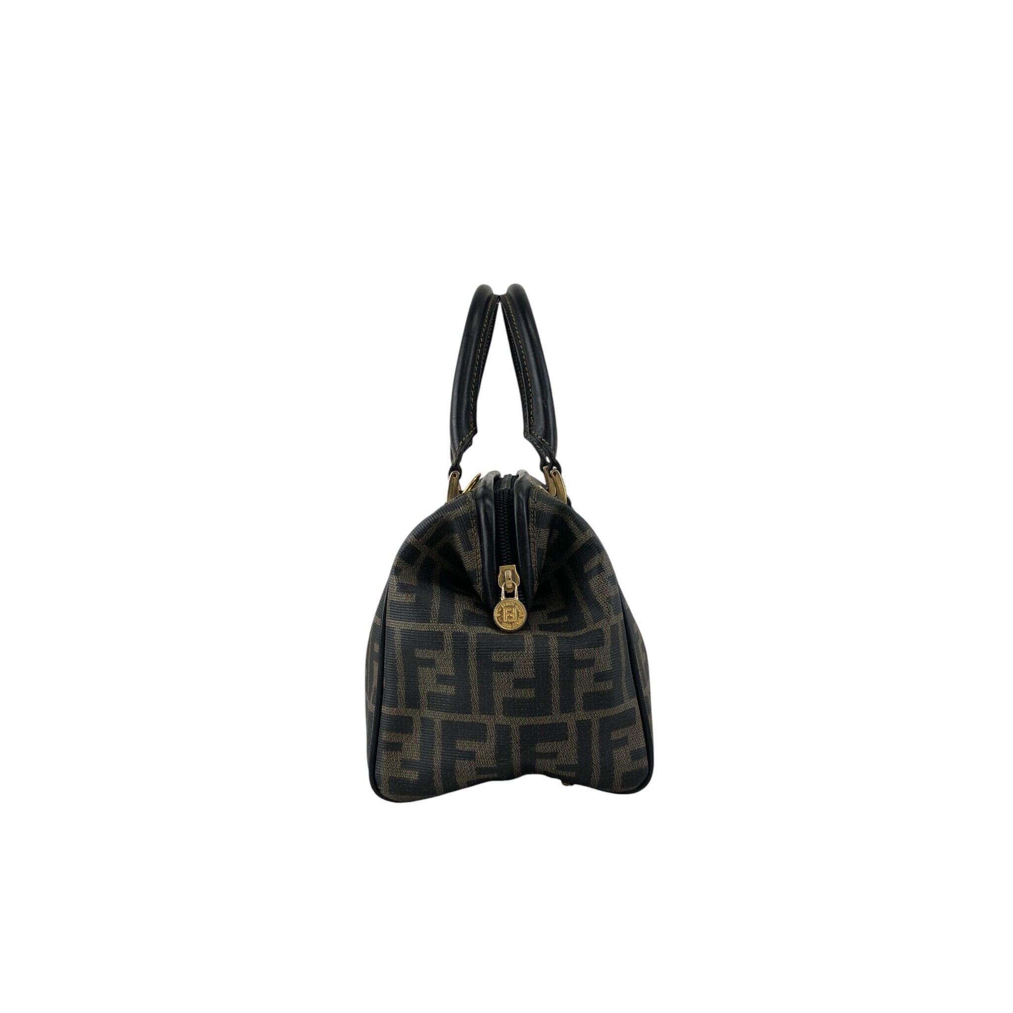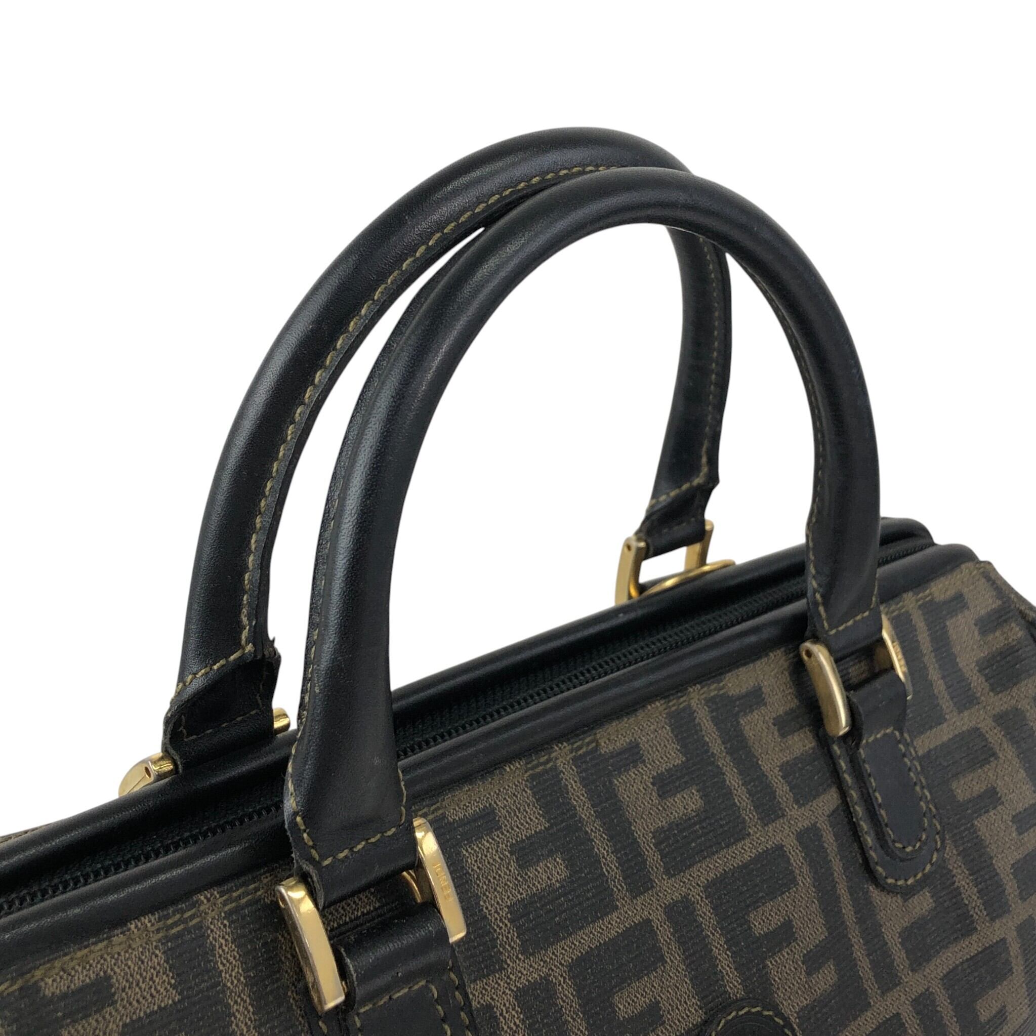 FENDI フェンディ ズッカ ハンドバッグ ブラウン FFロゴ PVCレザー 2way ミニボストン vintage ヴィンテージ オールド ket3y5
