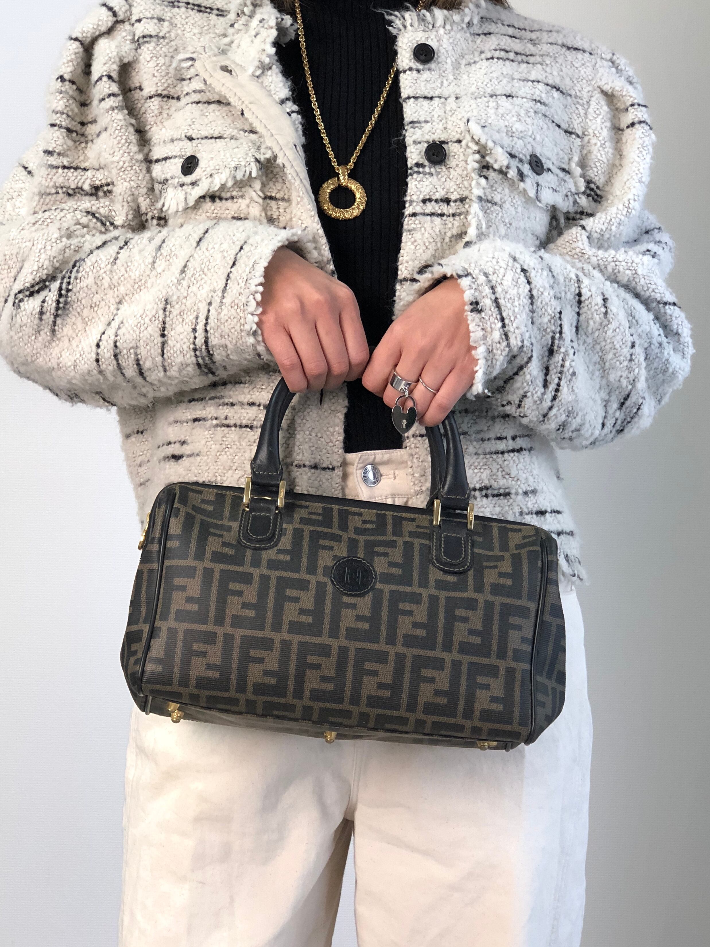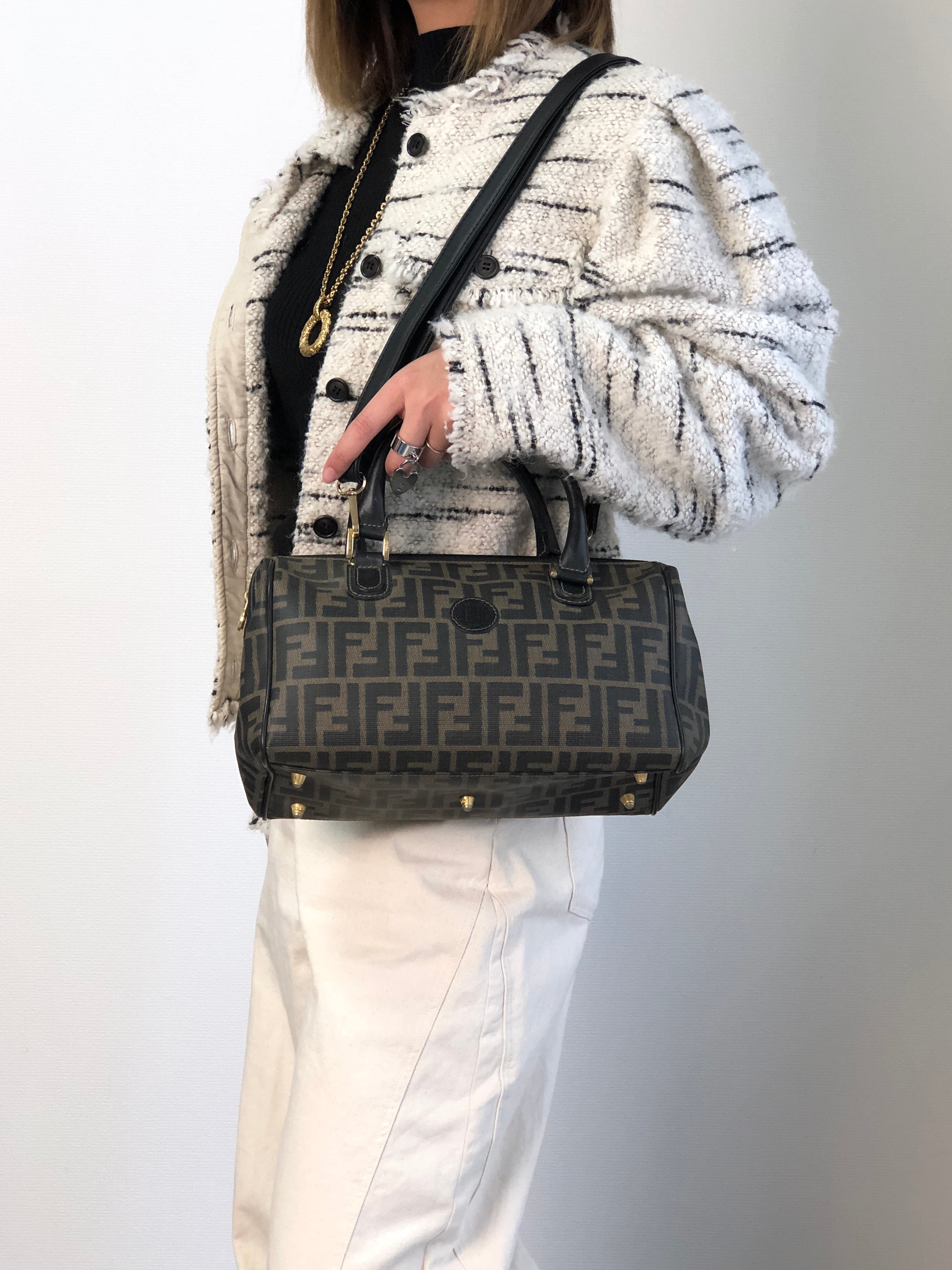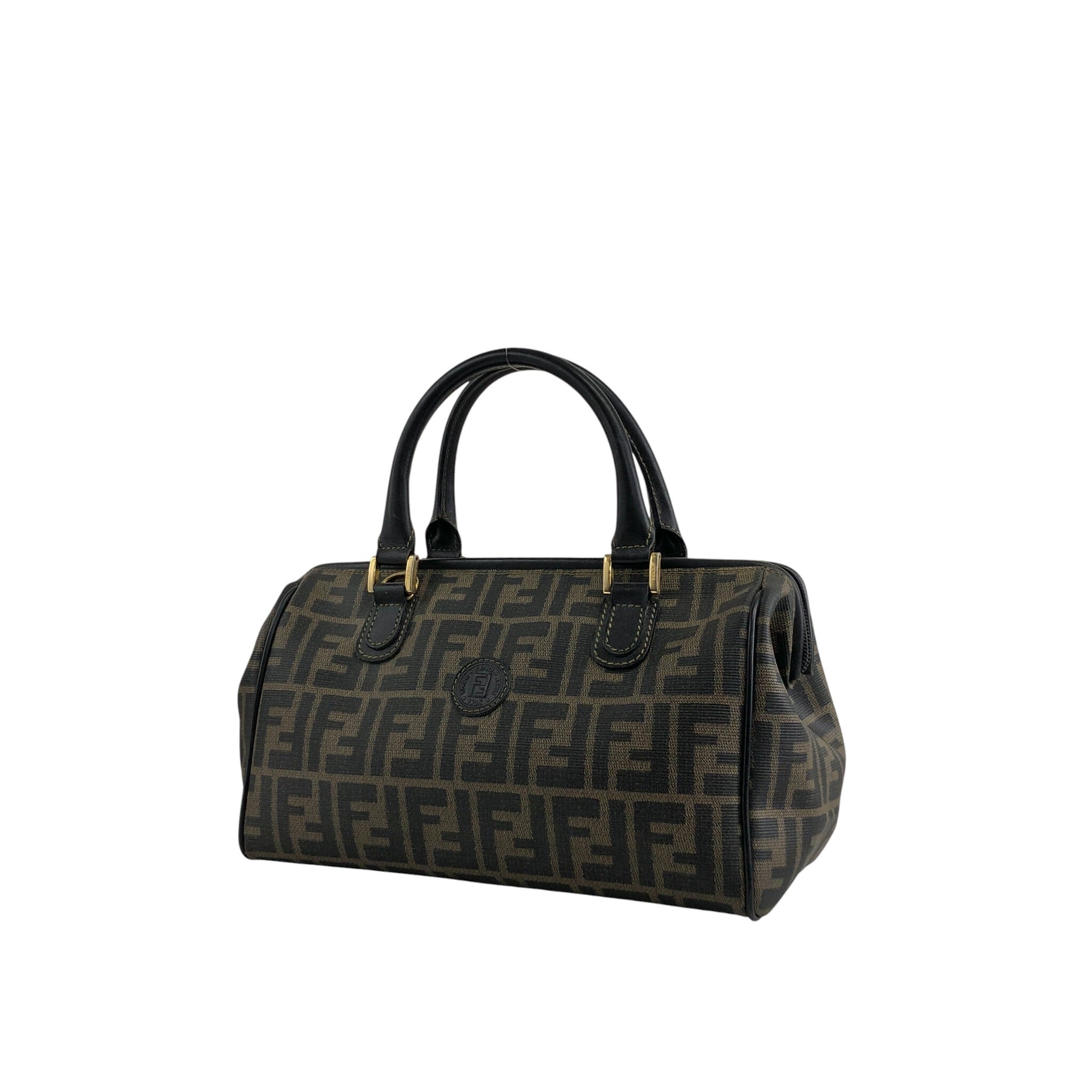 FENDI フェンディ ズッカ ハンドバッグ ブラウン FFロゴ PVCレザー 2way ミニボストン vintage ヴィンテージ オールド ket3y5