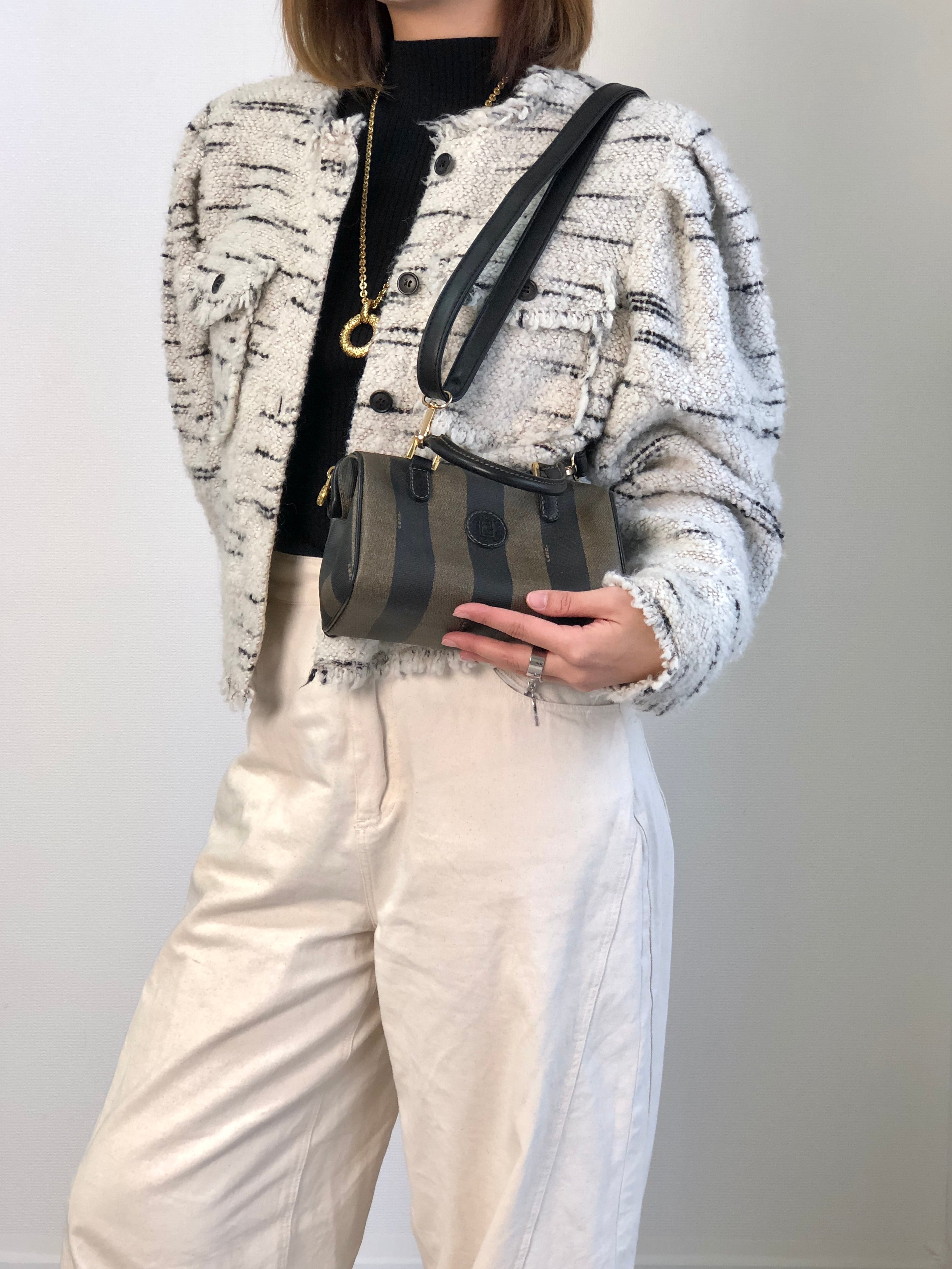 FENDI フェンディ ぺカン ショルダーバッグ ブラック FFロゴ PVCレザー 2WAY vintage ヴィンテージ オールド 6ymrwc