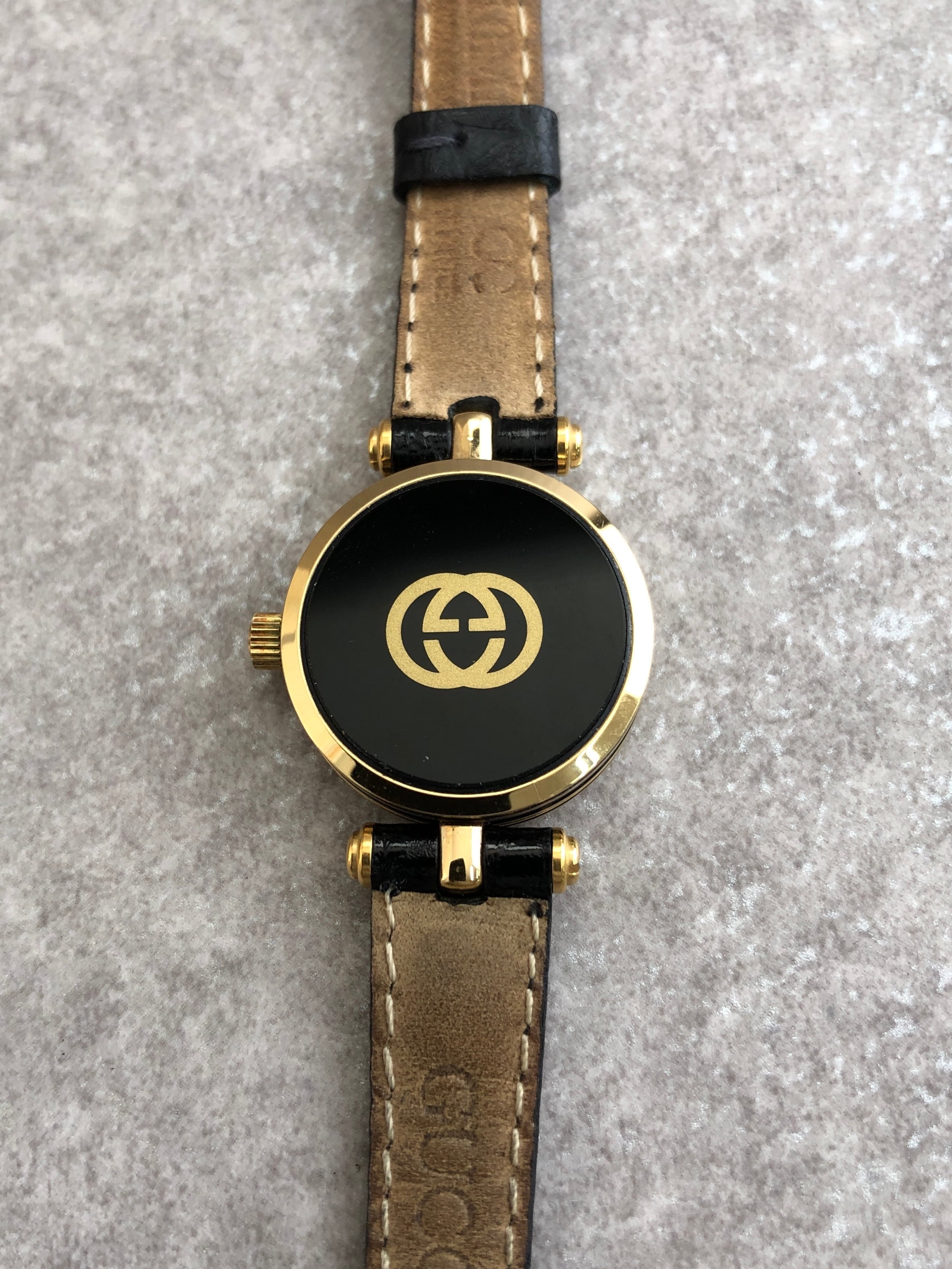 GUCCI グッチ 腕時計 ブラック ラウンドフェイス レザー クウォーツ vintage ヴィンテージ オールド tbwk7u