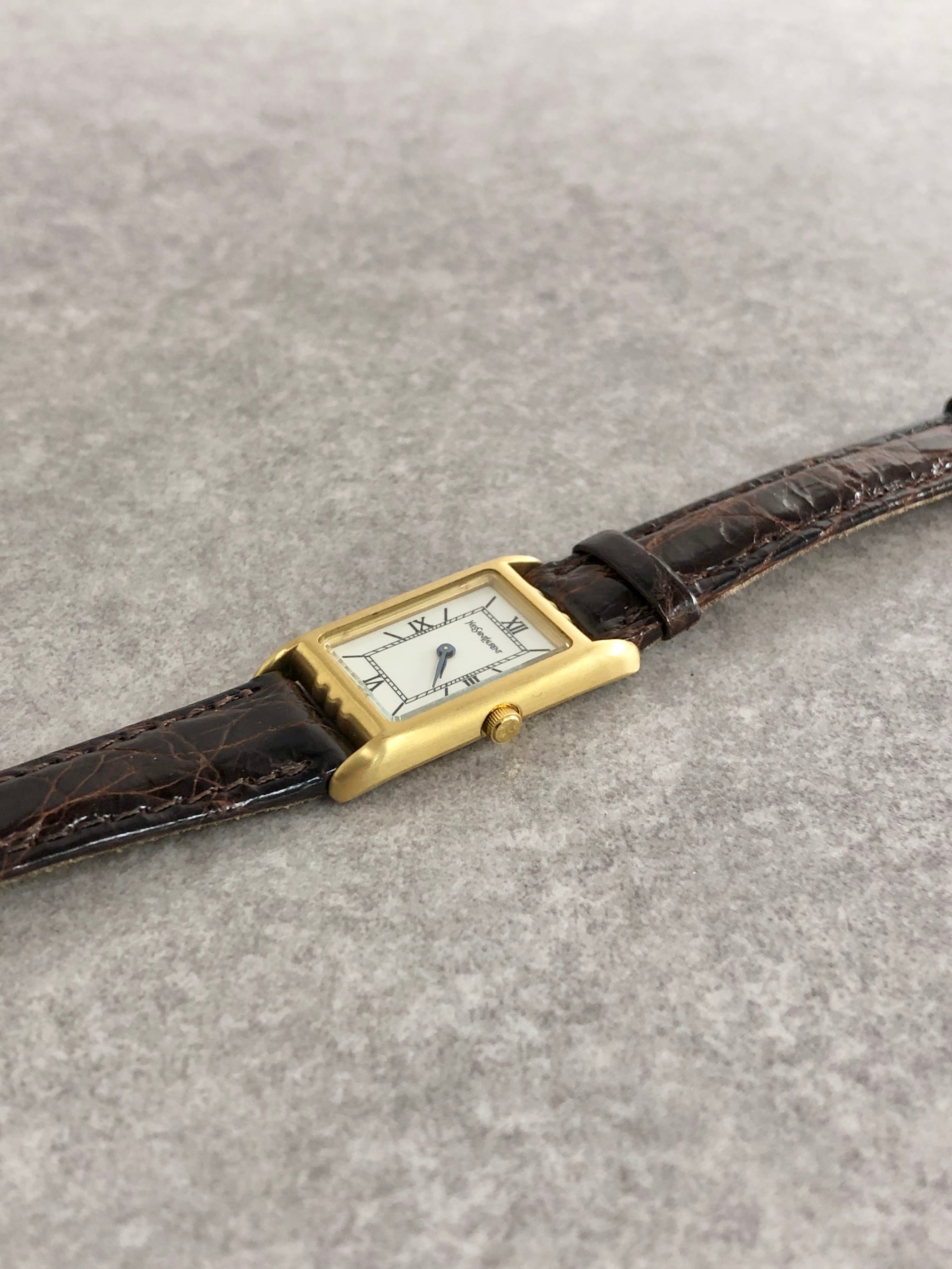 Yves Saint Laurent イヴ・サンローラン レクタンギュラー 腕時計 ゴールド×ブラウン スクエア レザー ローマ文字 vintage ヴィンテージ オールド 5420-F46860 TA w83mtz