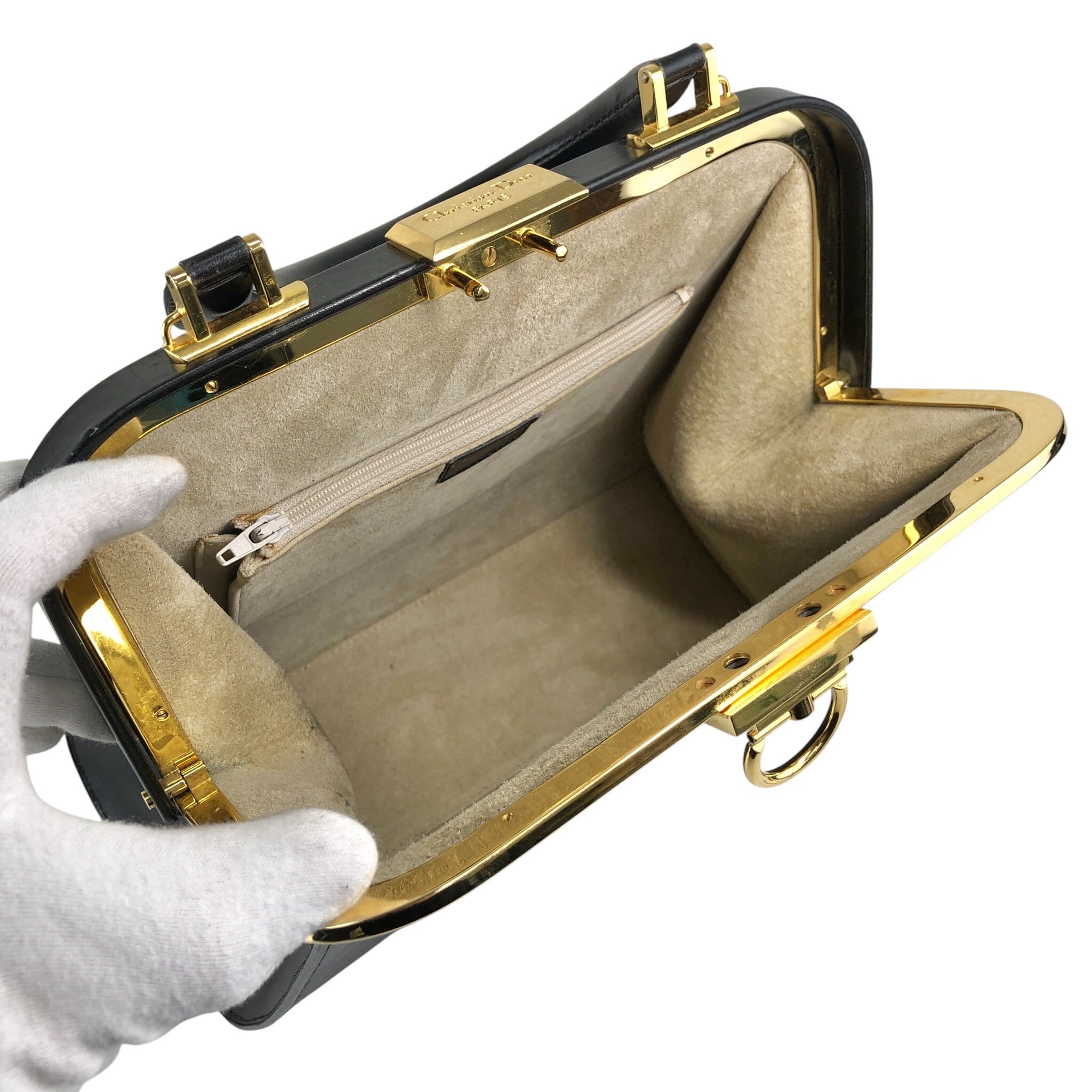 Christian Dior クリスチャン ディオール ハンドバッグ ブラック レザー がま口 vintage ヴィンテージ オールド istwjt