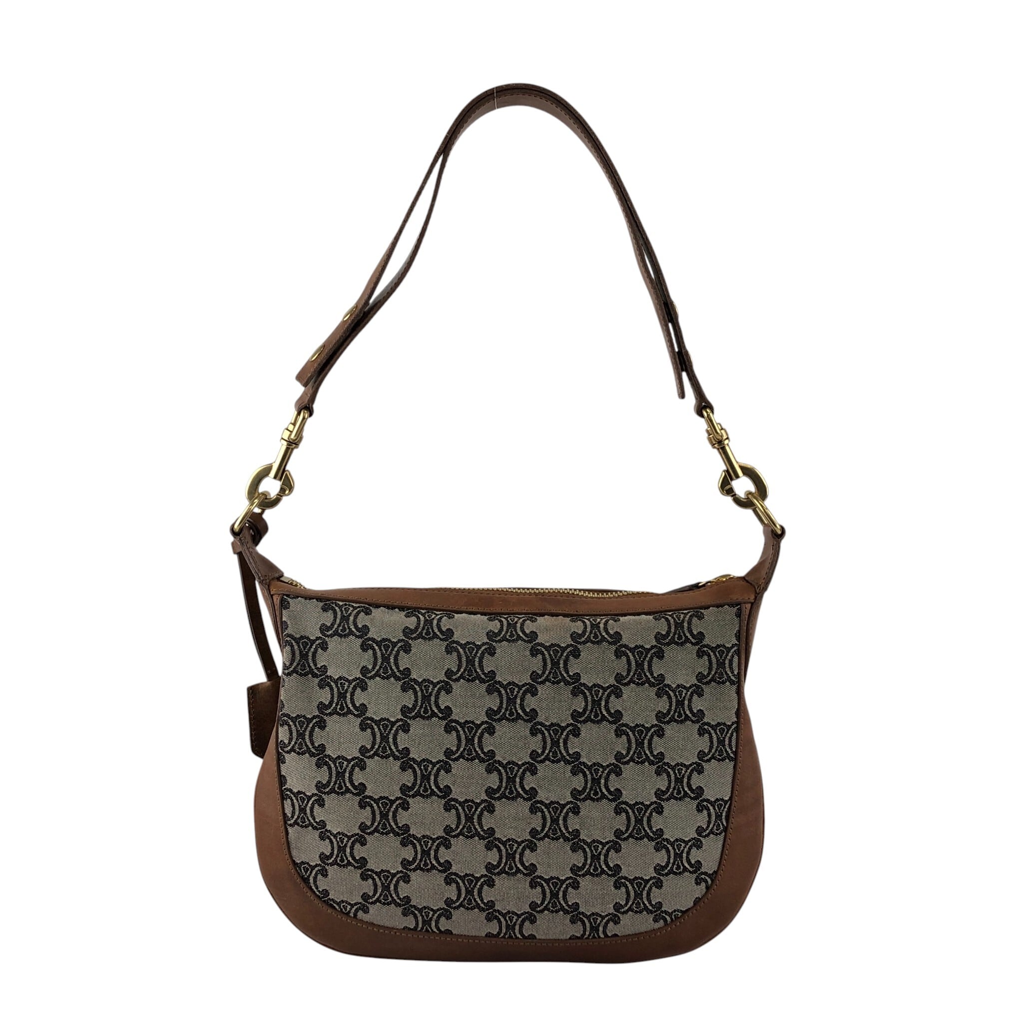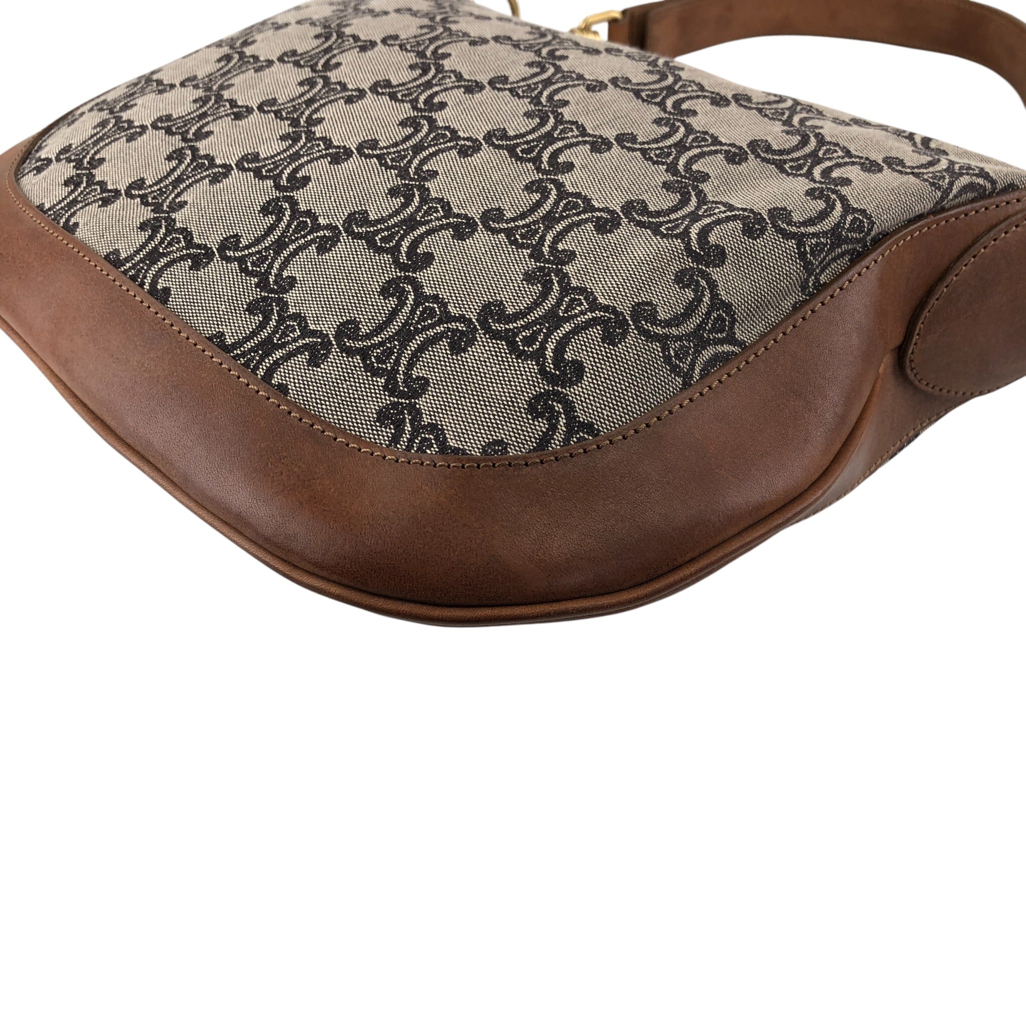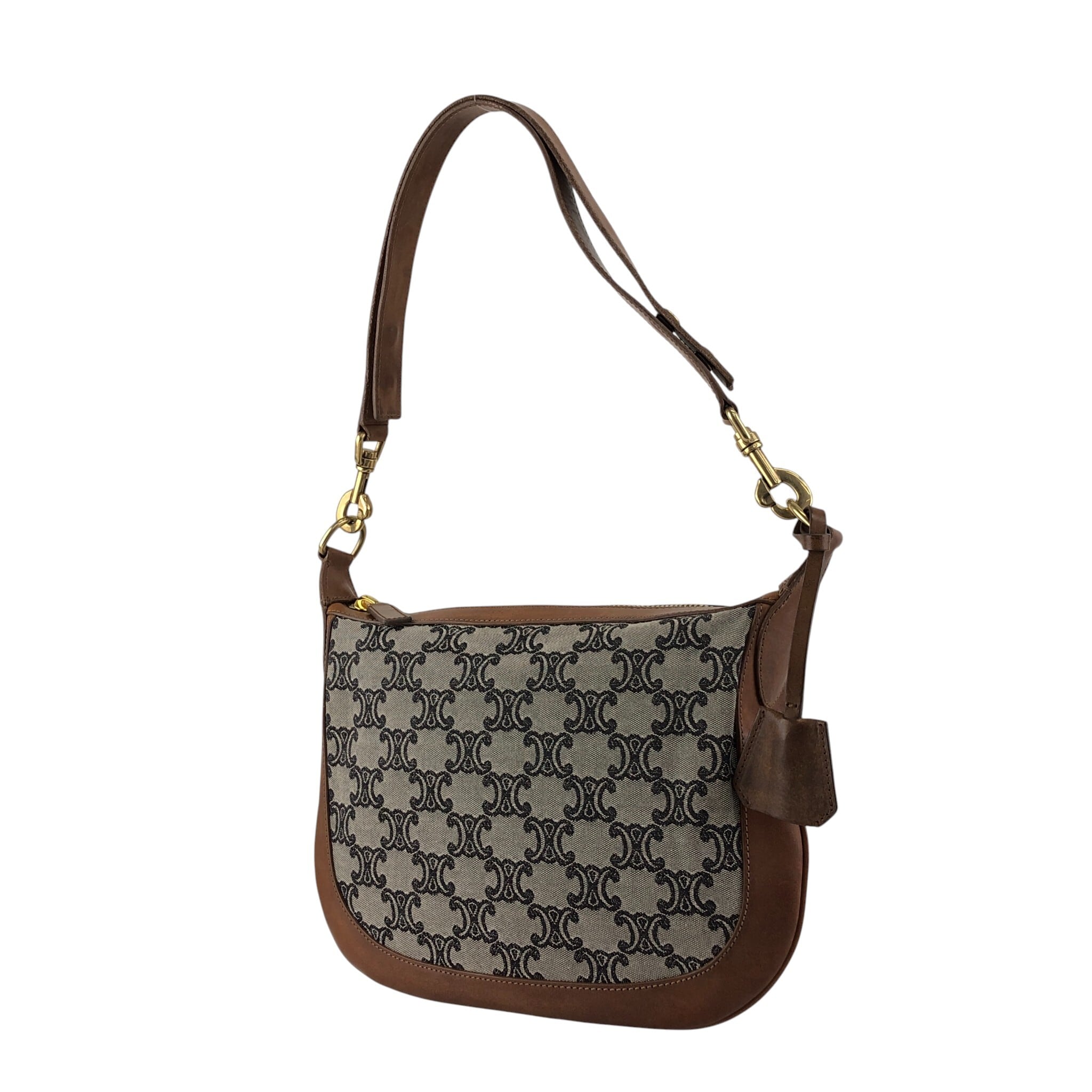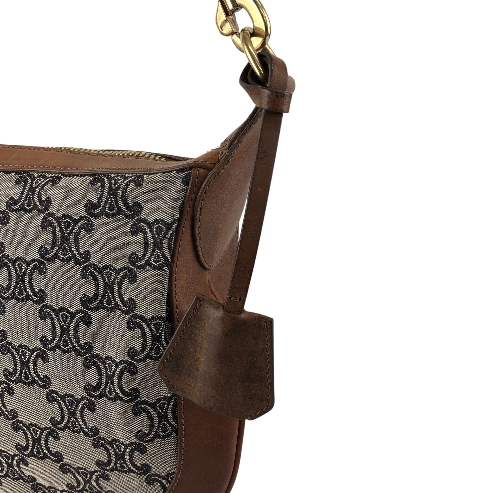 CELINE セリーヌ マカダム ショルダーバッグ ブラウン レザー×キャンバス セミショルダー vintage ヴィンテージ オールド sun8w8