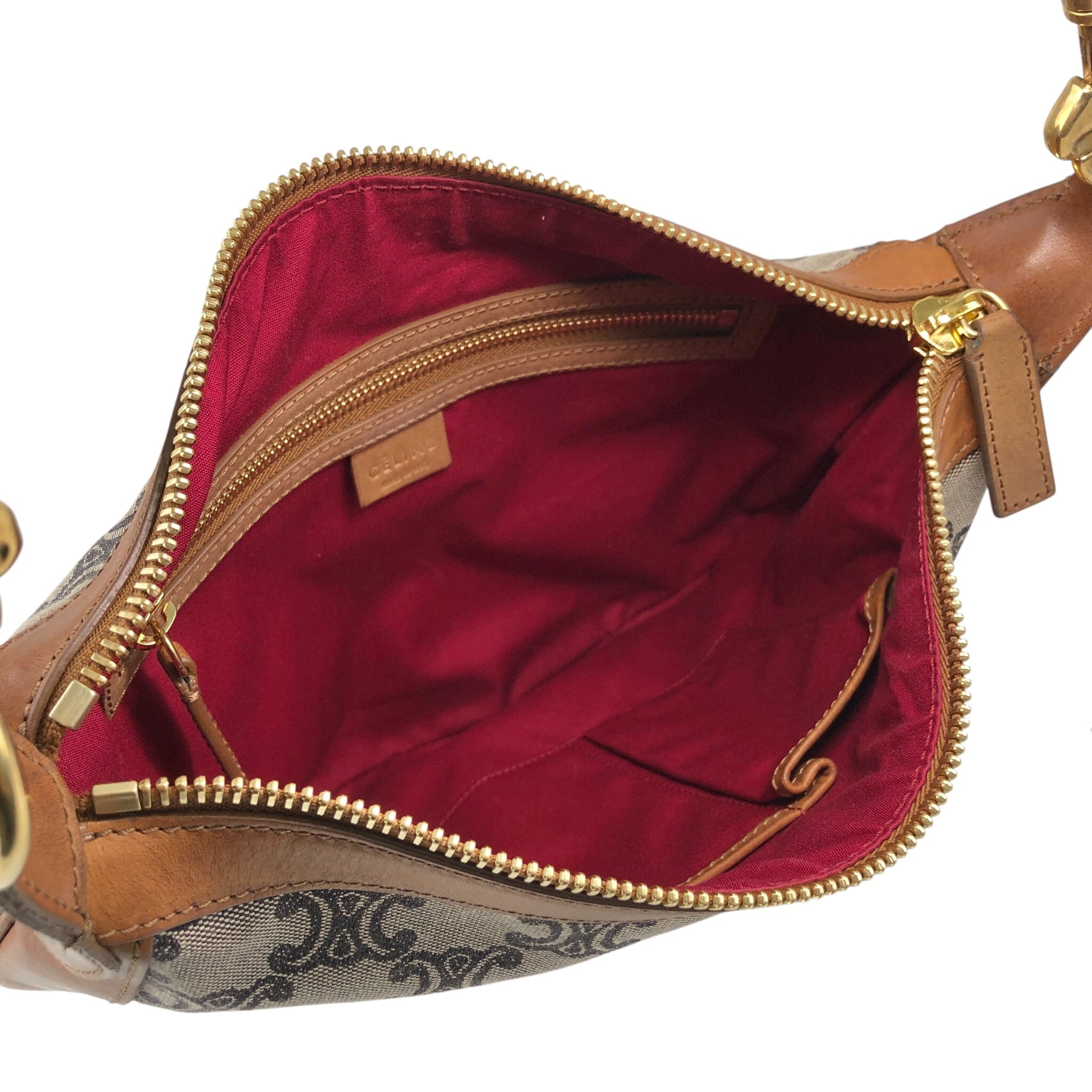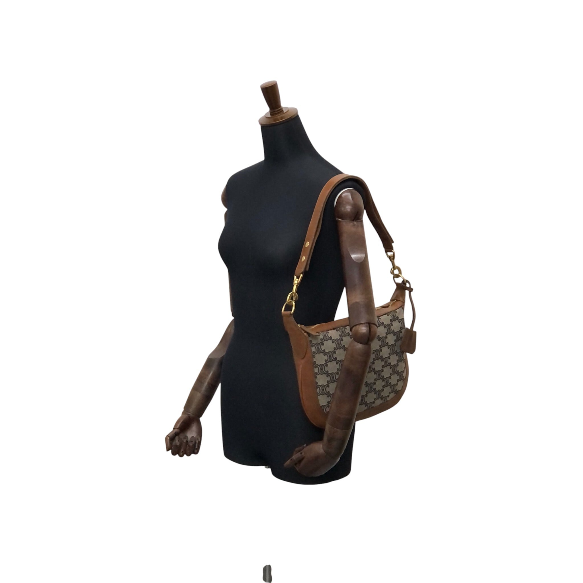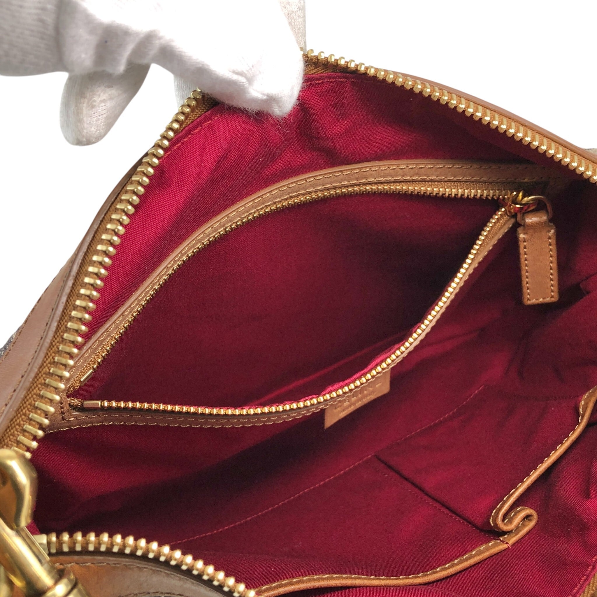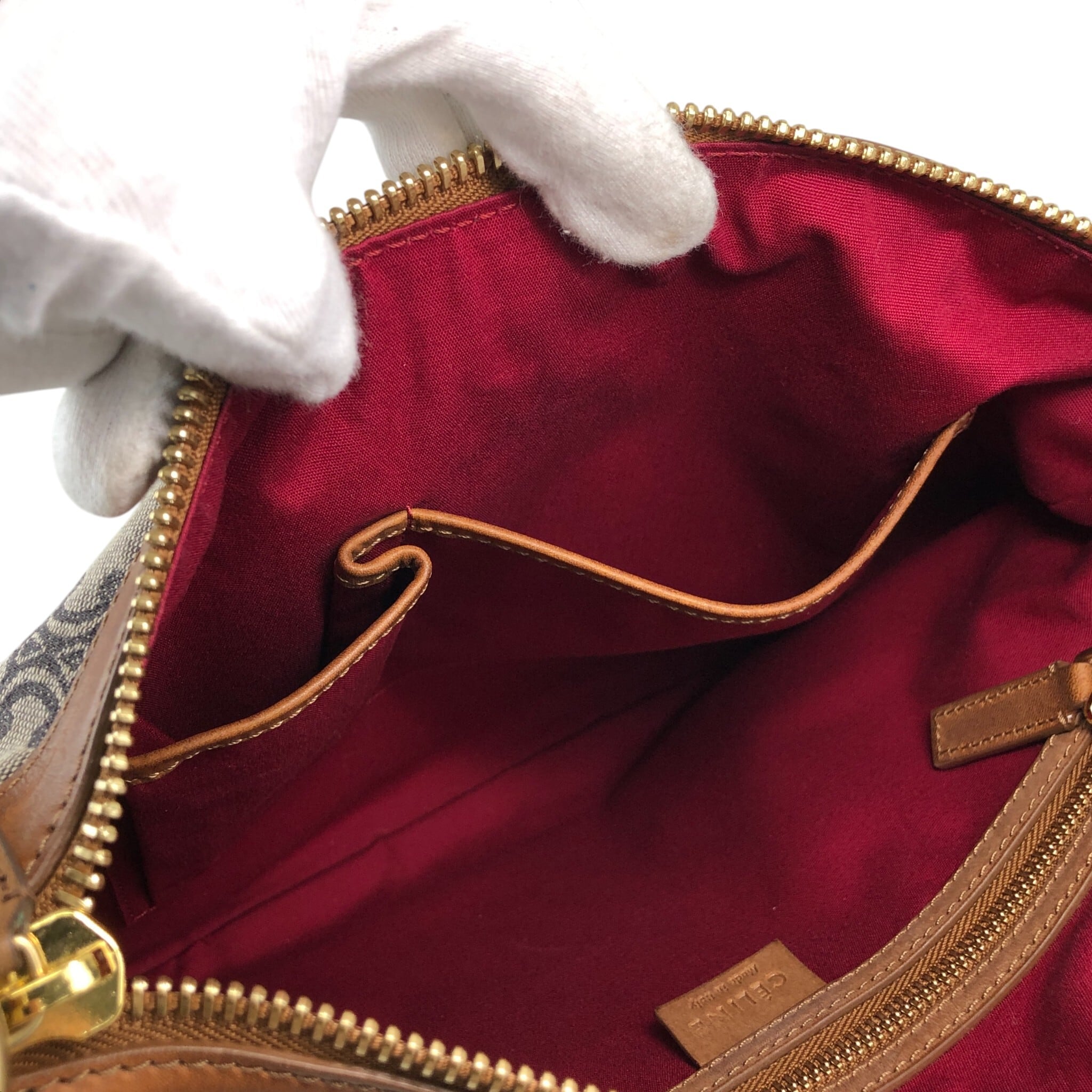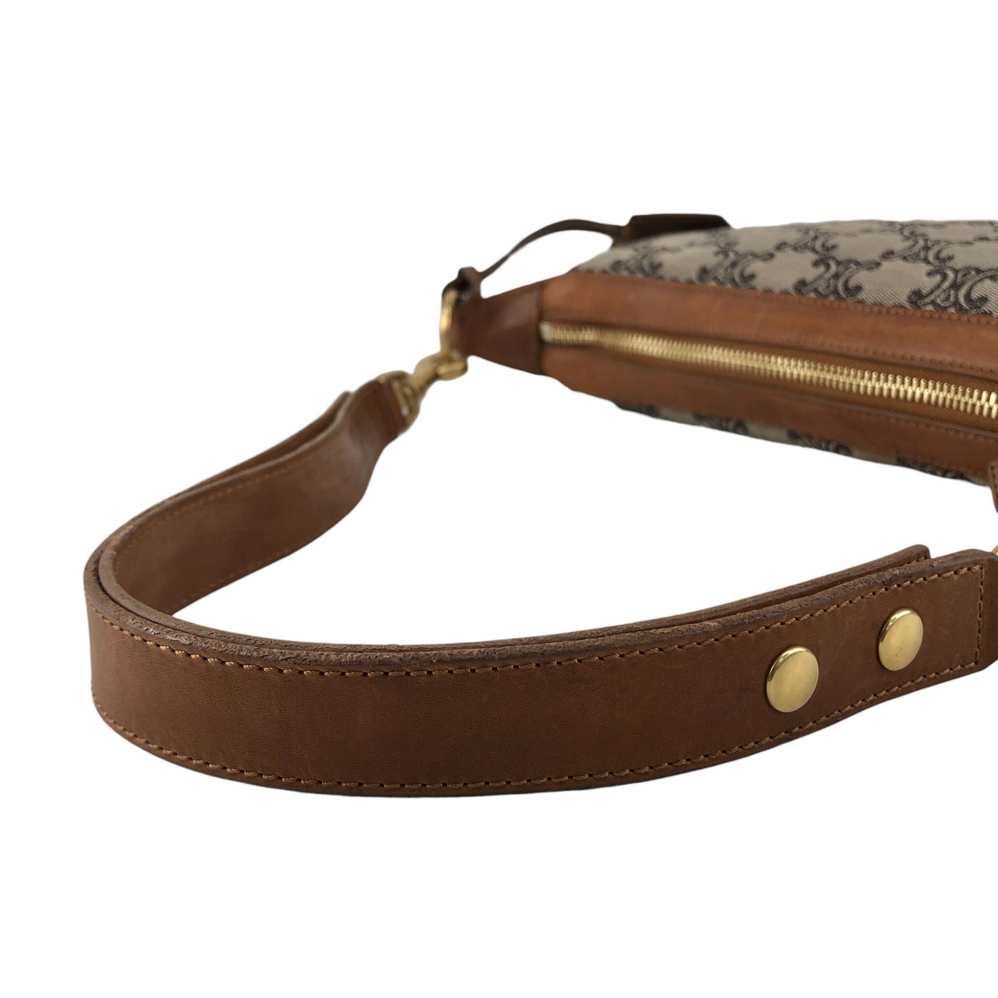 CELINE セリーヌ マカダム ショルダーバッグ ブラウン レザー×キャンバス セミショルダー vintage ヴィンテージ オールド sun8w8