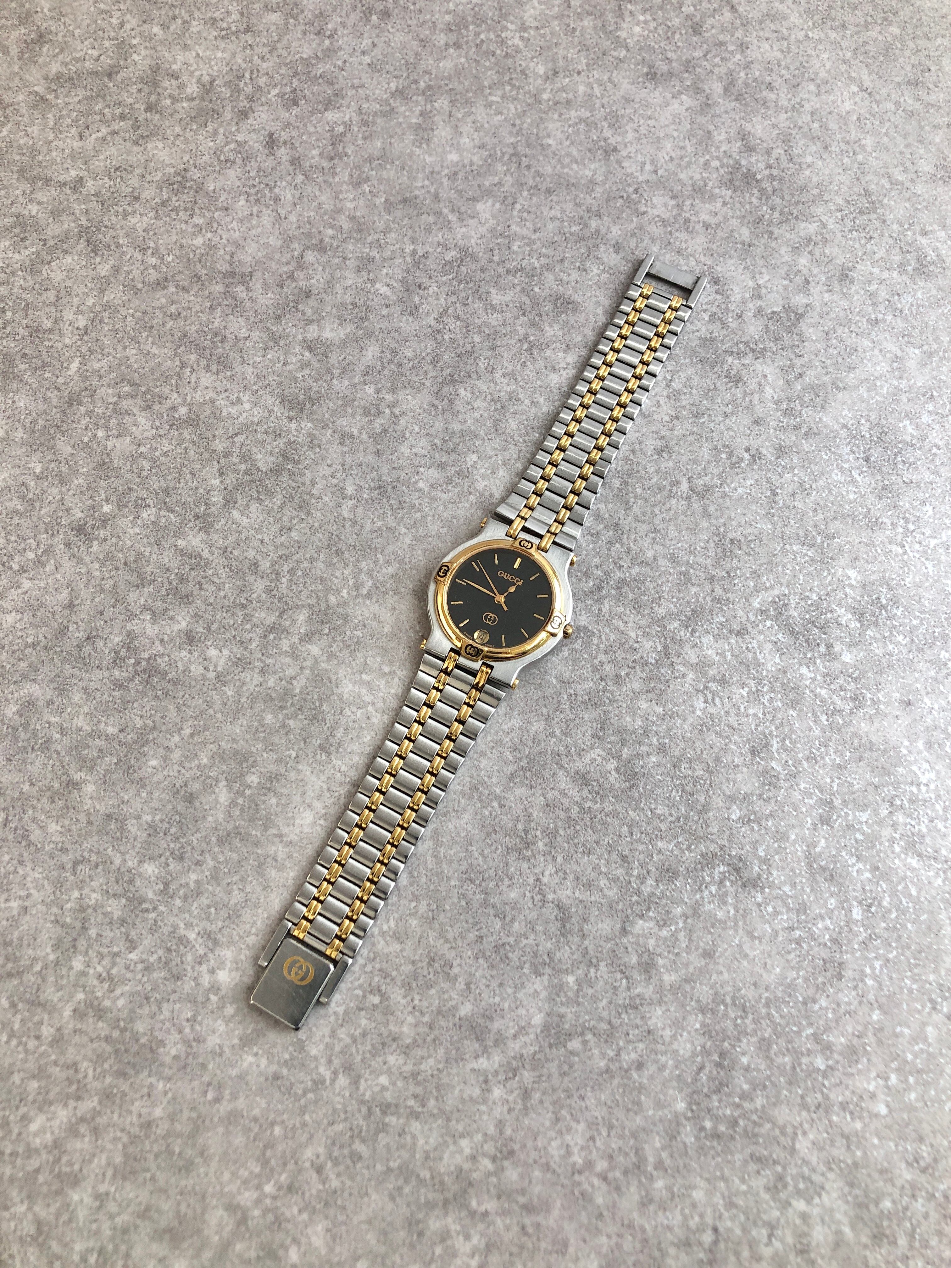 GUCCI グッチ 腕時計 ゴールド シルバー ステンレススチール クウォーツ 9000M vintage ヴィンテージ オールド 2yp2mf