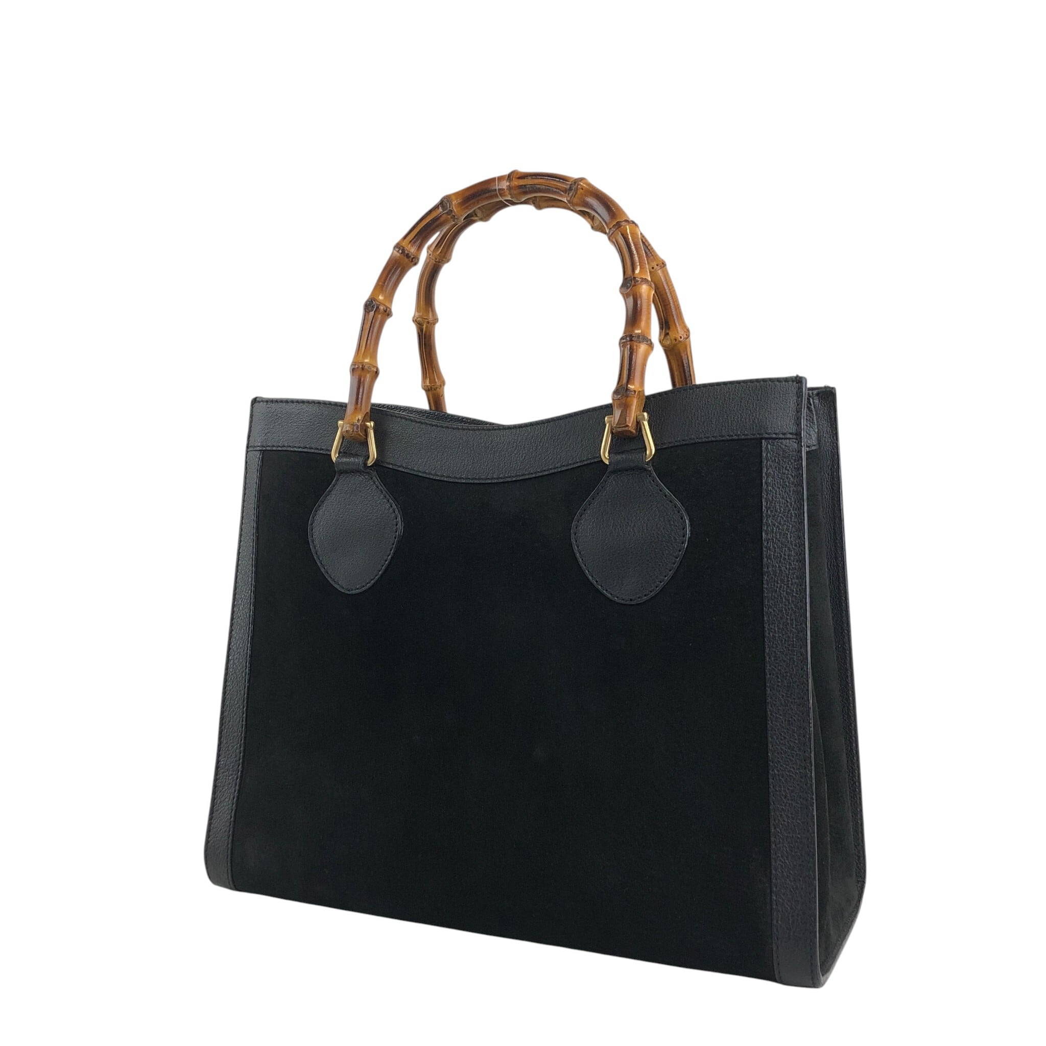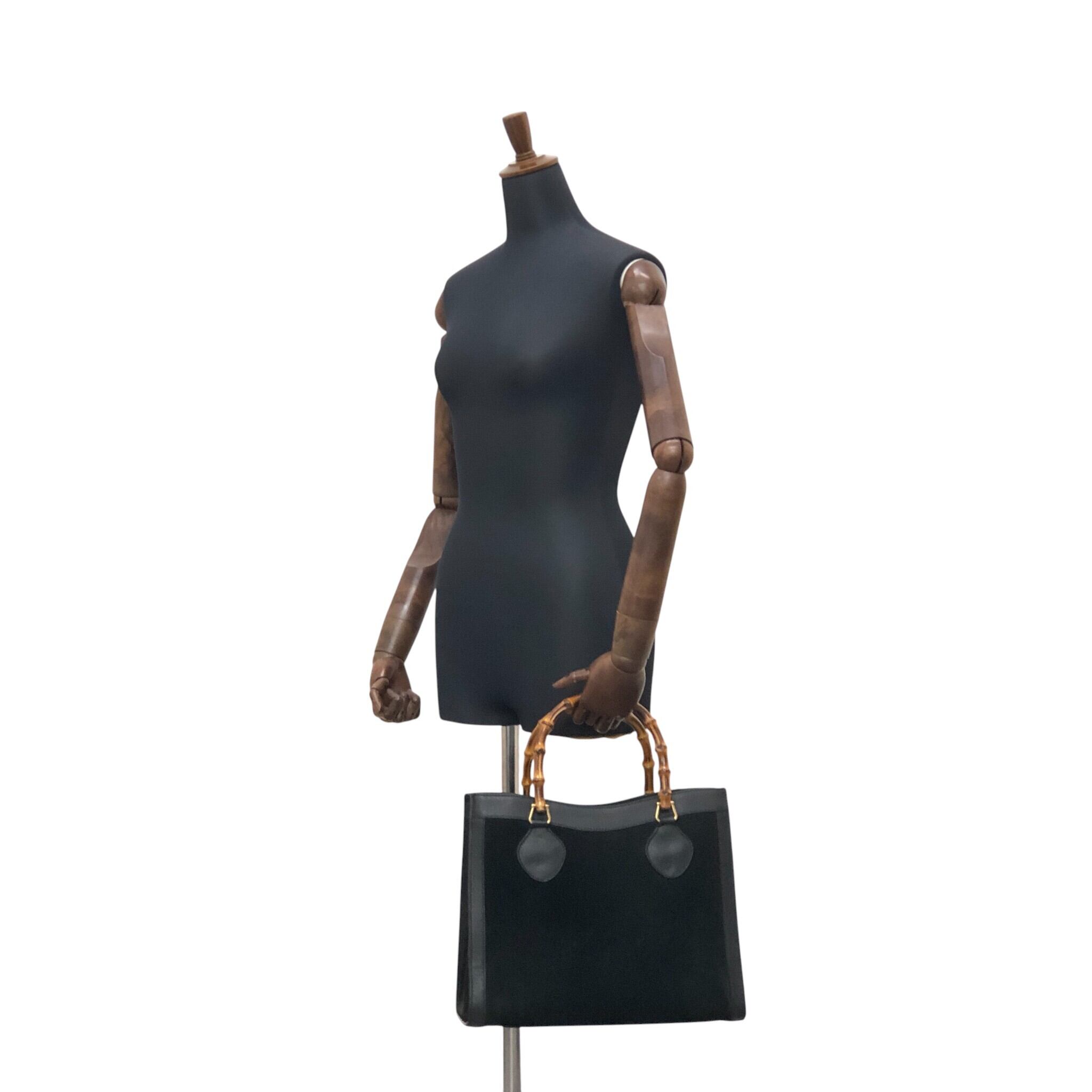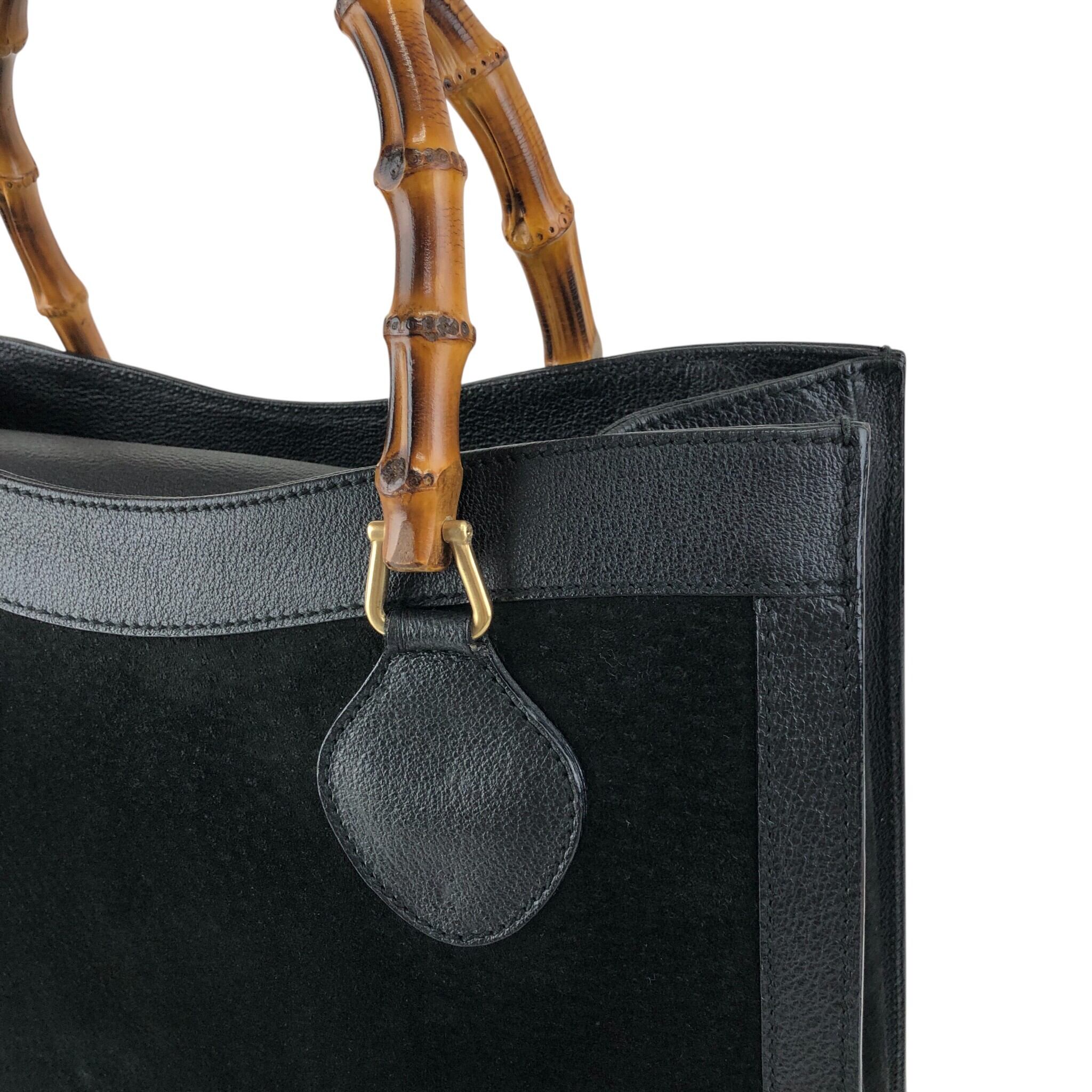GUCCI グッチ ハンドバッグ ブラック バンブー レザー スエード ダイアナ vintage ヴィンテージ オールド ujswe3