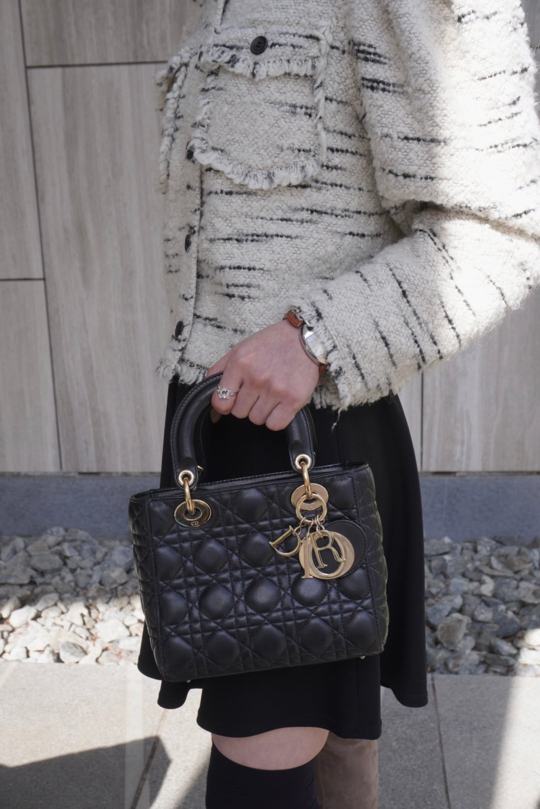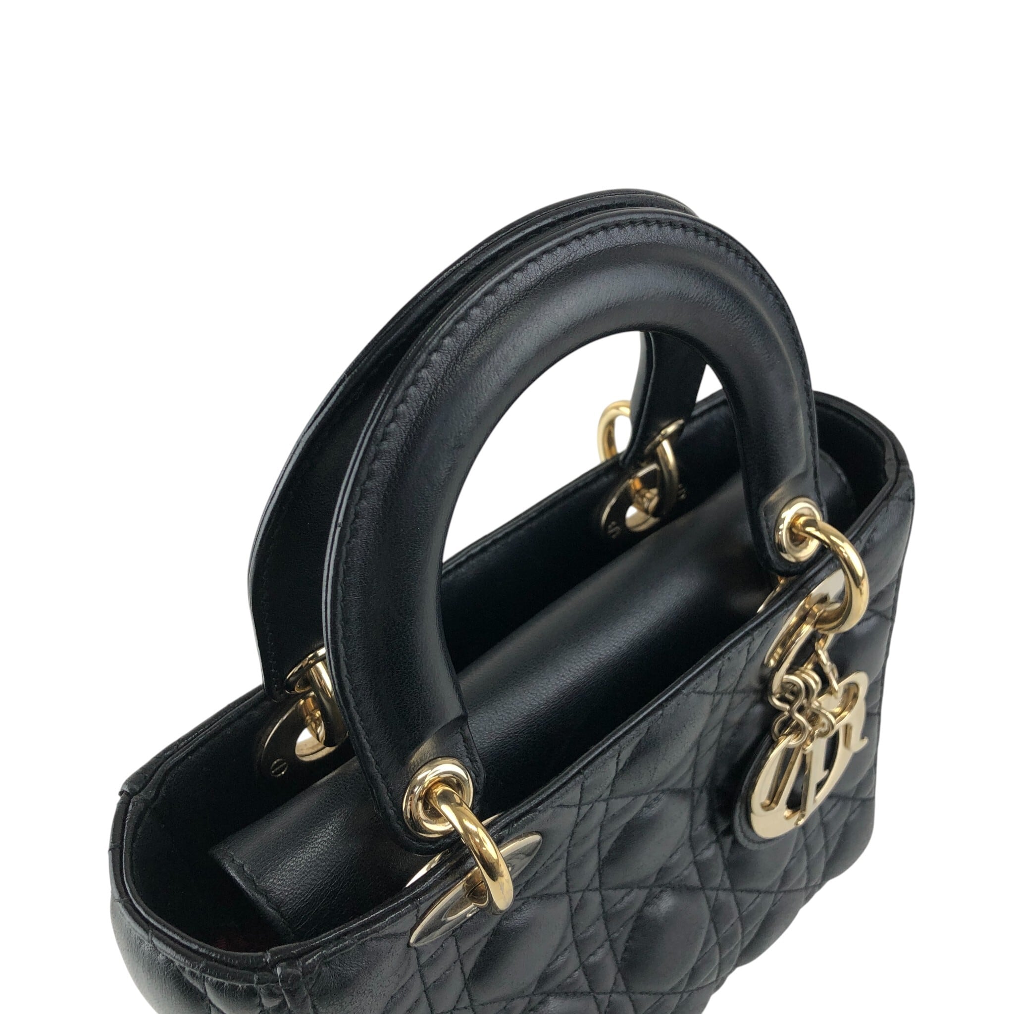 Christian Dior クリスチャン ディオール カナージュ ハンドバッグ ブラック ロゴチャーム レザー レディディオール vintage ヴィンテージ オールド 885e65