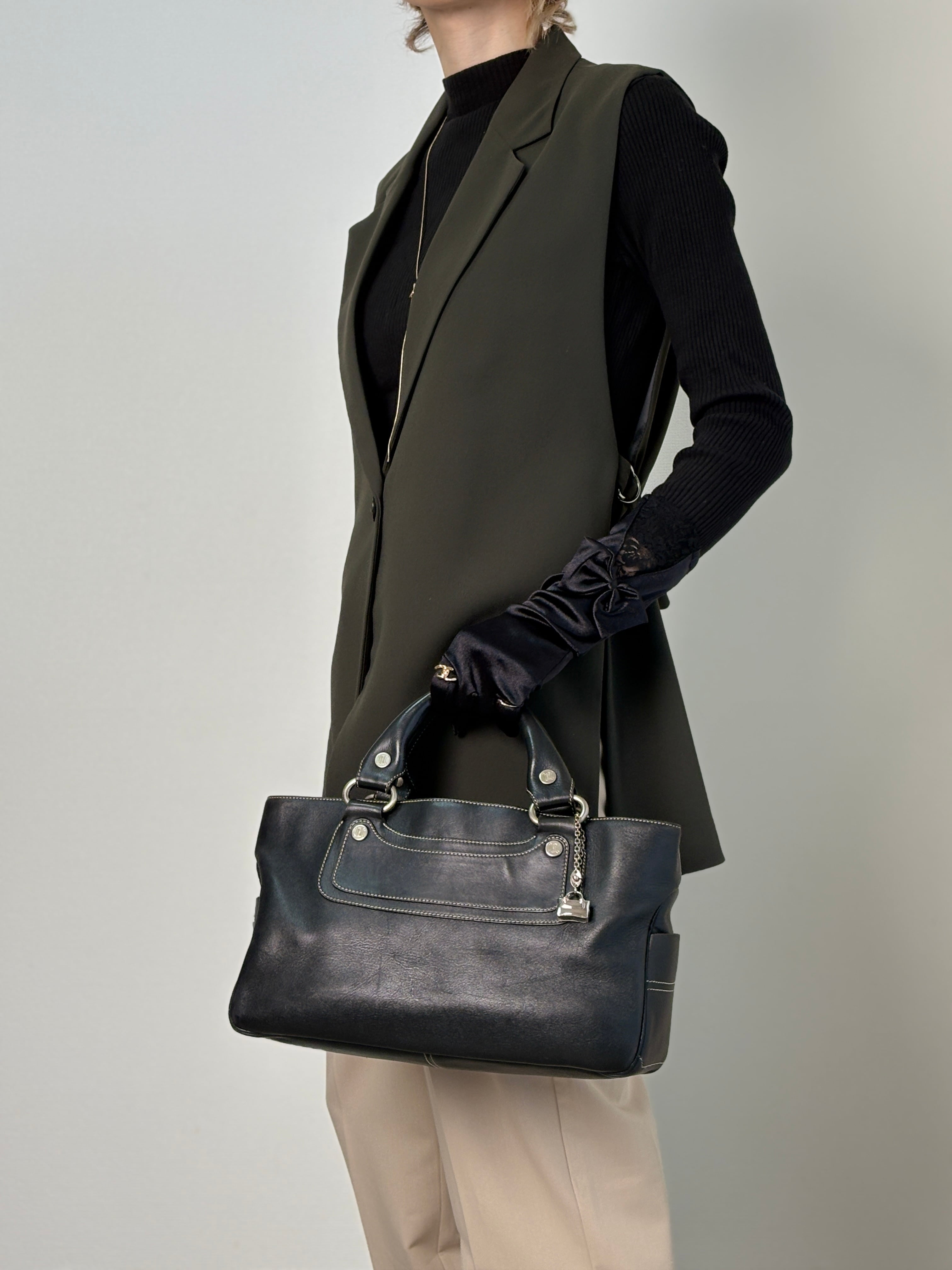 CELINE セリーヌ ハンドバッグ ブラック トリオンフ レザー ブギーバッグ チャーム vintage ヴィンテージ オールド eyvr3v