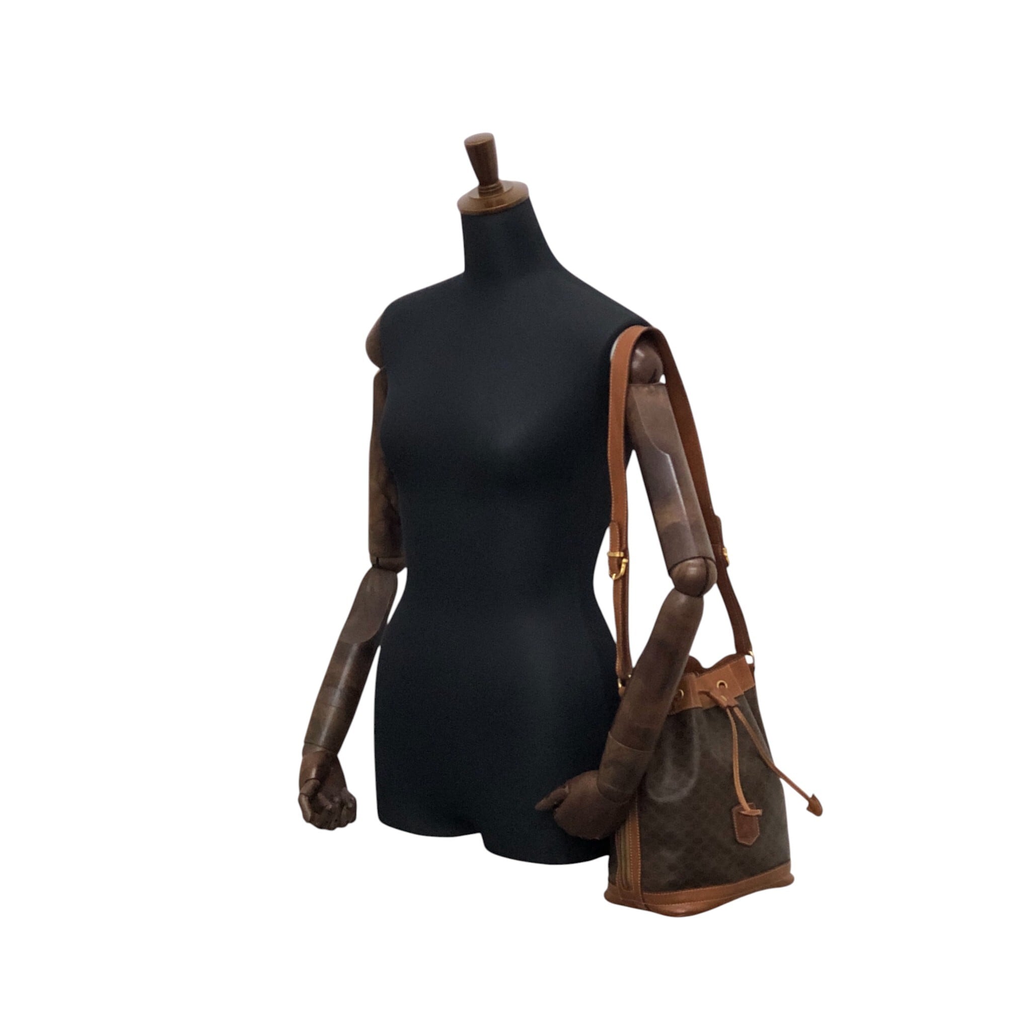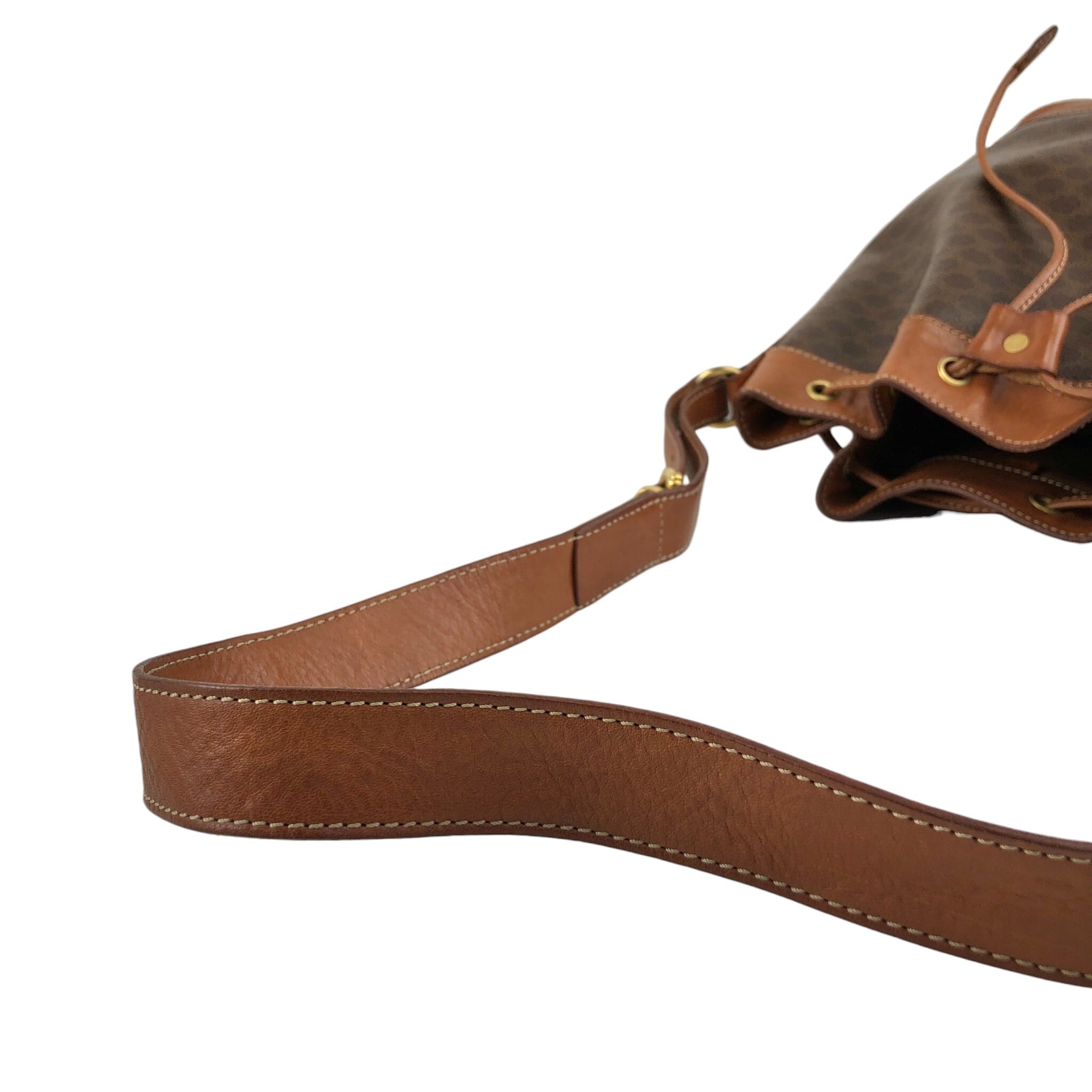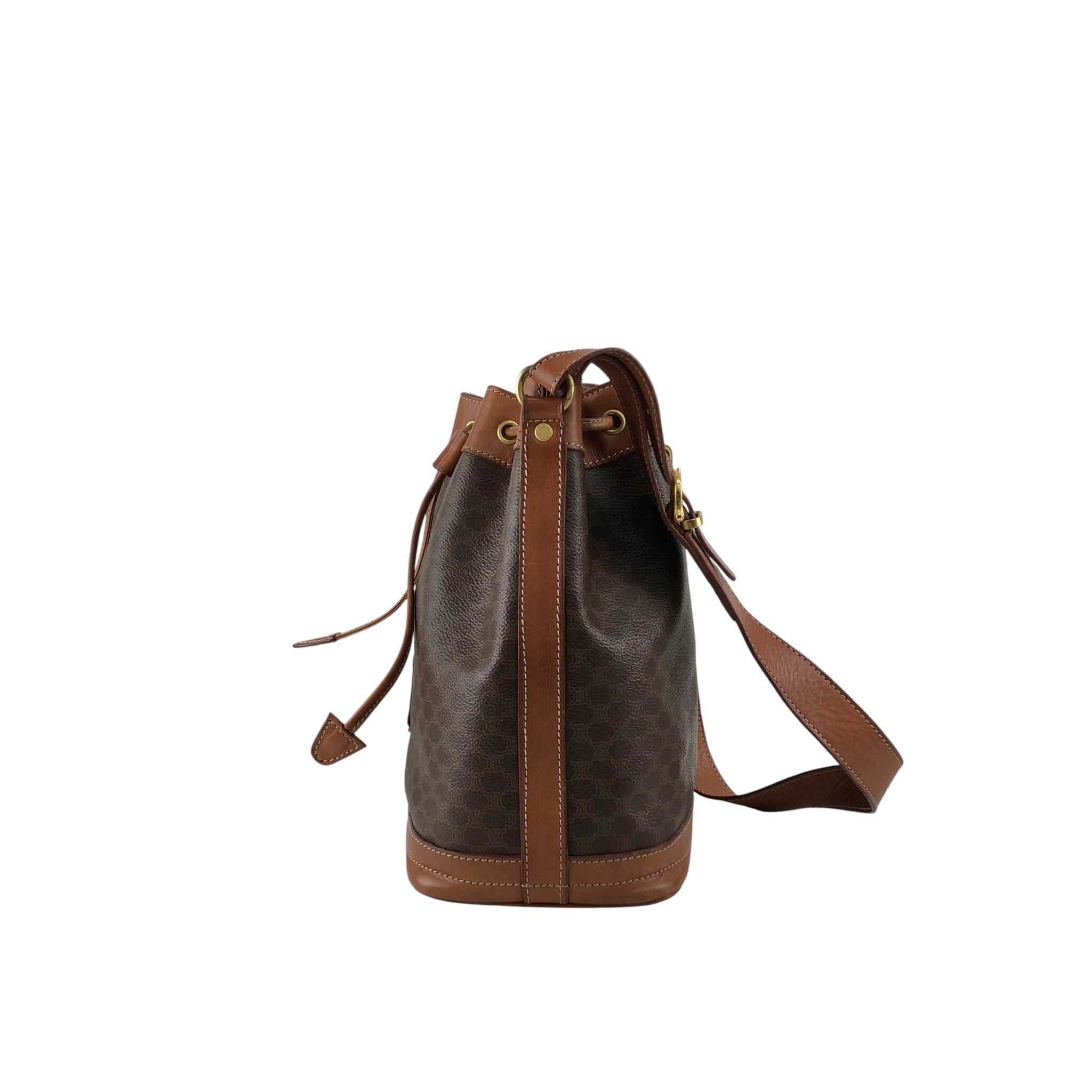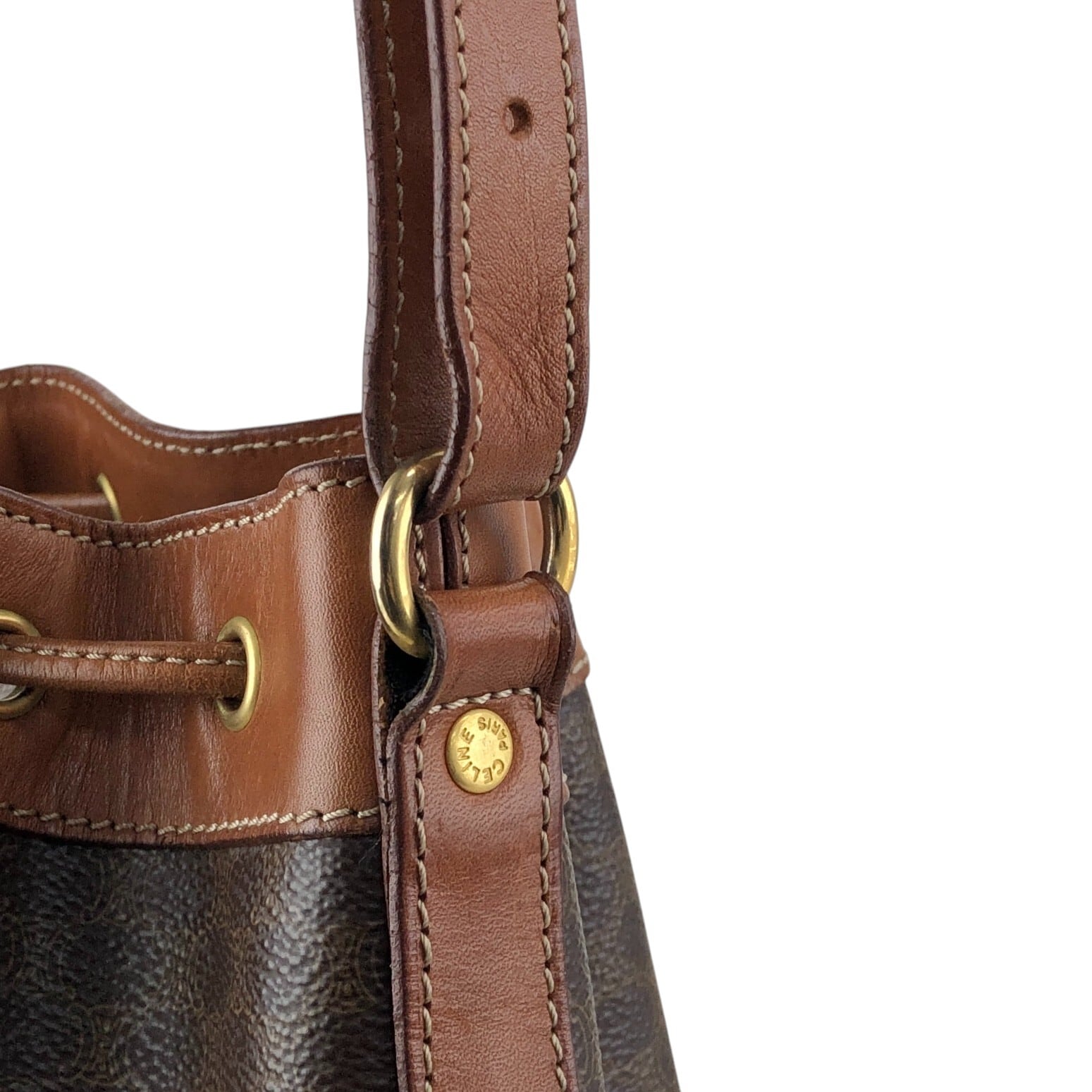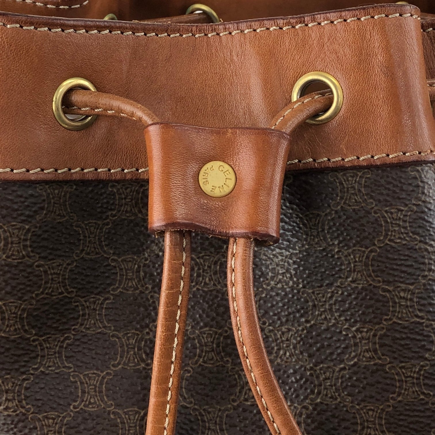 CELINE セリーヌ マカダム ショルダーバッグ ブラウン ブラゾン PVCレザー 巾着 vintage ヴィンテージ オールド 75h5fk
