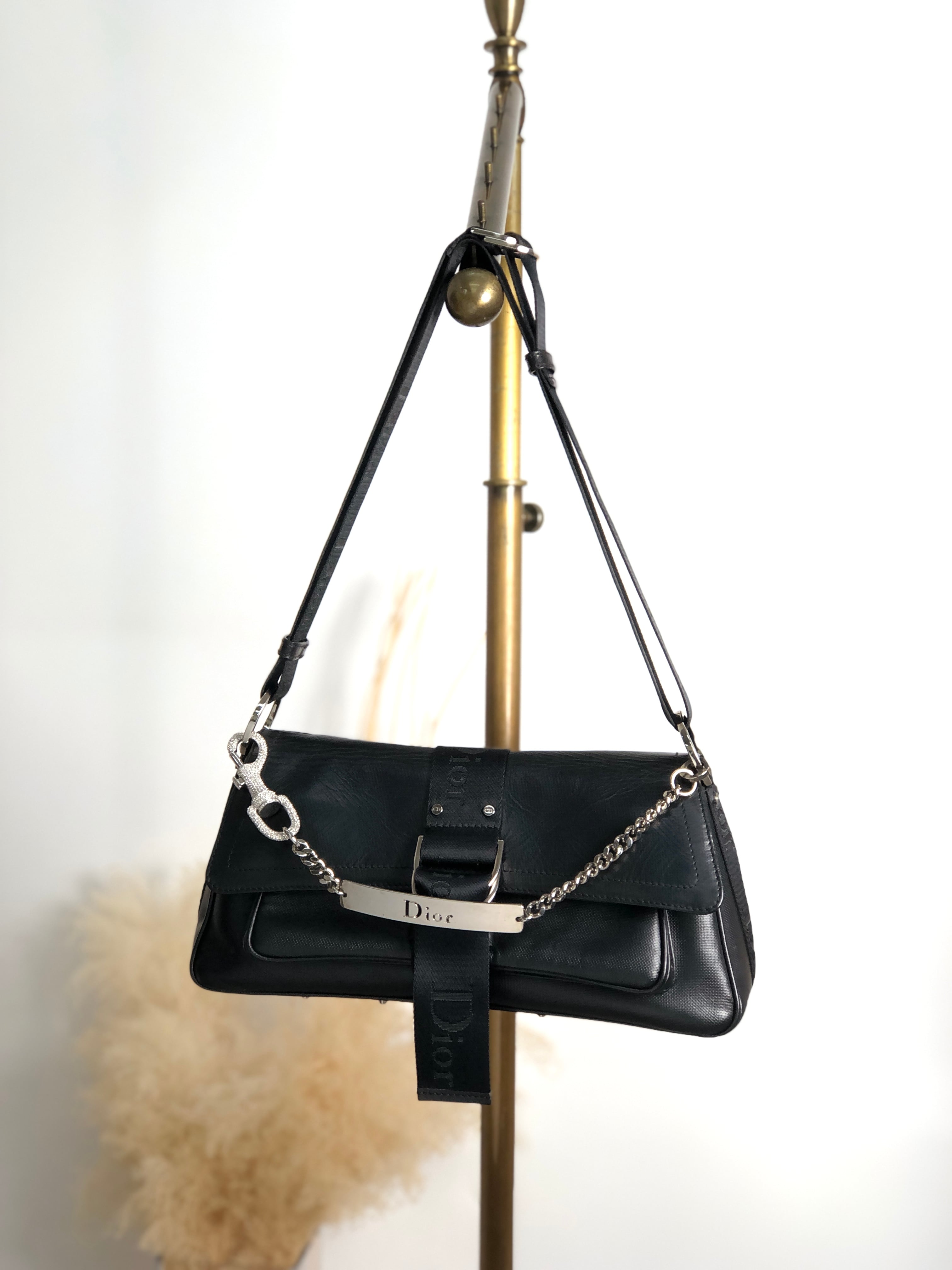 Christian Dior クリスチャン ディオール ハードコア ショルダーバッグ ブラック ビジュー カラビナ レザー vintage ヴィンテージ オールド zyyhbb