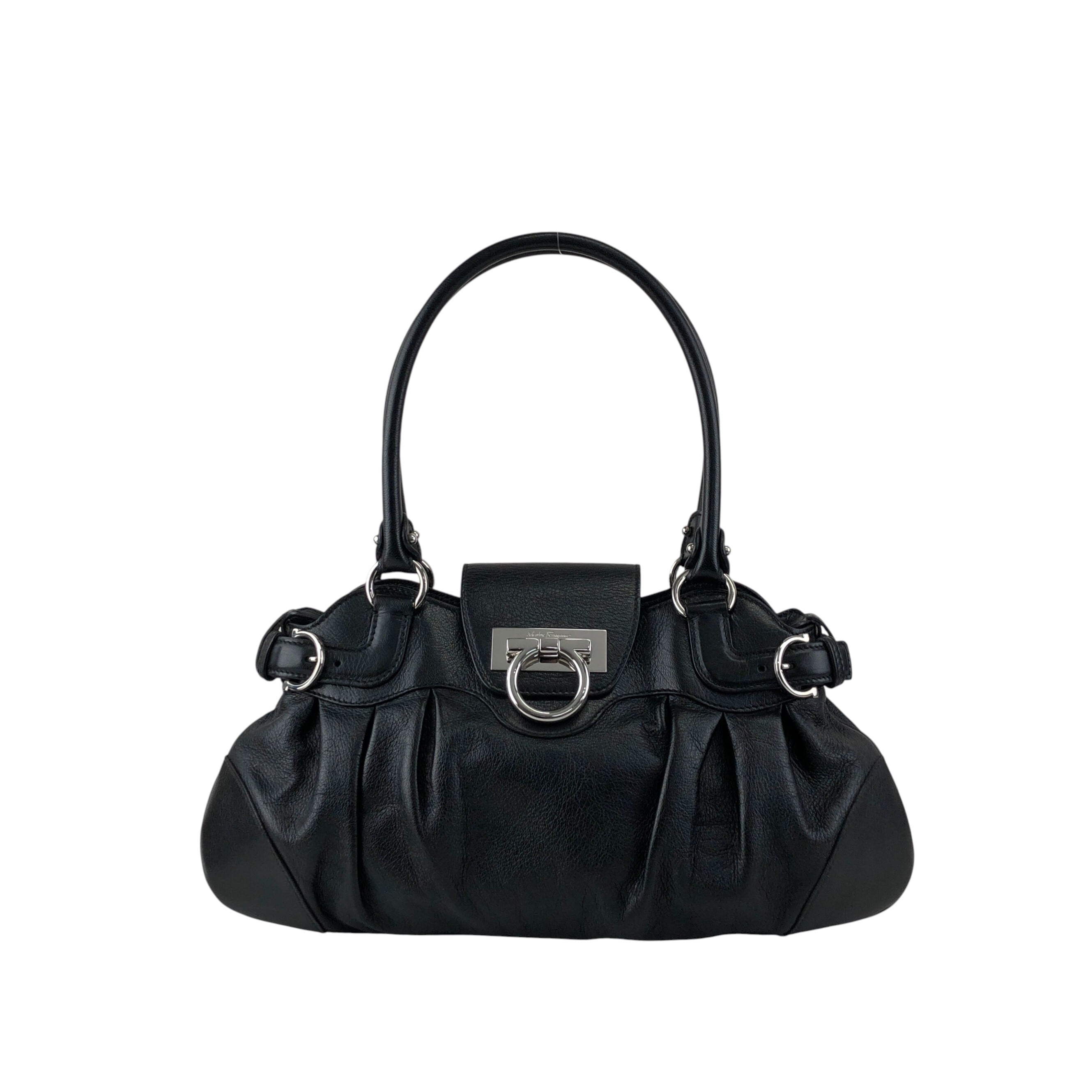 Salvatore Ferragamo サルヴァトーレ フェラガモ ハンドバッグ ブラック ガンチーニ レザー vintage ヴィンテージ オールド mfbzax