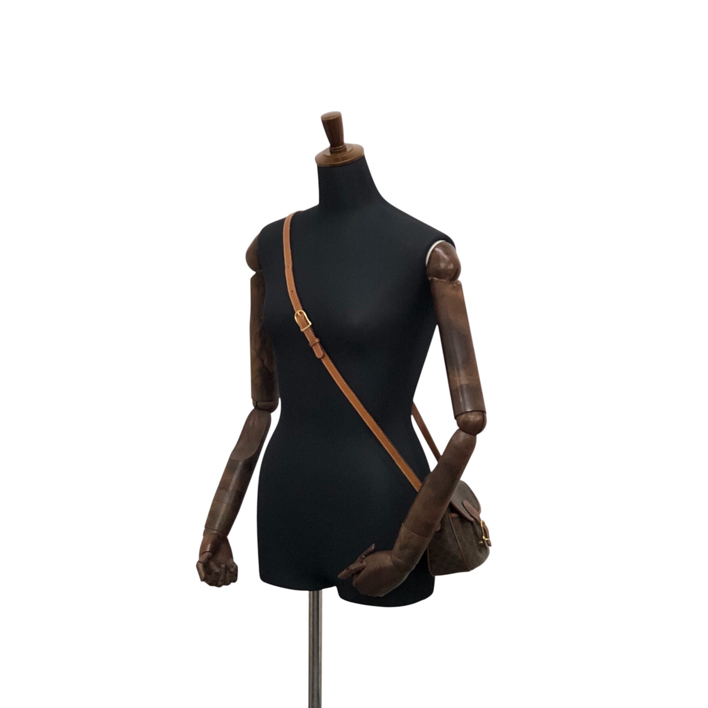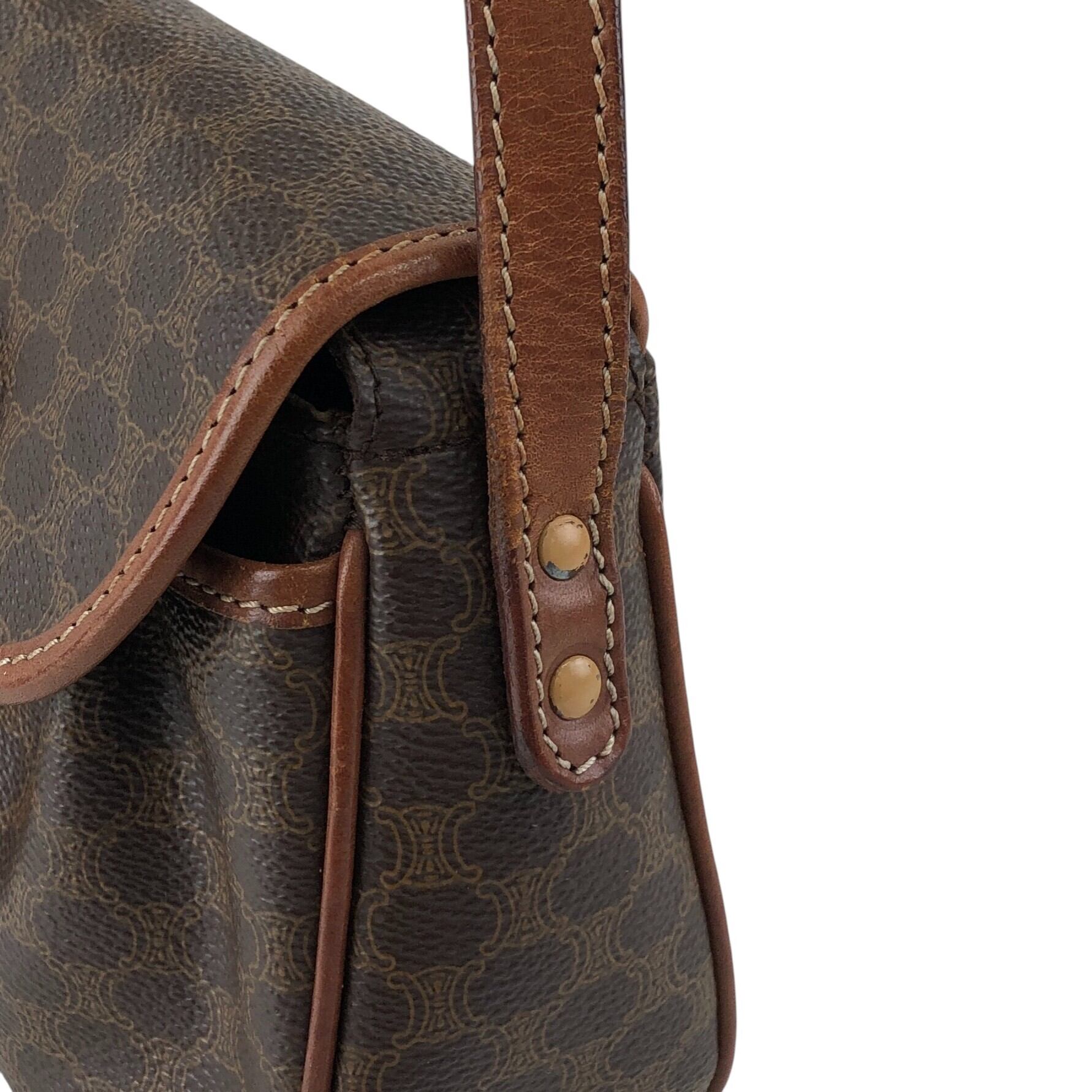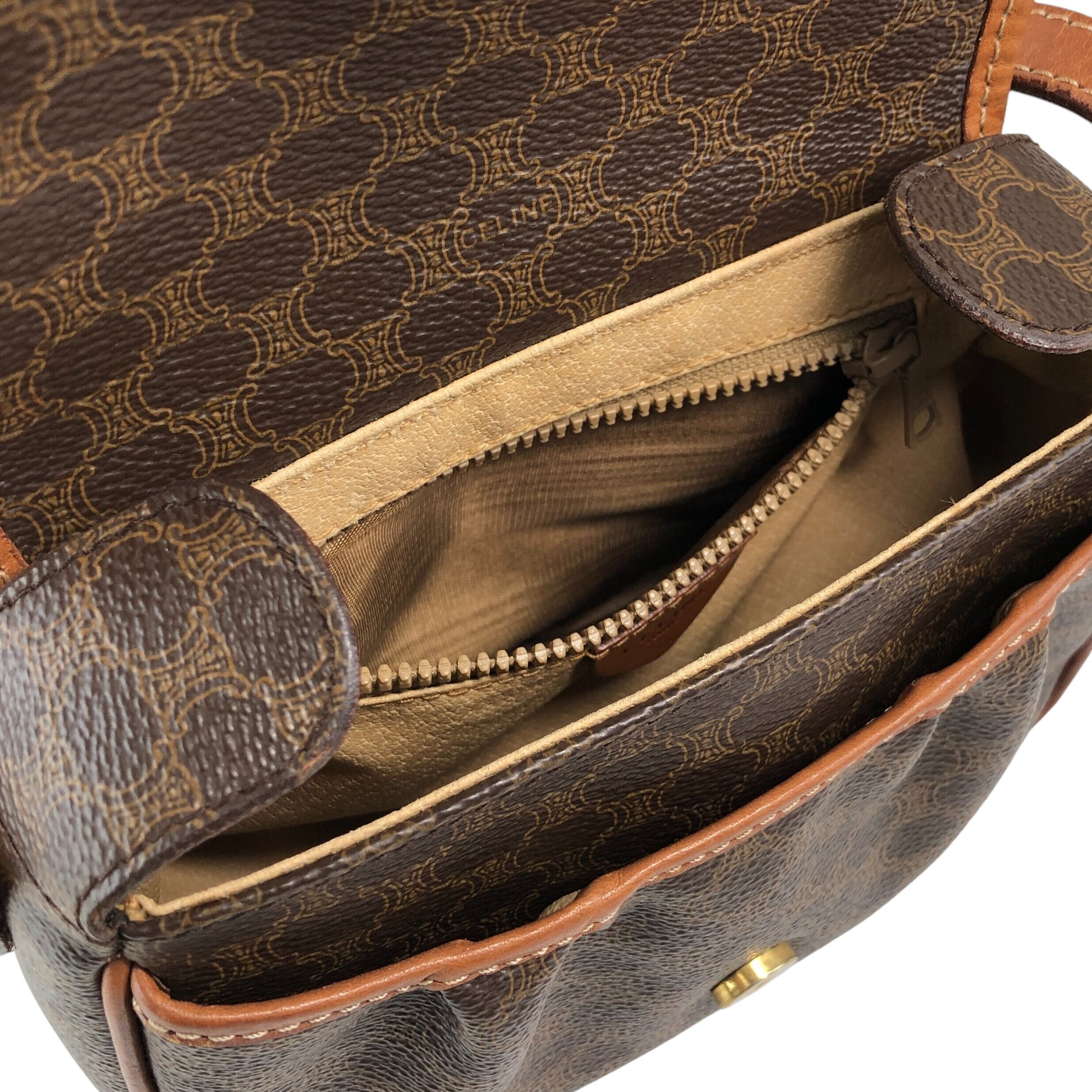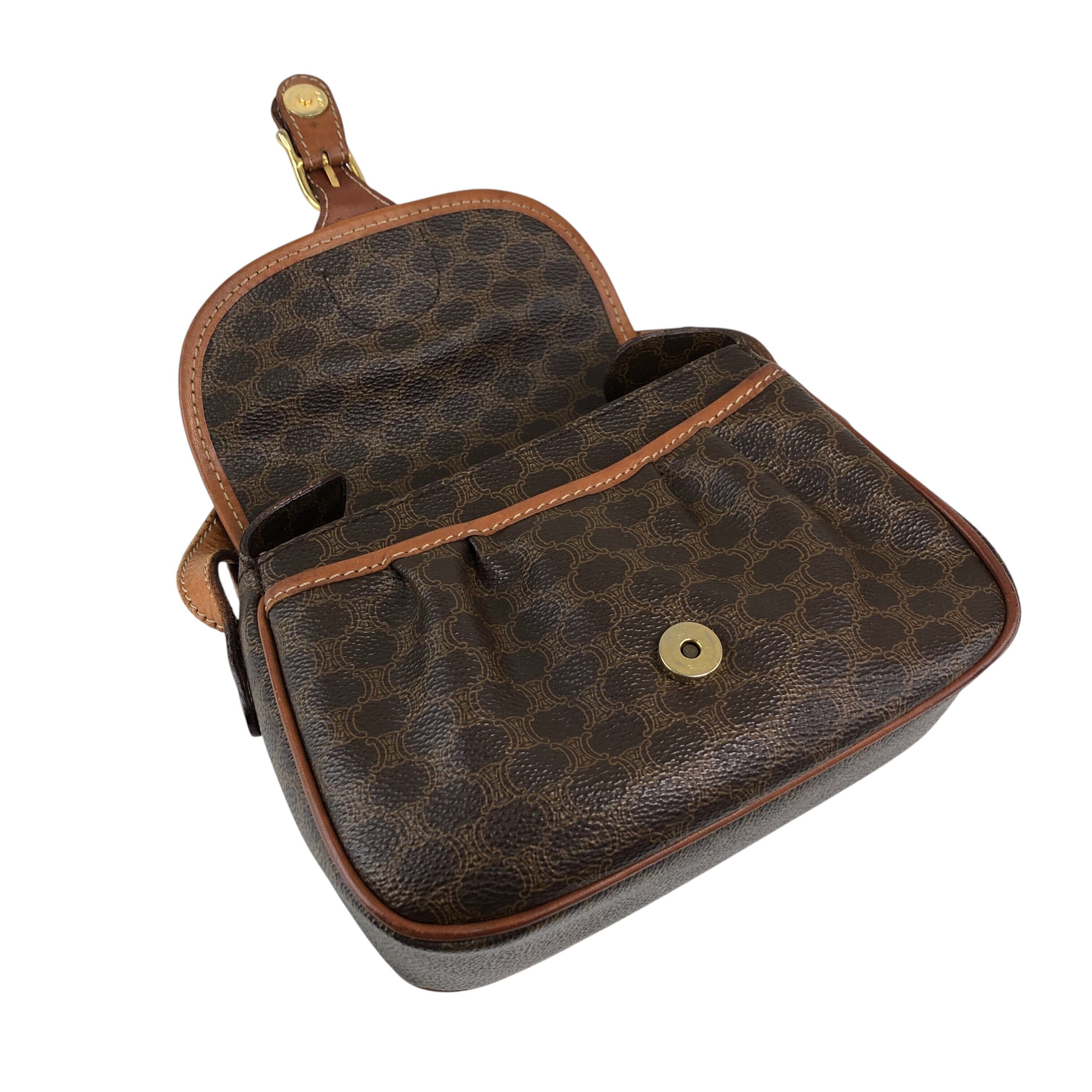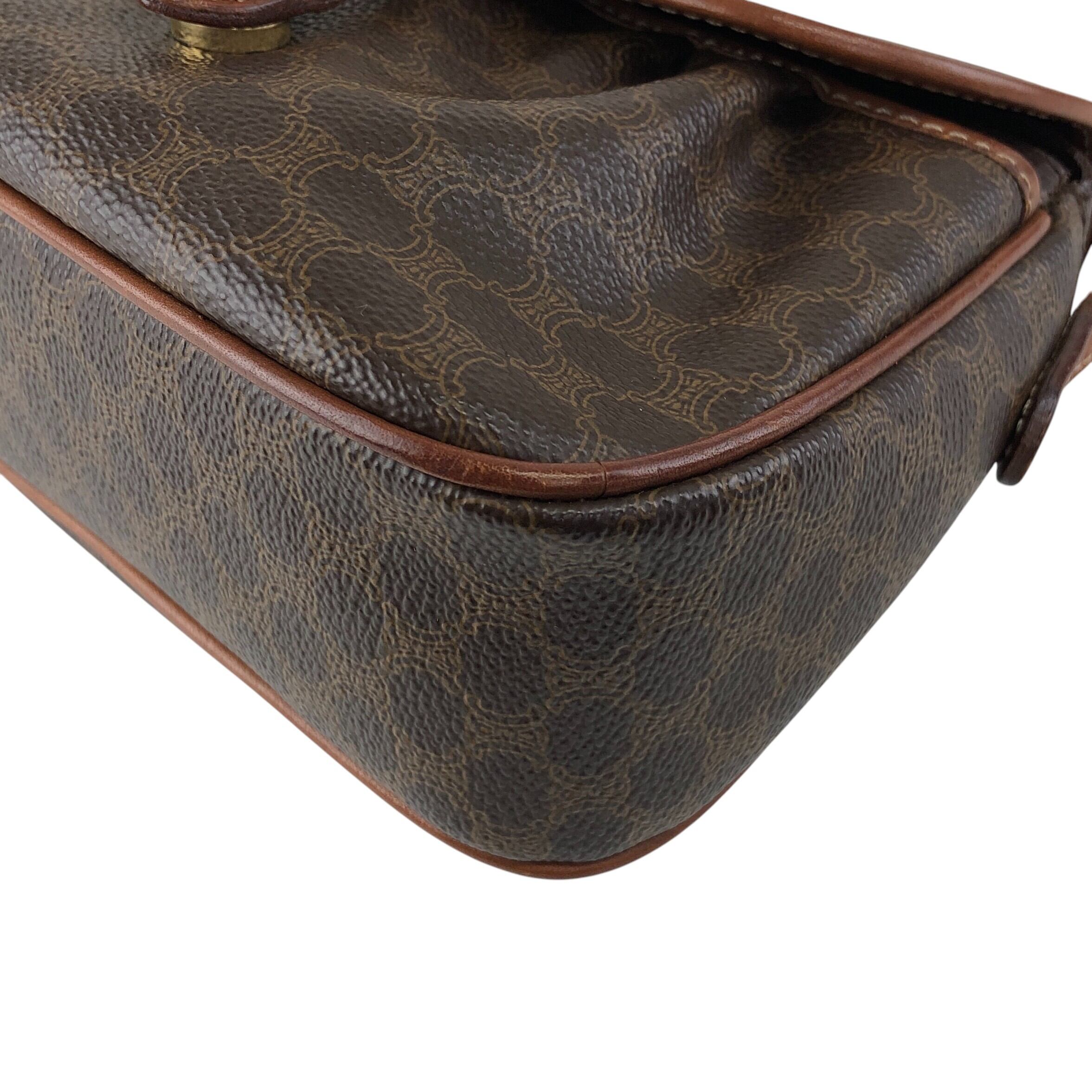 CELINE セリーヌ マカダム ショルダーバッグ ブラウン ブラゾン型押し PVCレザー フロントバックル vintage ヴィンテージ オールド x8b3ea