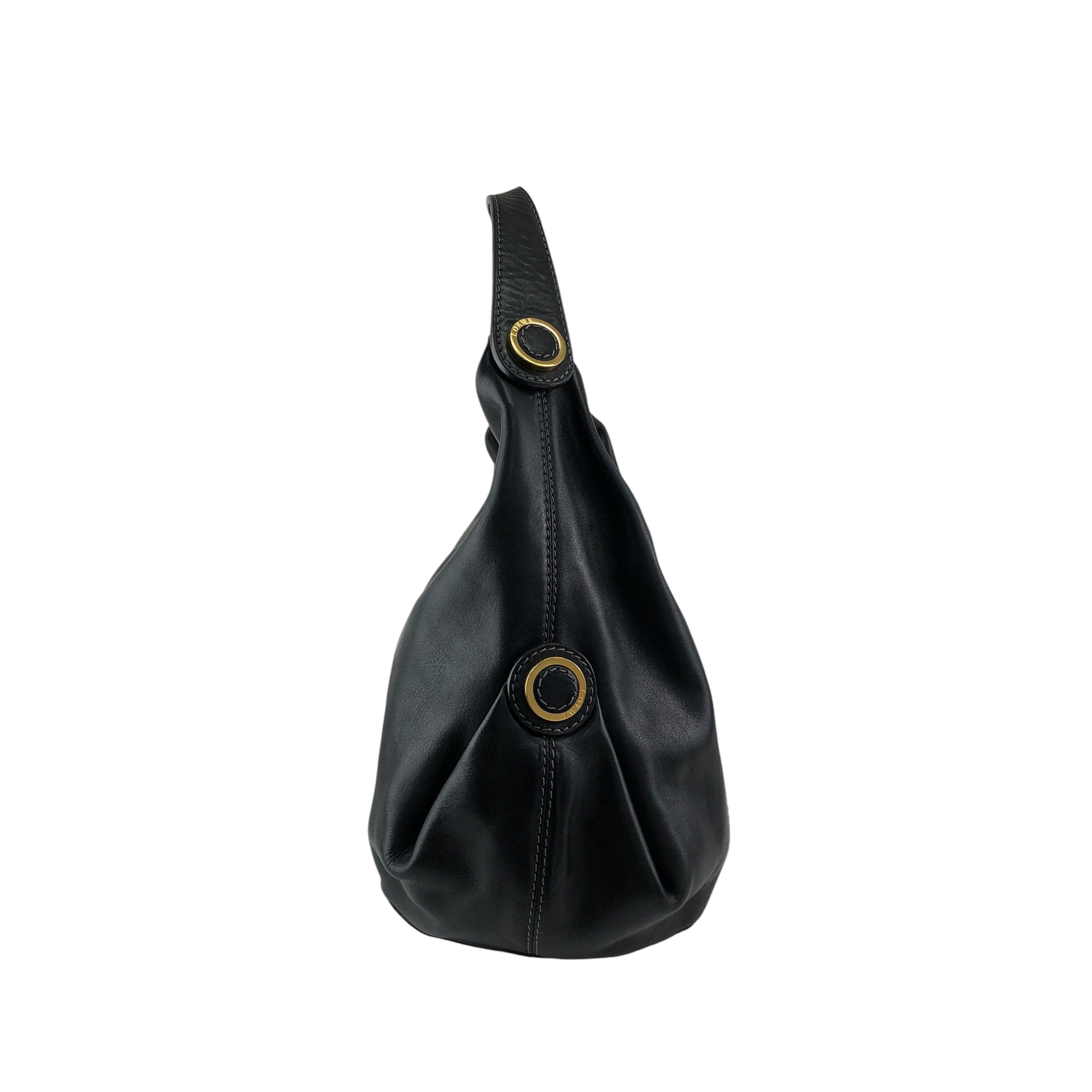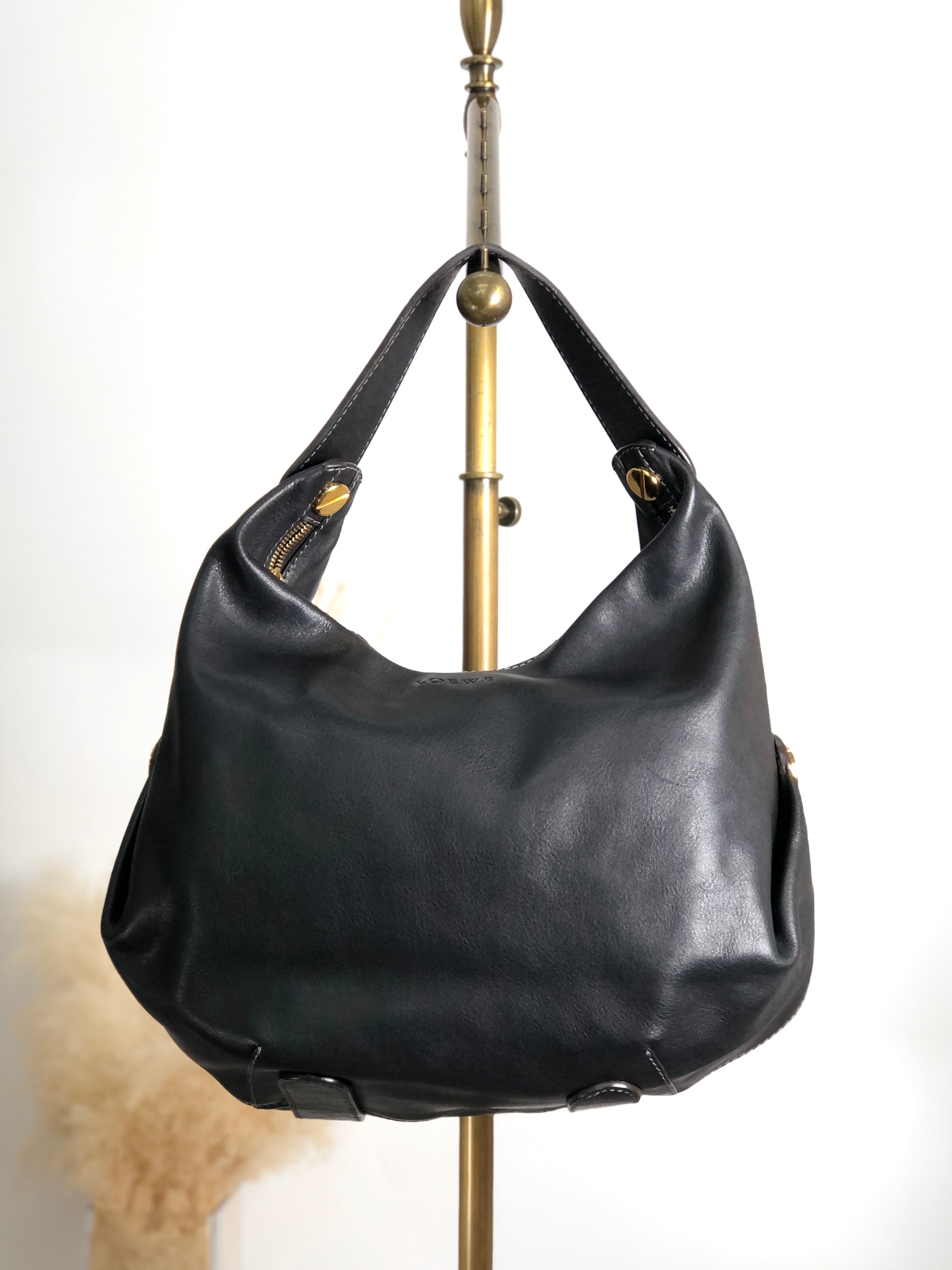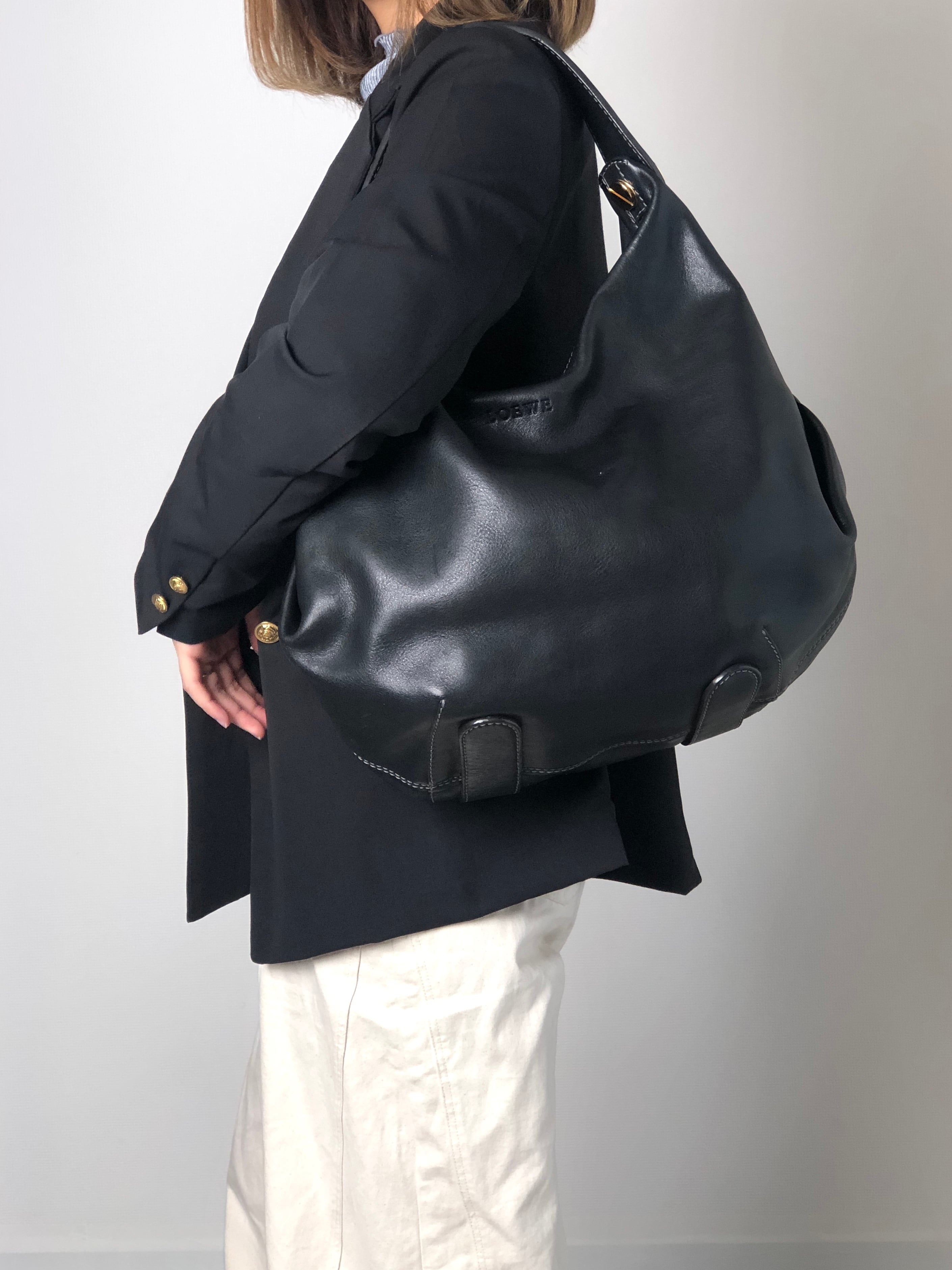 LOEWE ロエベ ショルダーバッグ ブラック ロゴ レザー ホーボーバッグ vintage ヴィンテージ オールド hyf3s5