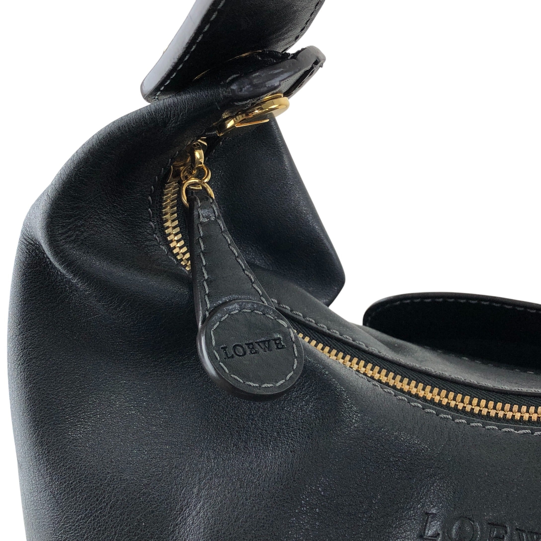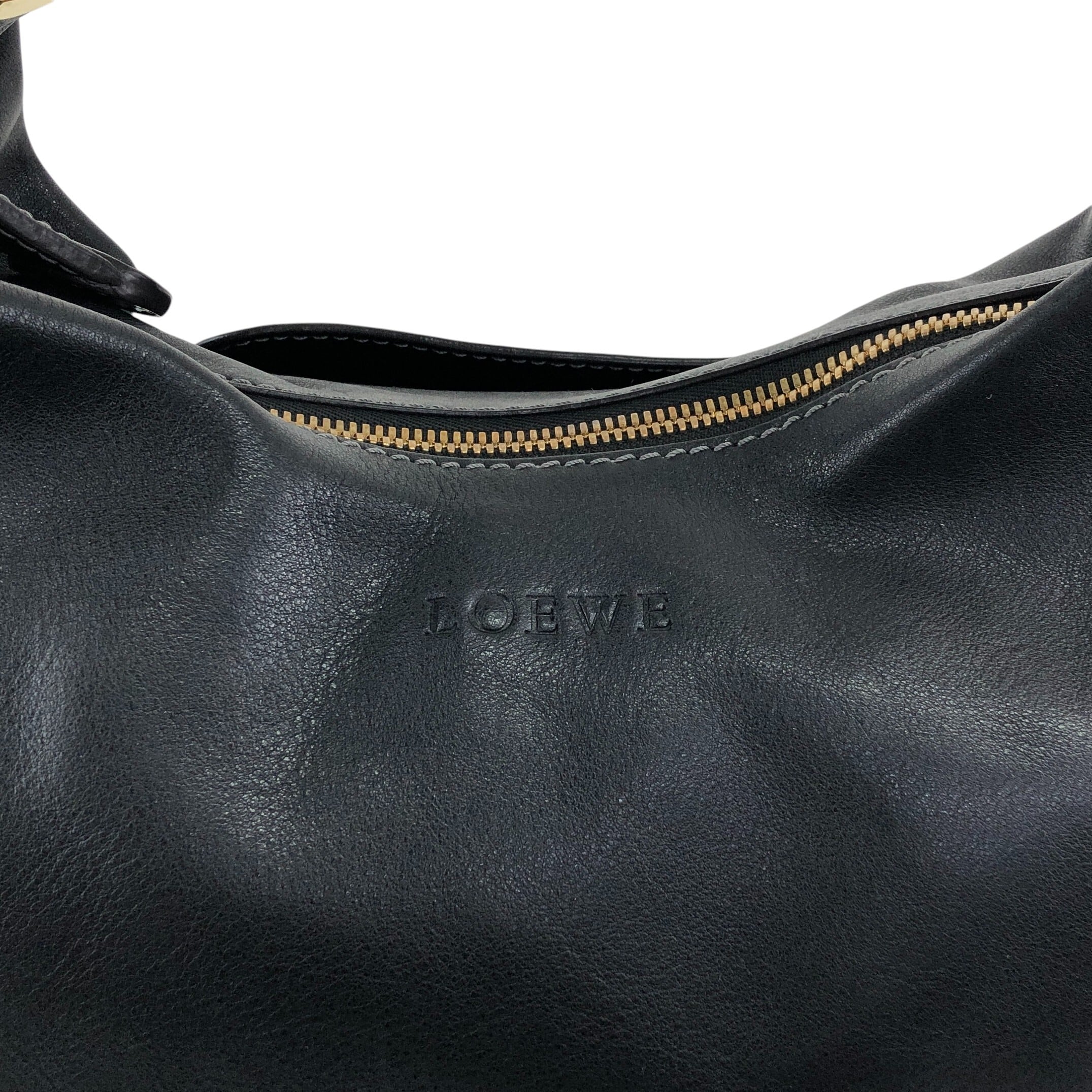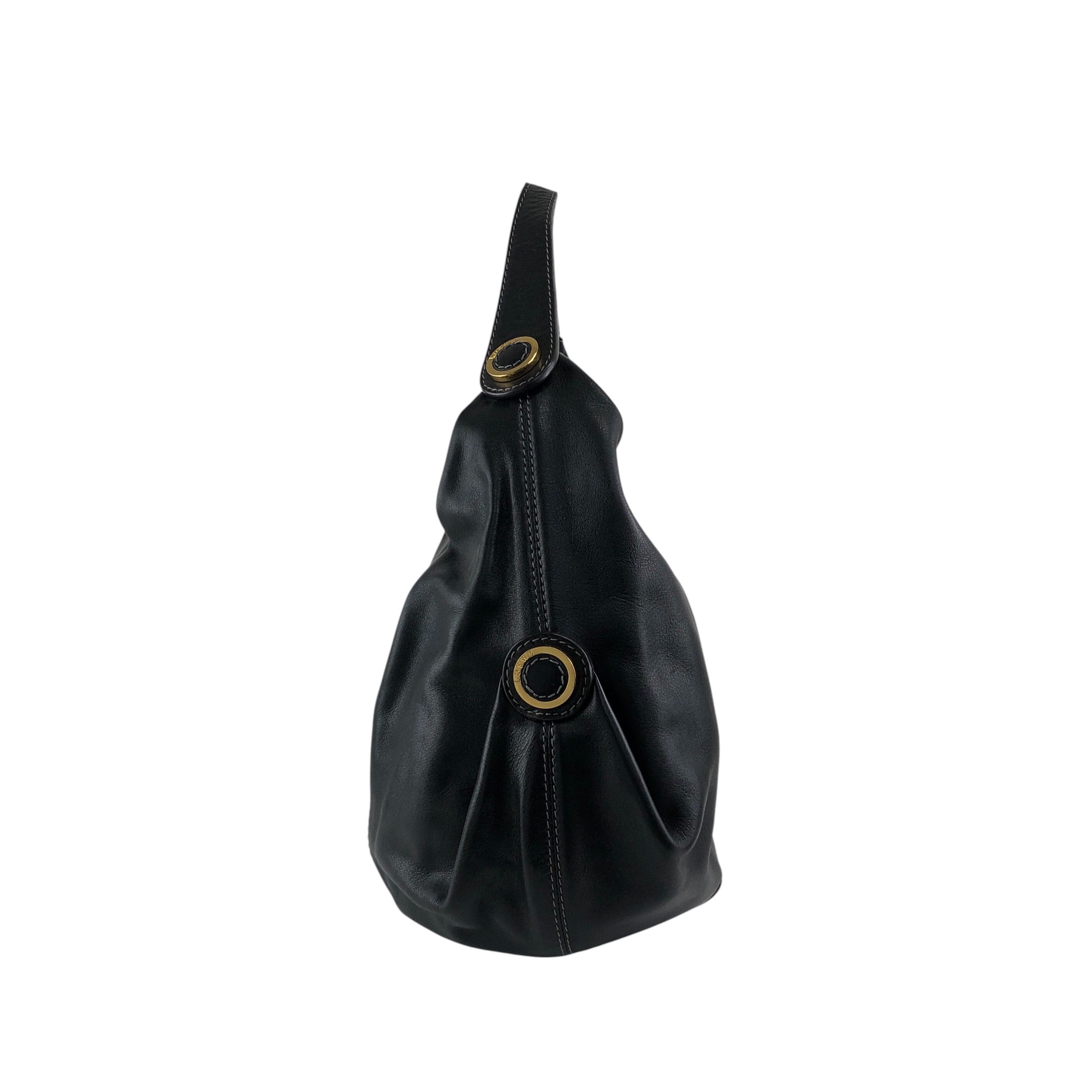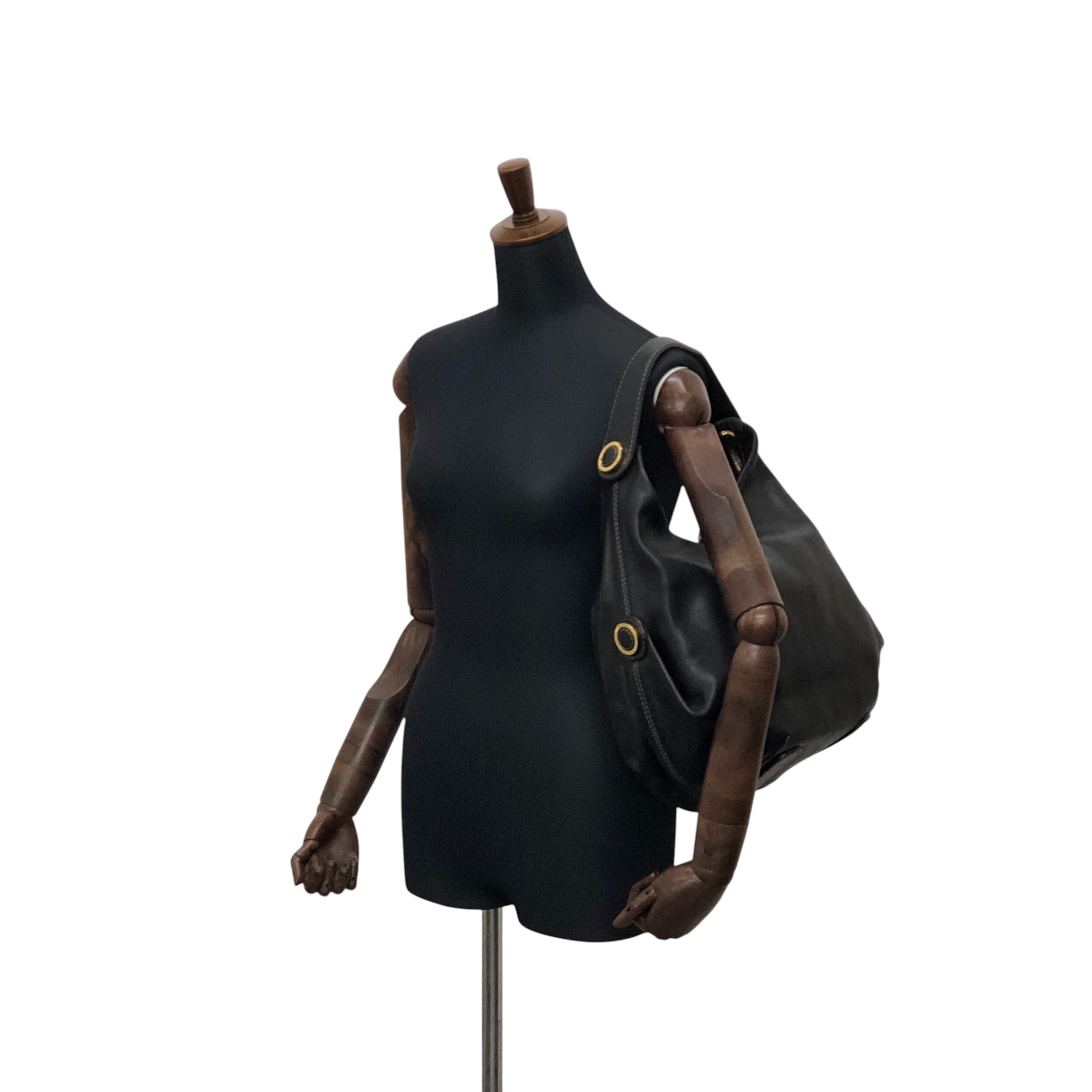 LOEWE ロエベ ショルダーバッグ ブラック ロゴ レザー ホーボーバッグ vintage ヴィンテージ オールド hyf3s5