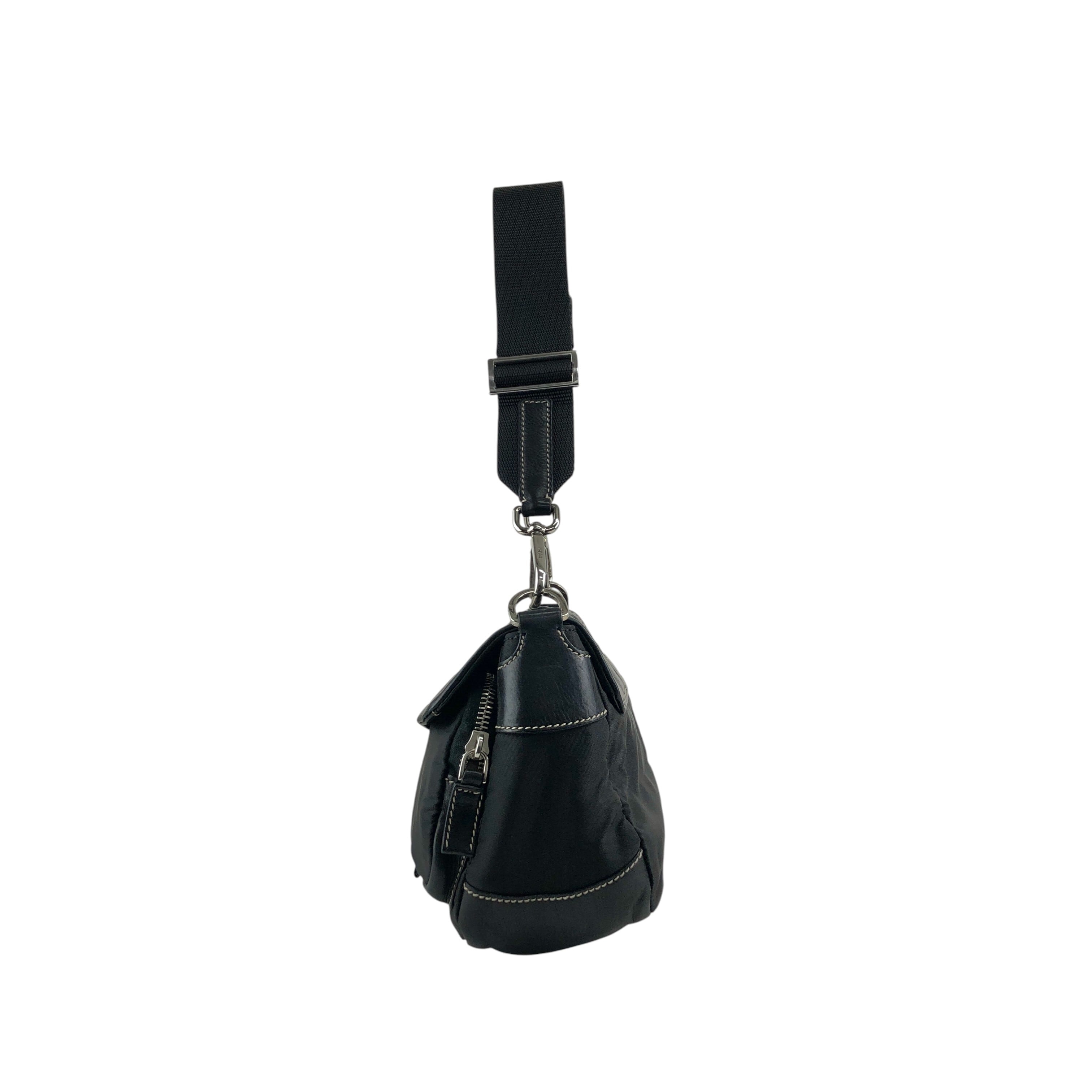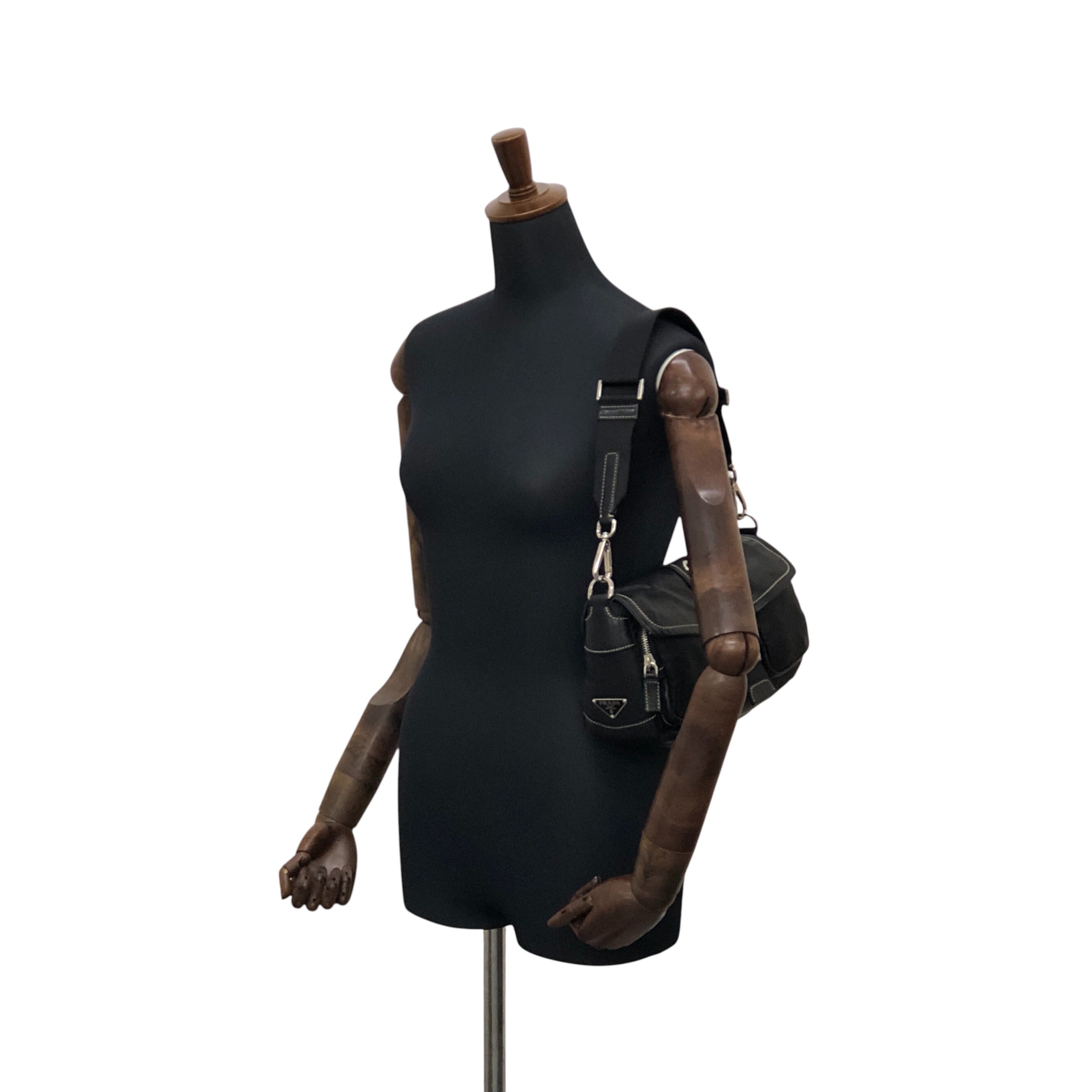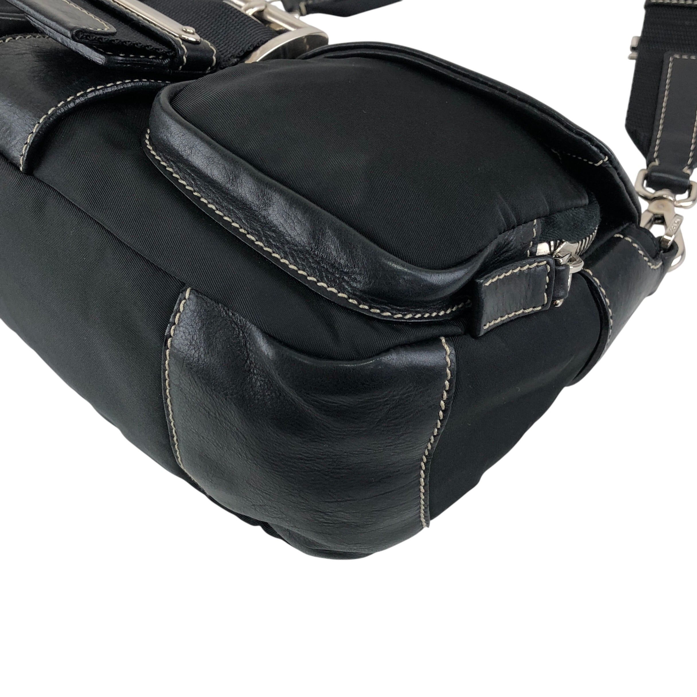 PRADA プラダ ショルダーバッグ ブラック トライアングルロゴ ナイロン レザー フロントバックル dgr7v8