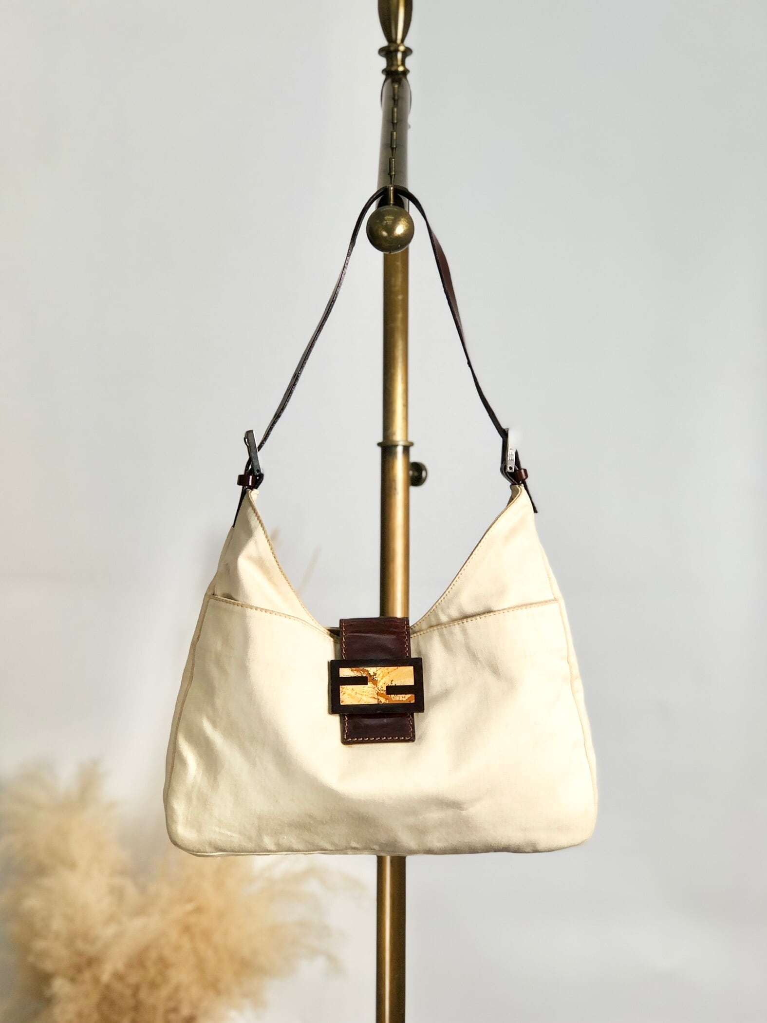 FENDI フェンディ ショルダーバッグ ベージュ FFロゴ キャンバス マンマバケット ホーボー vintage ヴィンテージ オールド c6ztd5