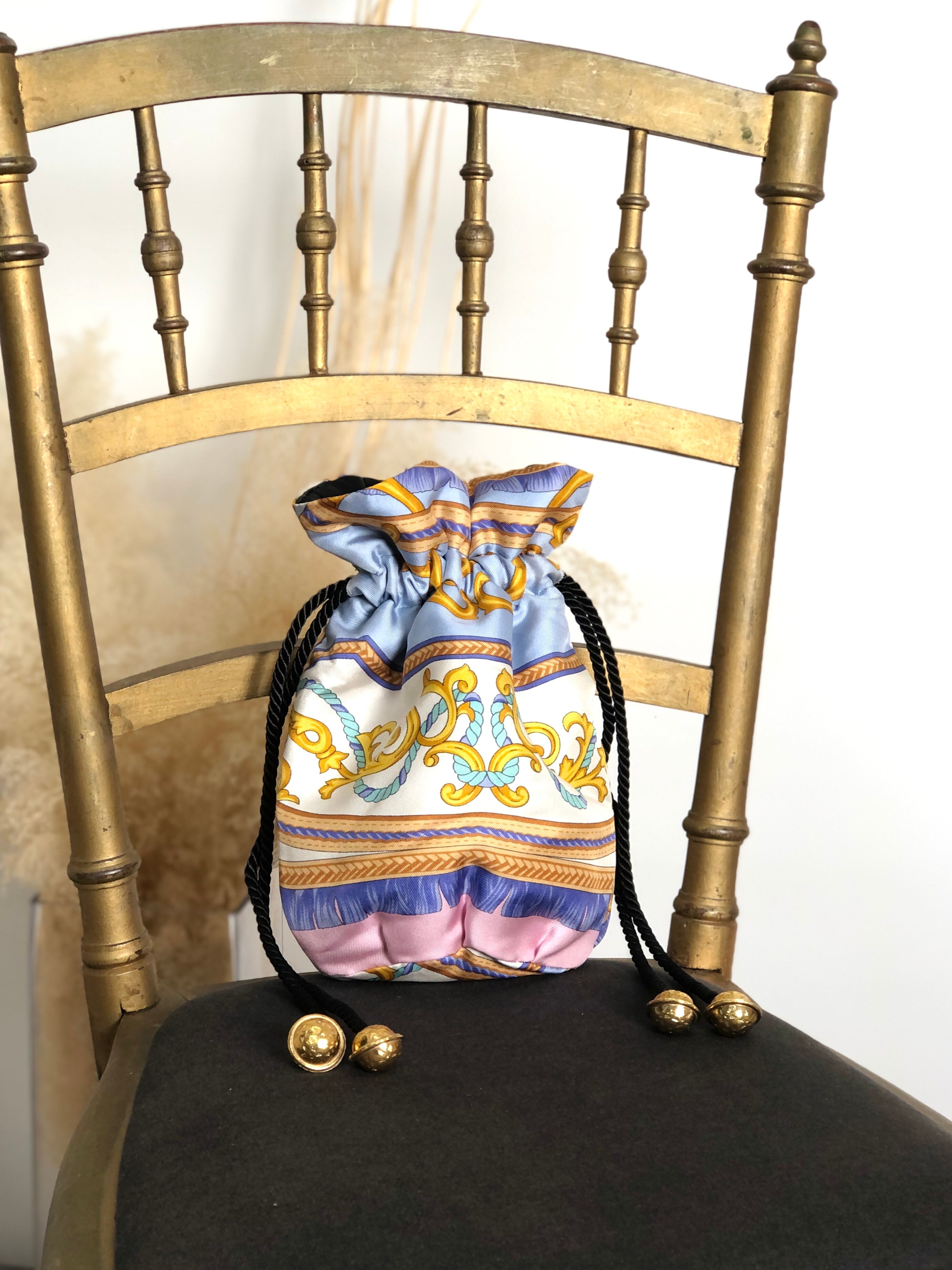 CELINE セリーヌ ハンドバッグ ブルー スターボール シルク 巾着 vintage ヴィンテージ オールド cp3wry