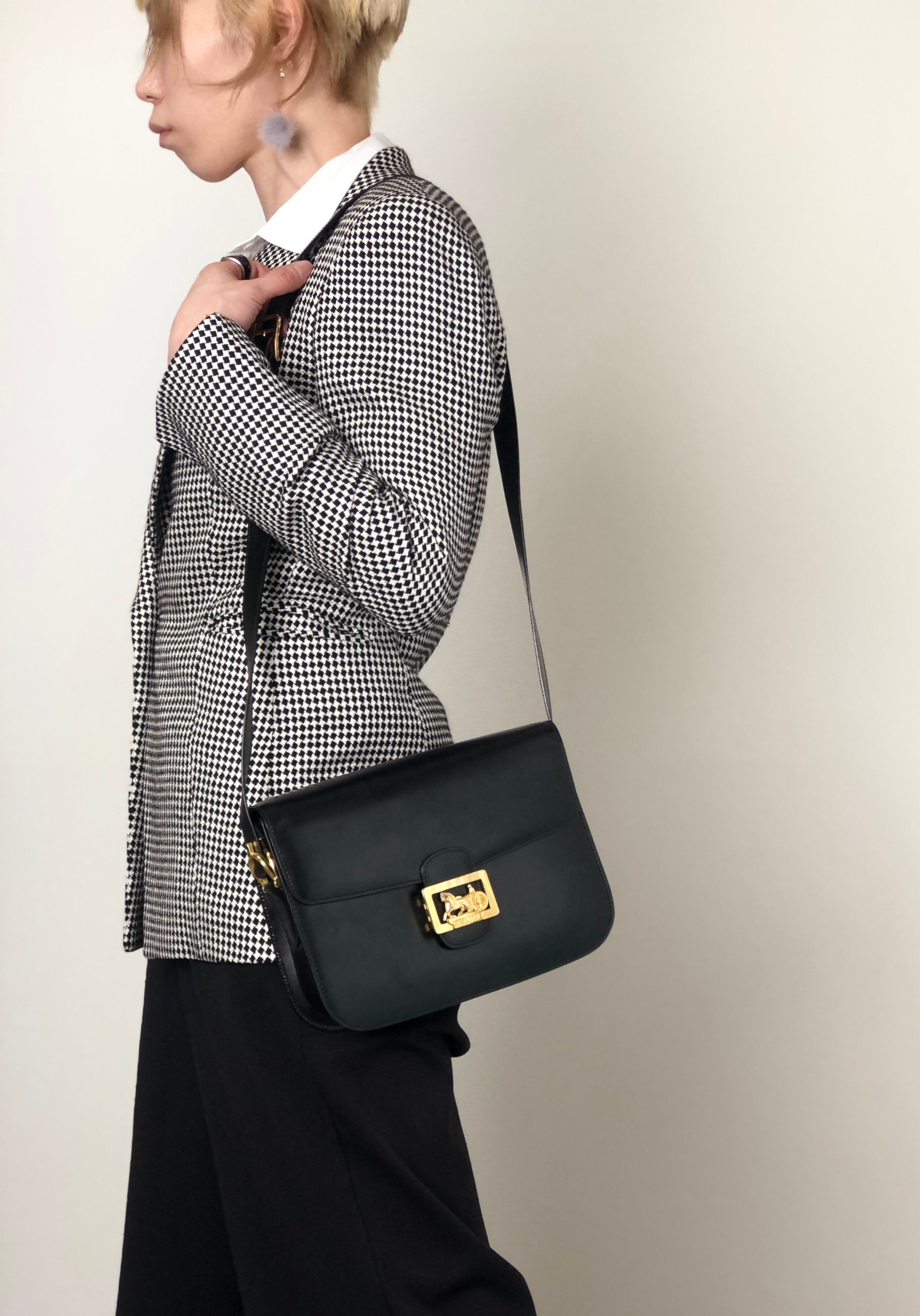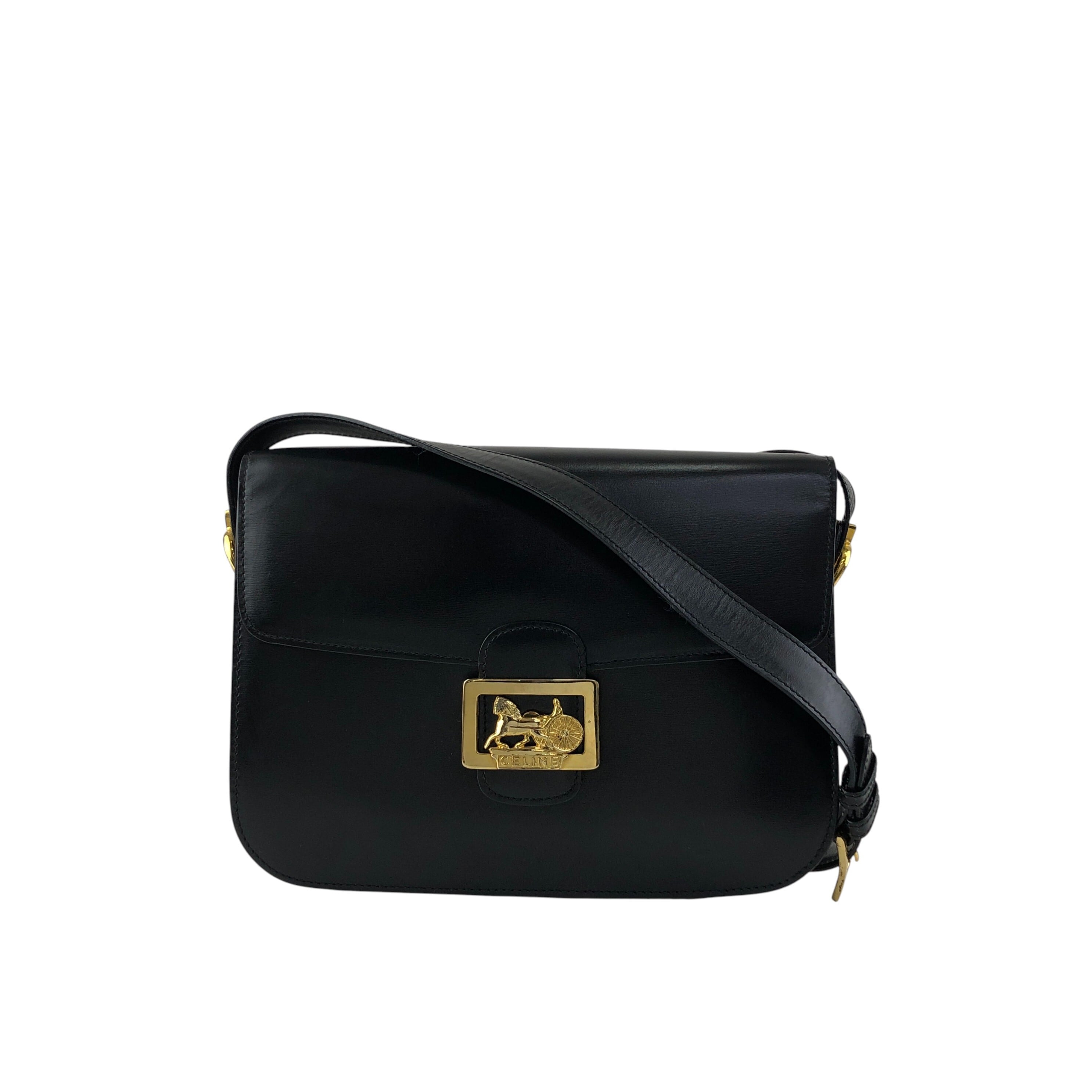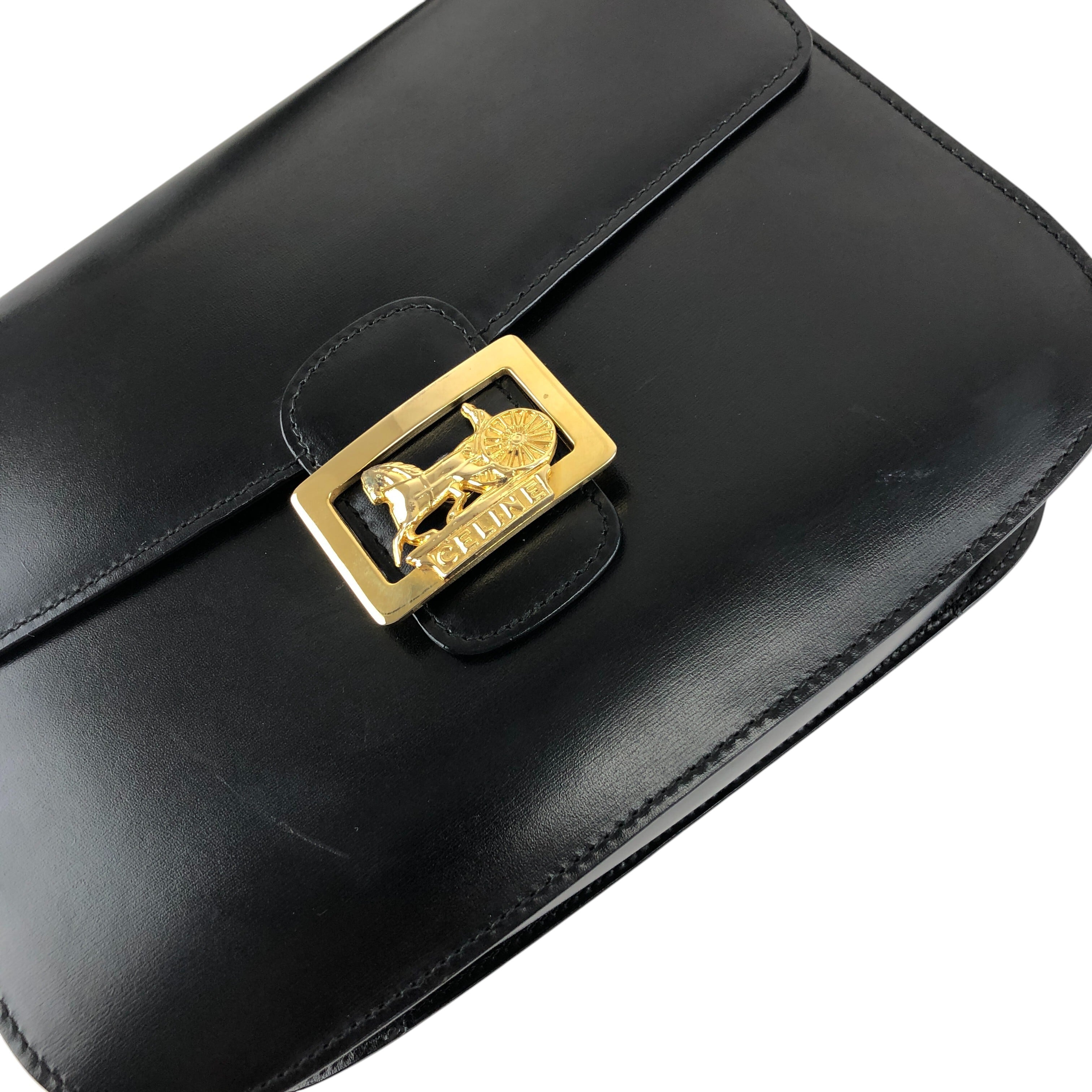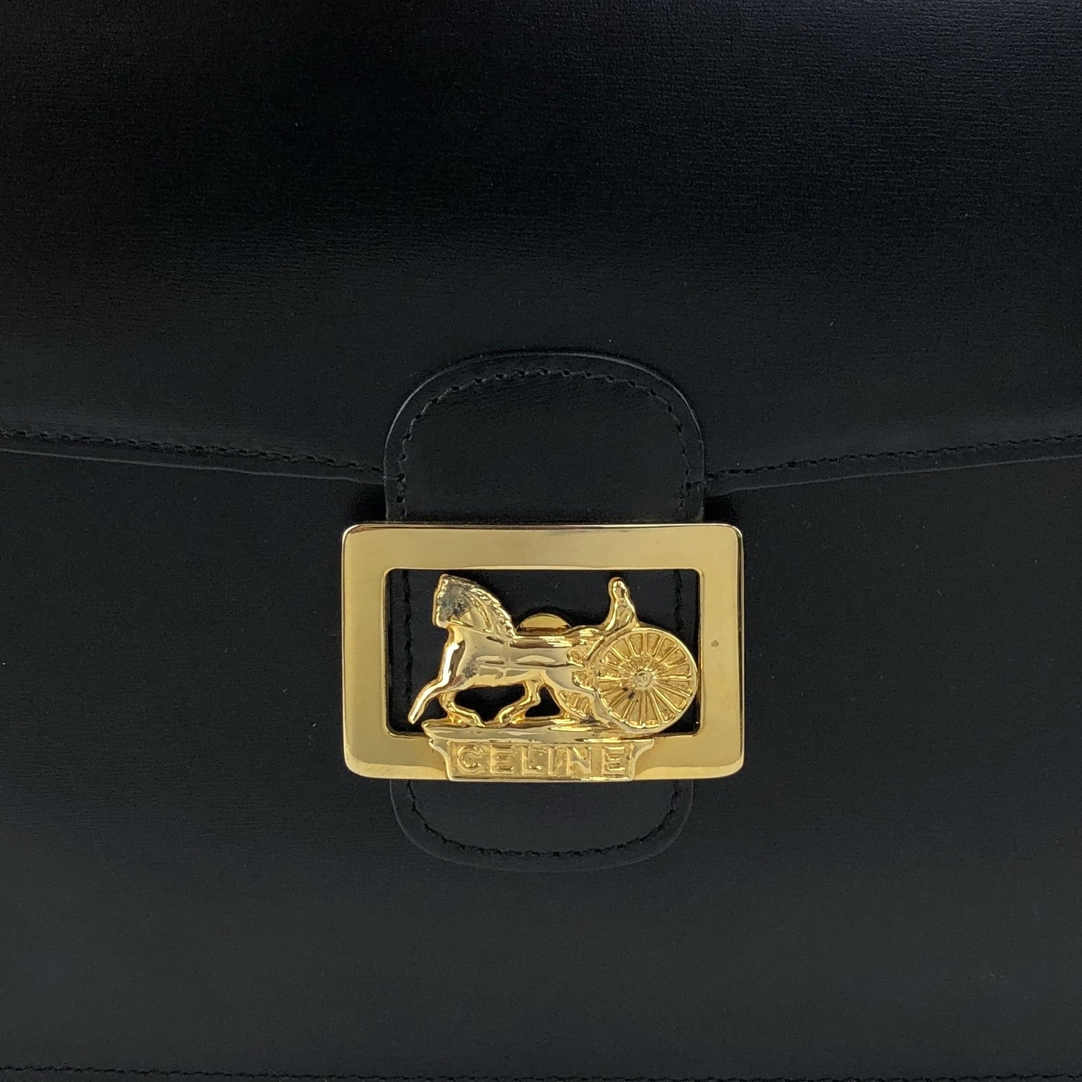 CELINE セリーヌ ショルダーバッグ ブラック ホースキャリッジ レザー vintage ヴィンテージ オールド jw6dji
