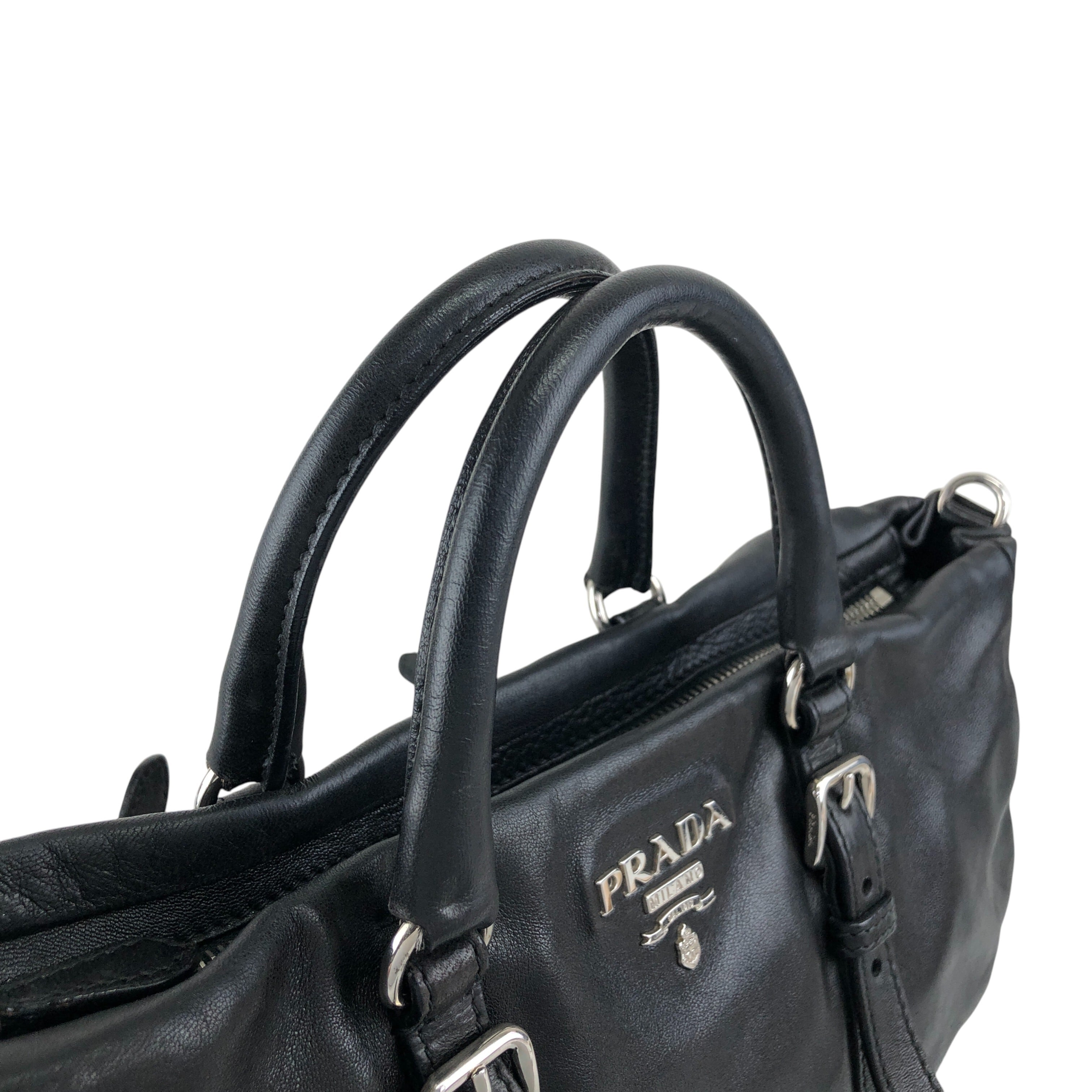 PRADA プラダ ハンドバッグ ブラック ロゴ レザー vintage ヴィンテージ オールド 2n4xpw