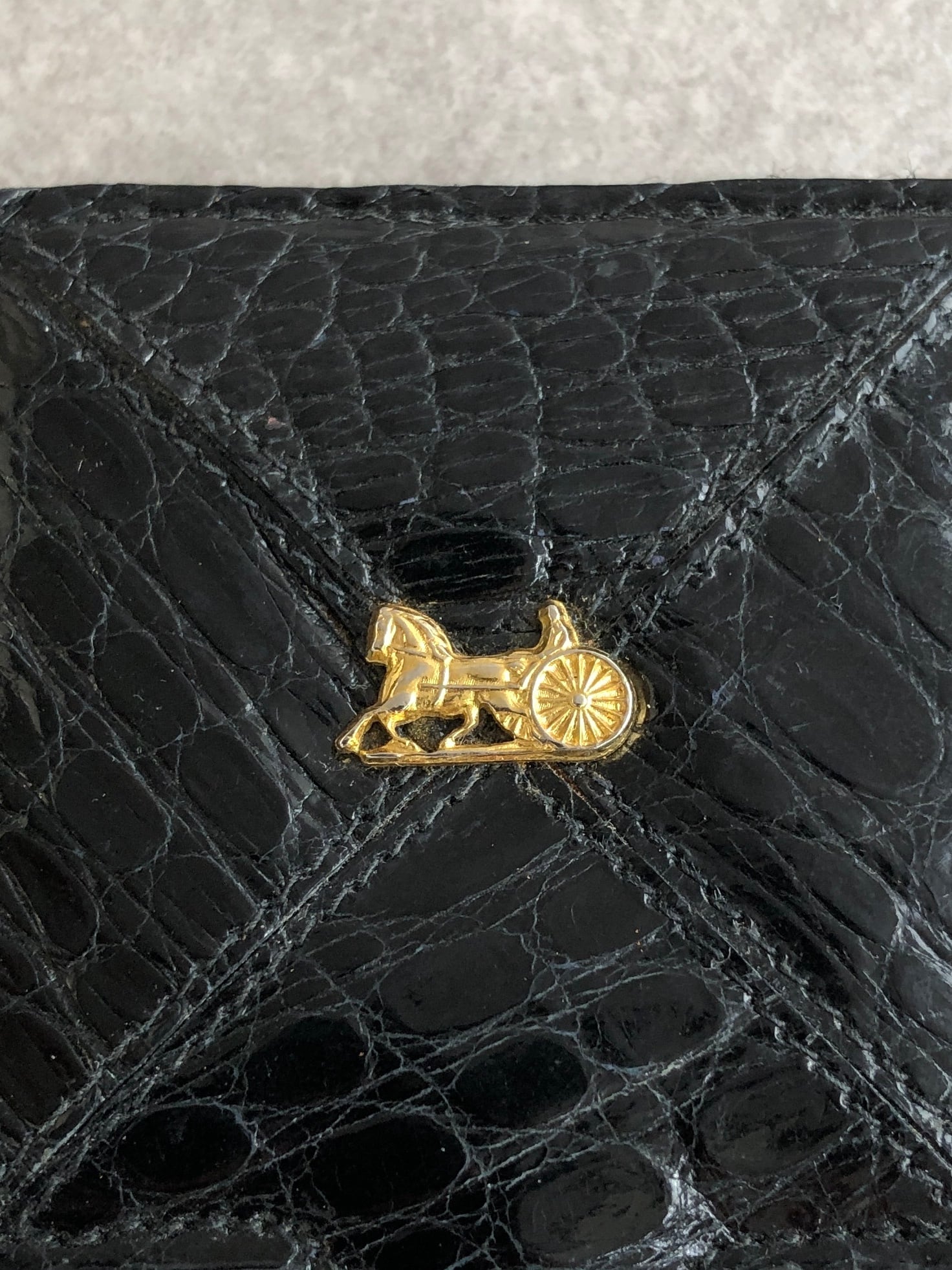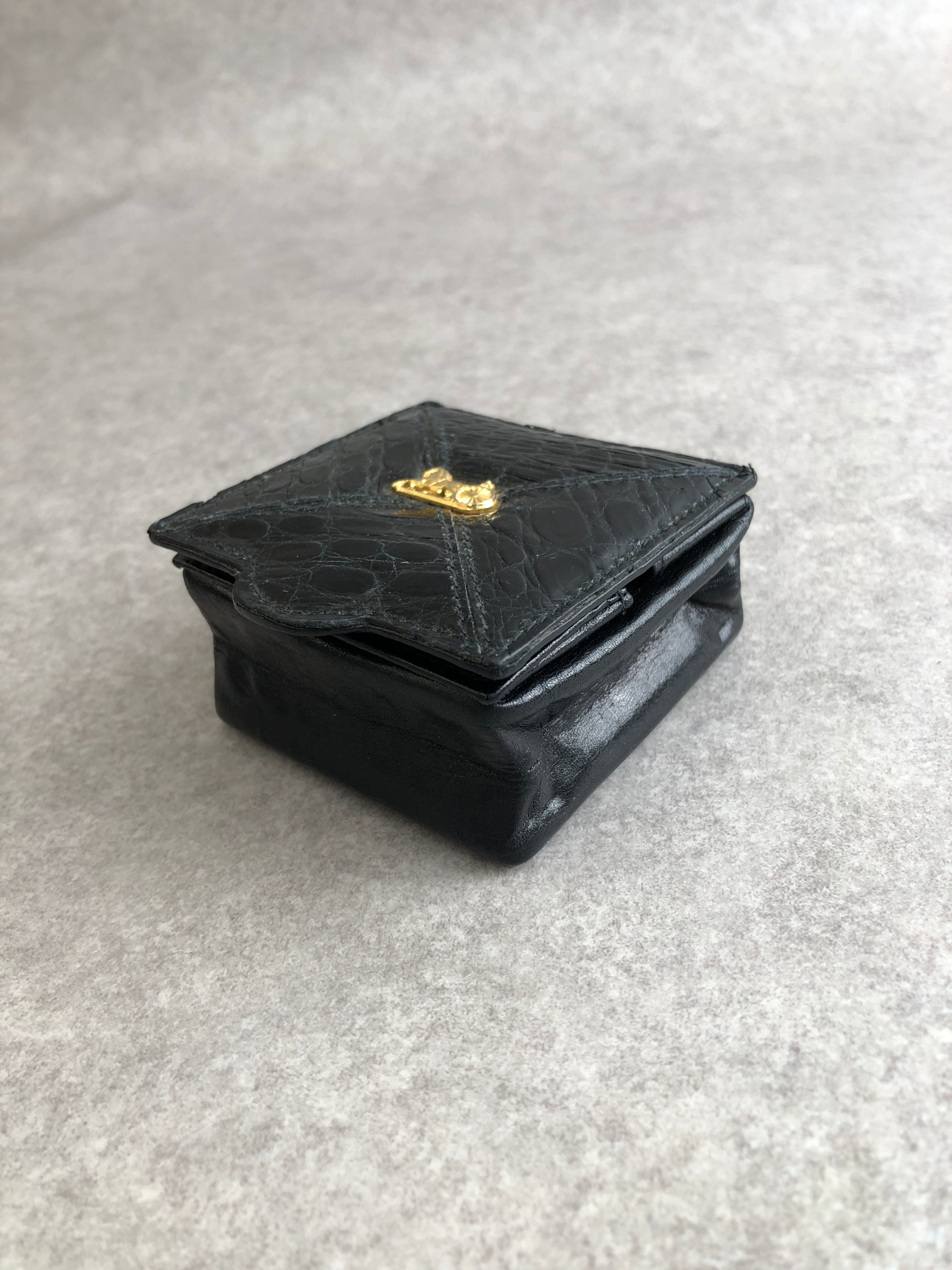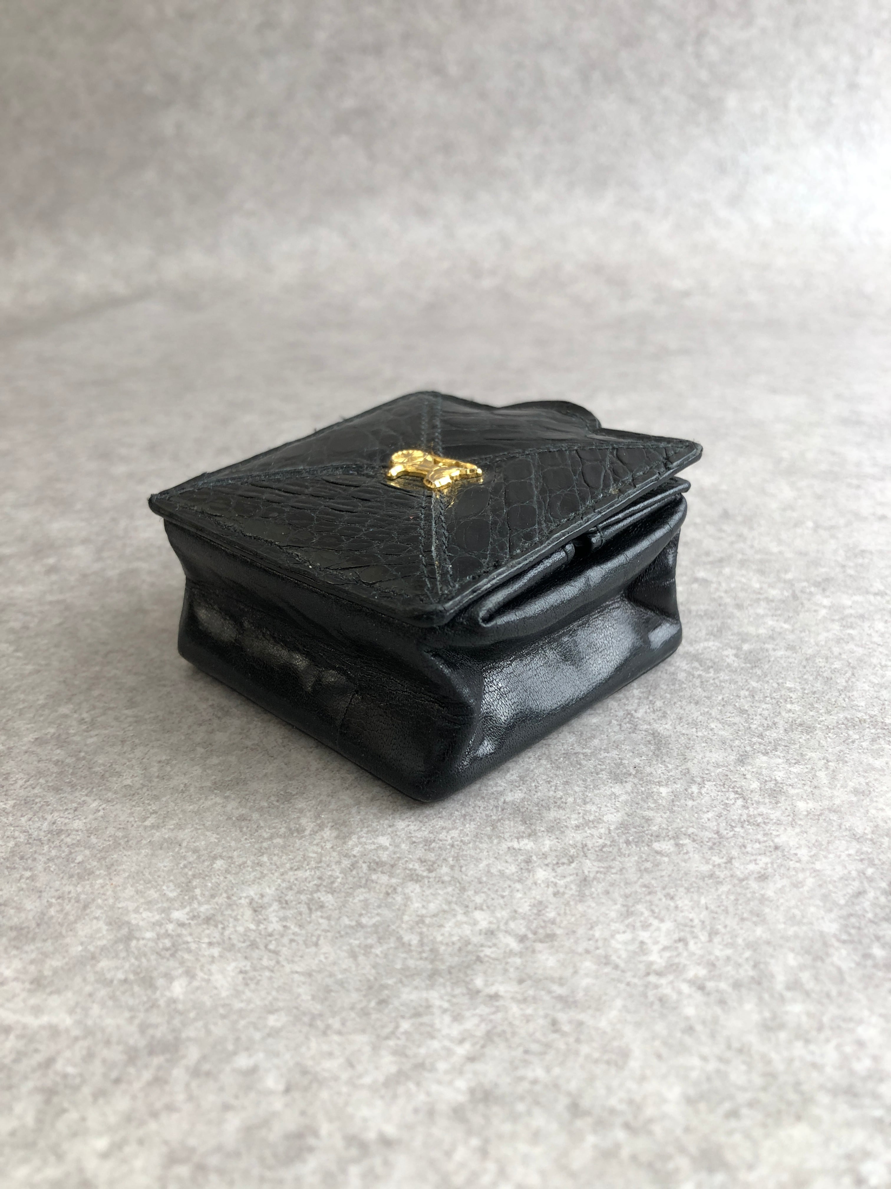 CELINE セリーヌ コインケース ブラック ホースキャリッジ レザー クロコ型押し vintage ヴィンテージ オールド xtzphh