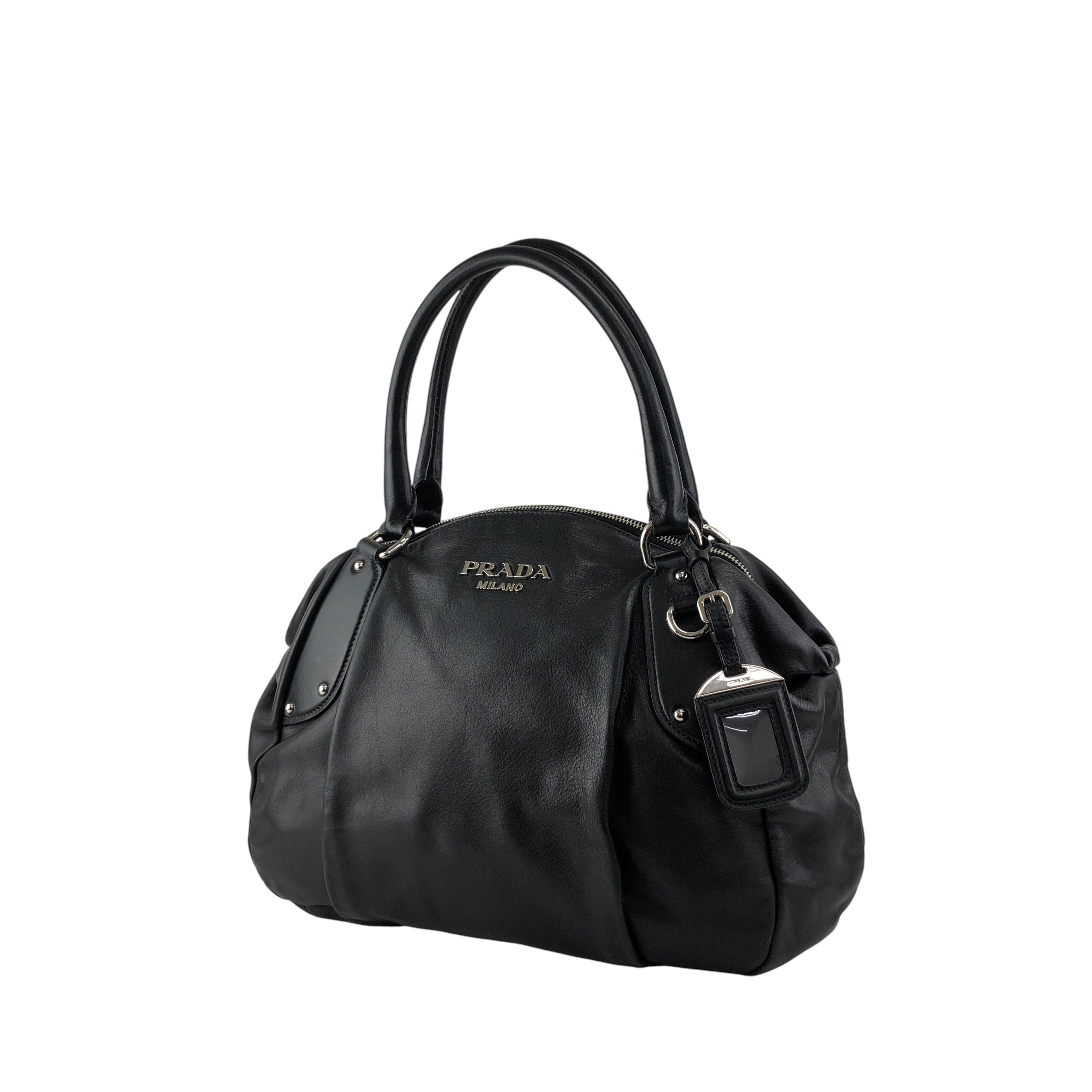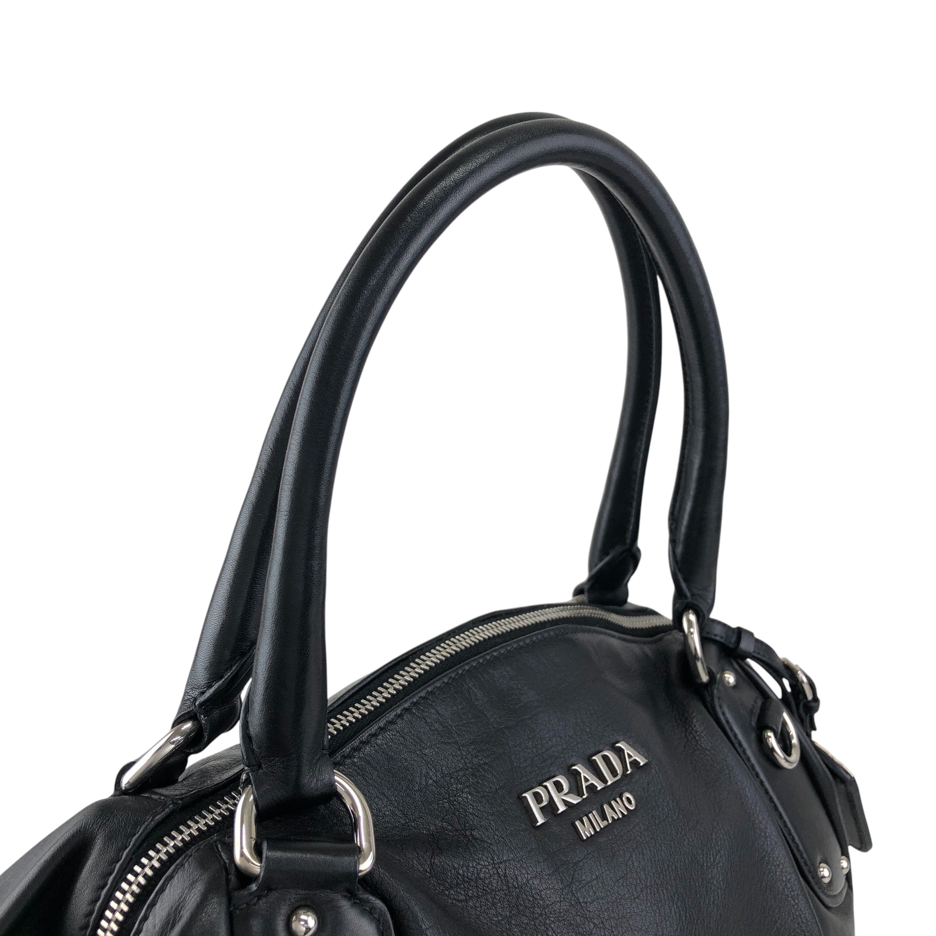 PRADA プラダ ハンドバッグ ブラック ロゴ レザー vintage ヴィンテージ オールド w6ty5k
