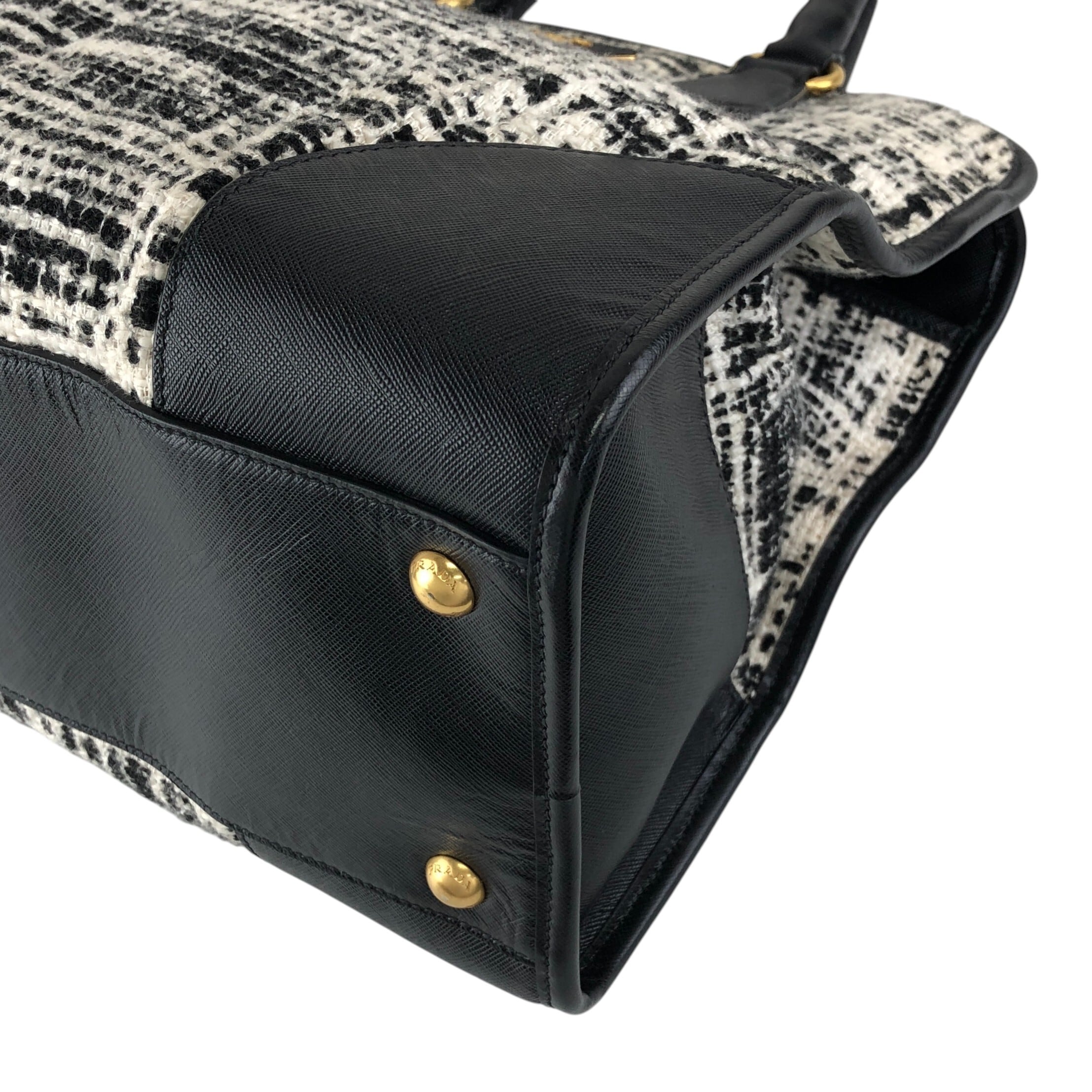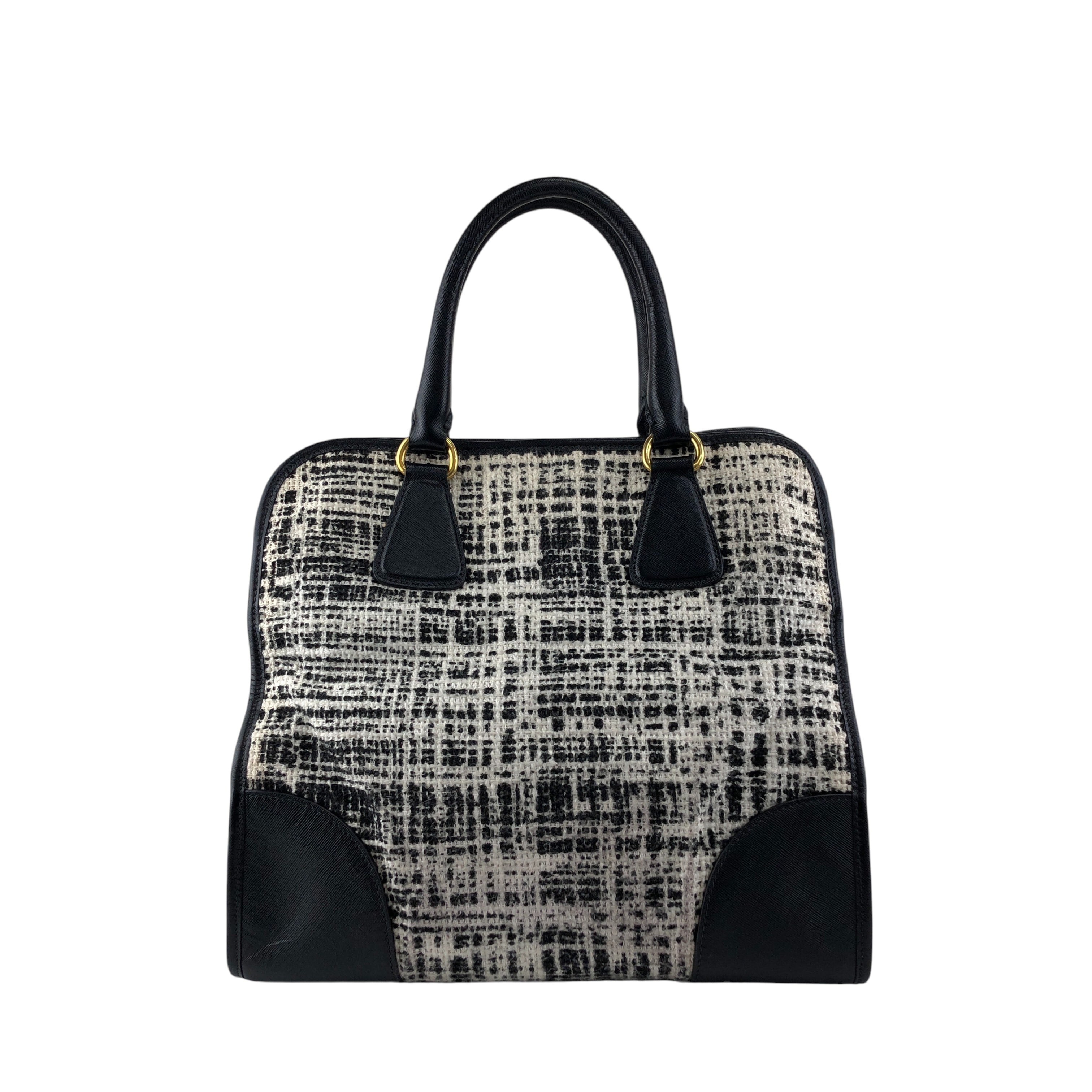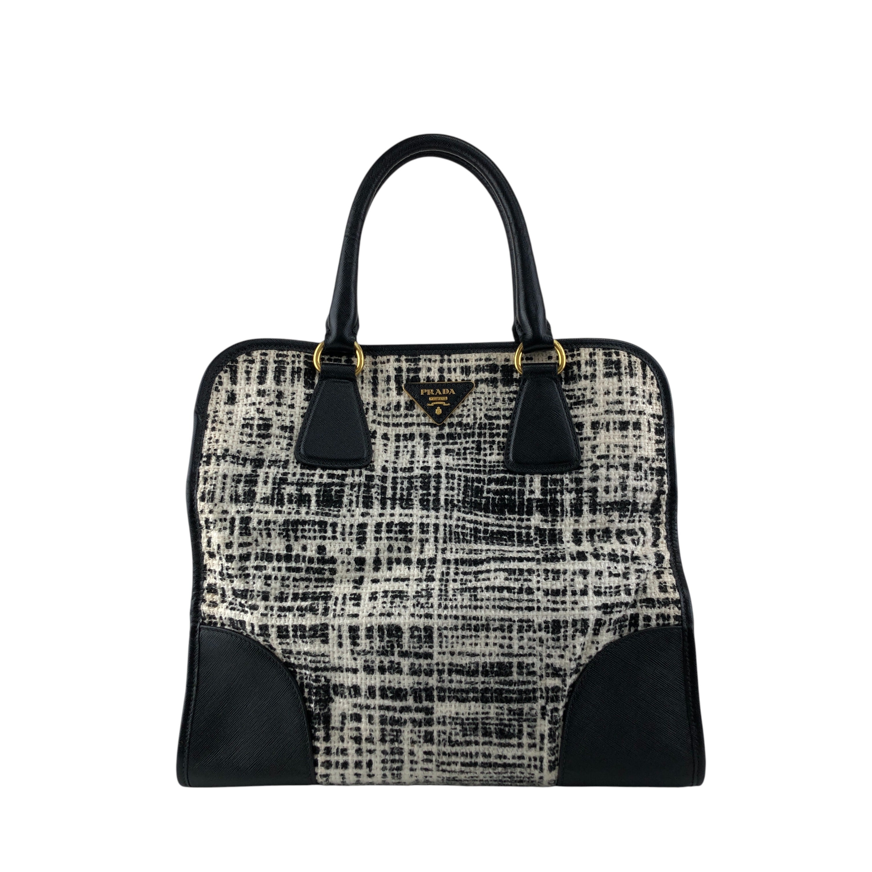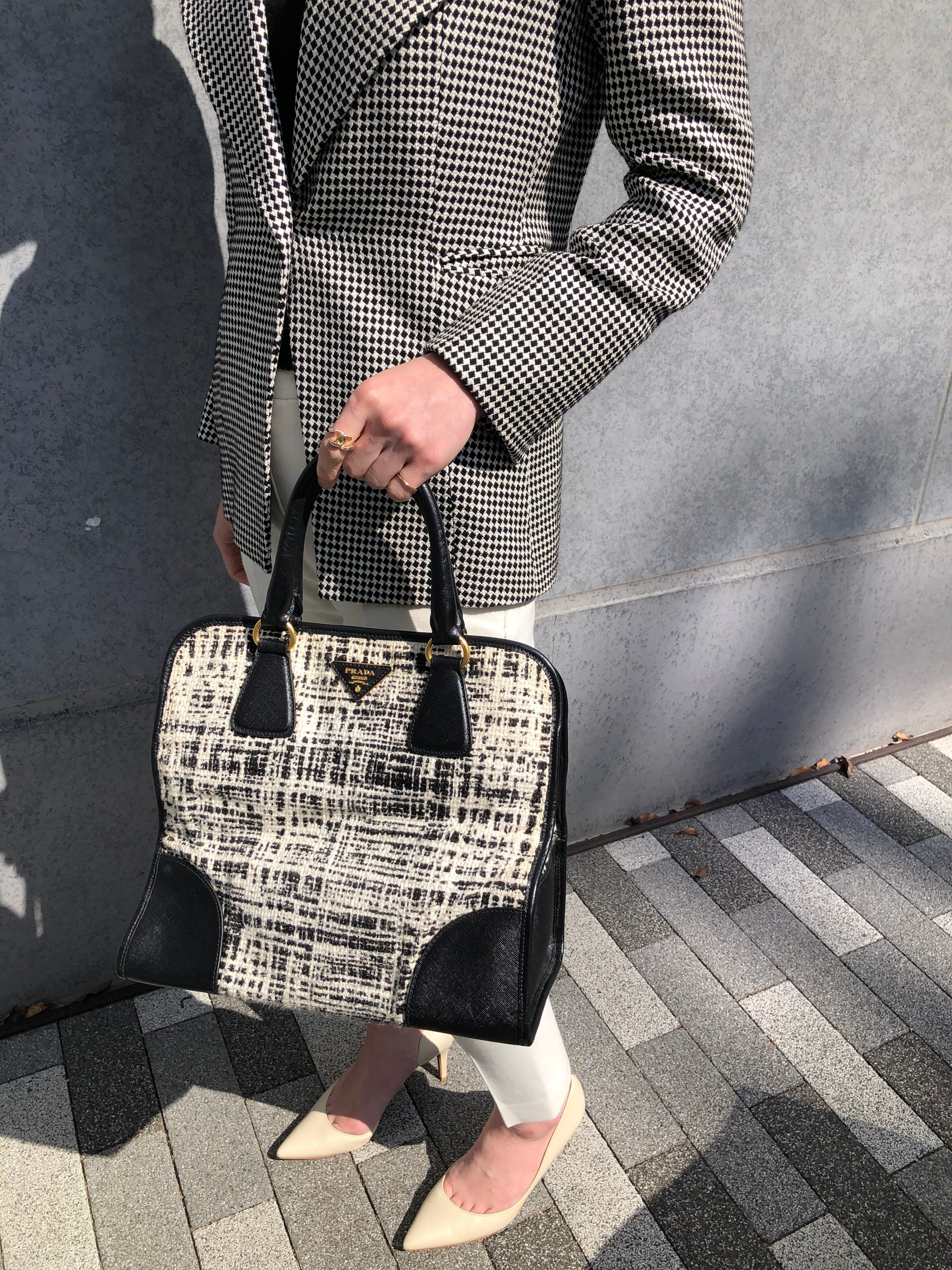 PRADA プラダ ハンドバッグ ホワイト ブラック トライアングルロゴ ファブリック ツイード vintage ヴィンテージ オールド xpzwfz