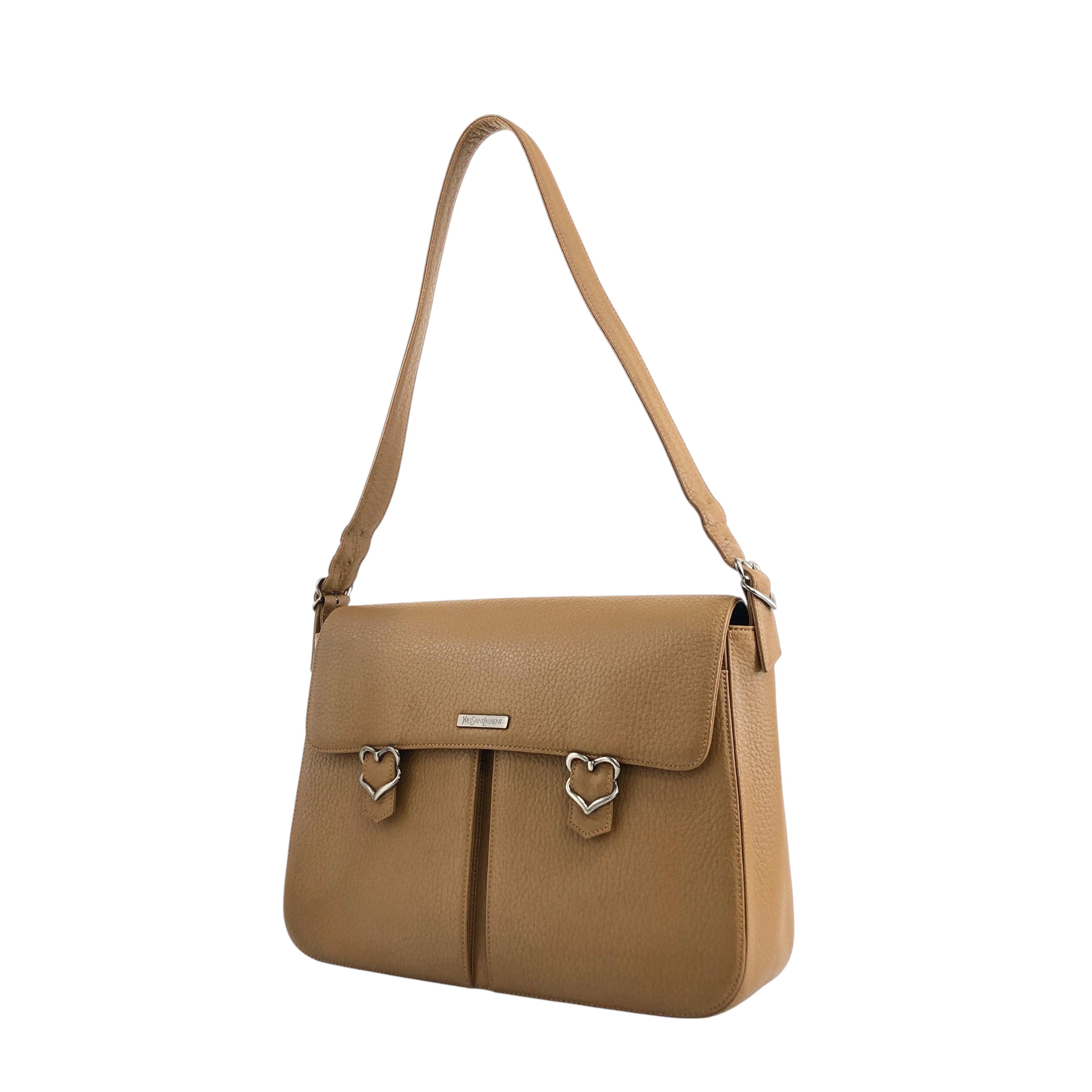 Yves Saint Laurent イヴ・サンローラン ショルダーバッグ キャメル ハートベルト レザー フラップ ワンショルダー vintage ヴィンテージ オールド dnyp4d