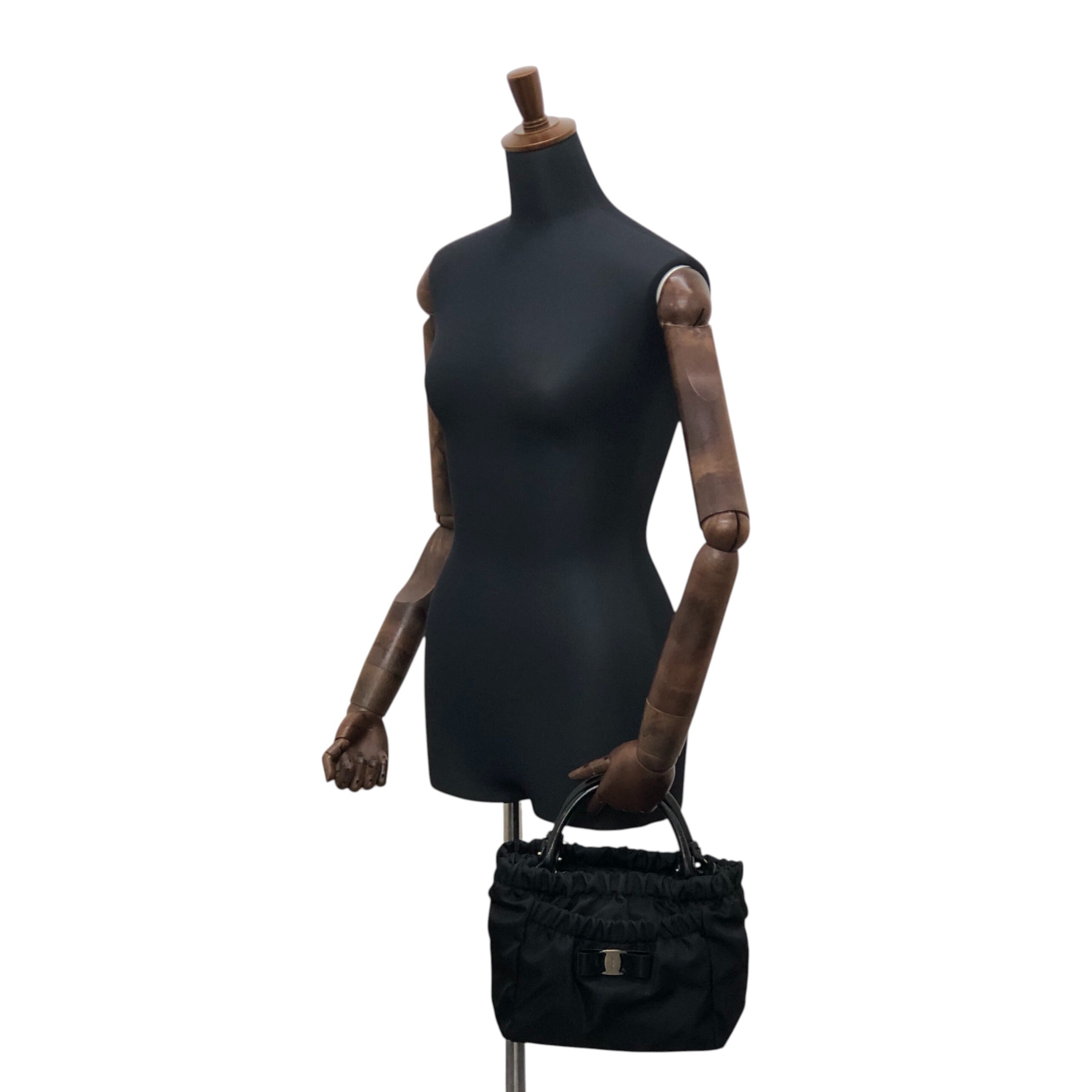 Salvatore Ferragamo サルヴァトーレ フェラガモ ハンドバッグ ブラック リボン ナイロン vintage ヴィンテージ オールド xucsbe