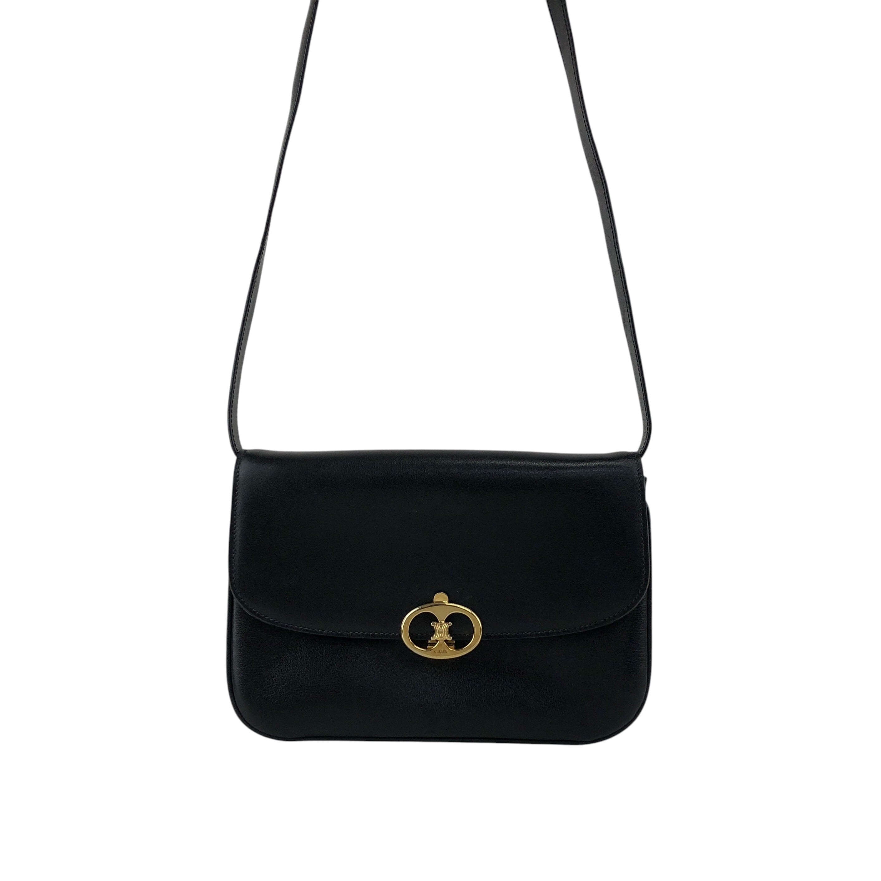 CELINE セリーヌ ショルダーバッグ ブラック トリオンフ レザー フラップ vintage ヴィンテージ オールド 6t3cvm