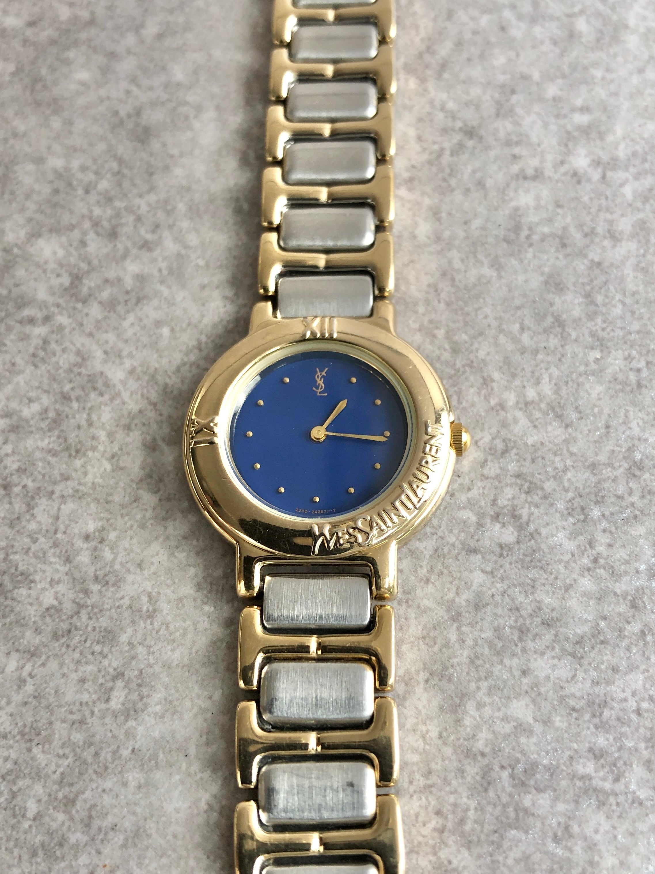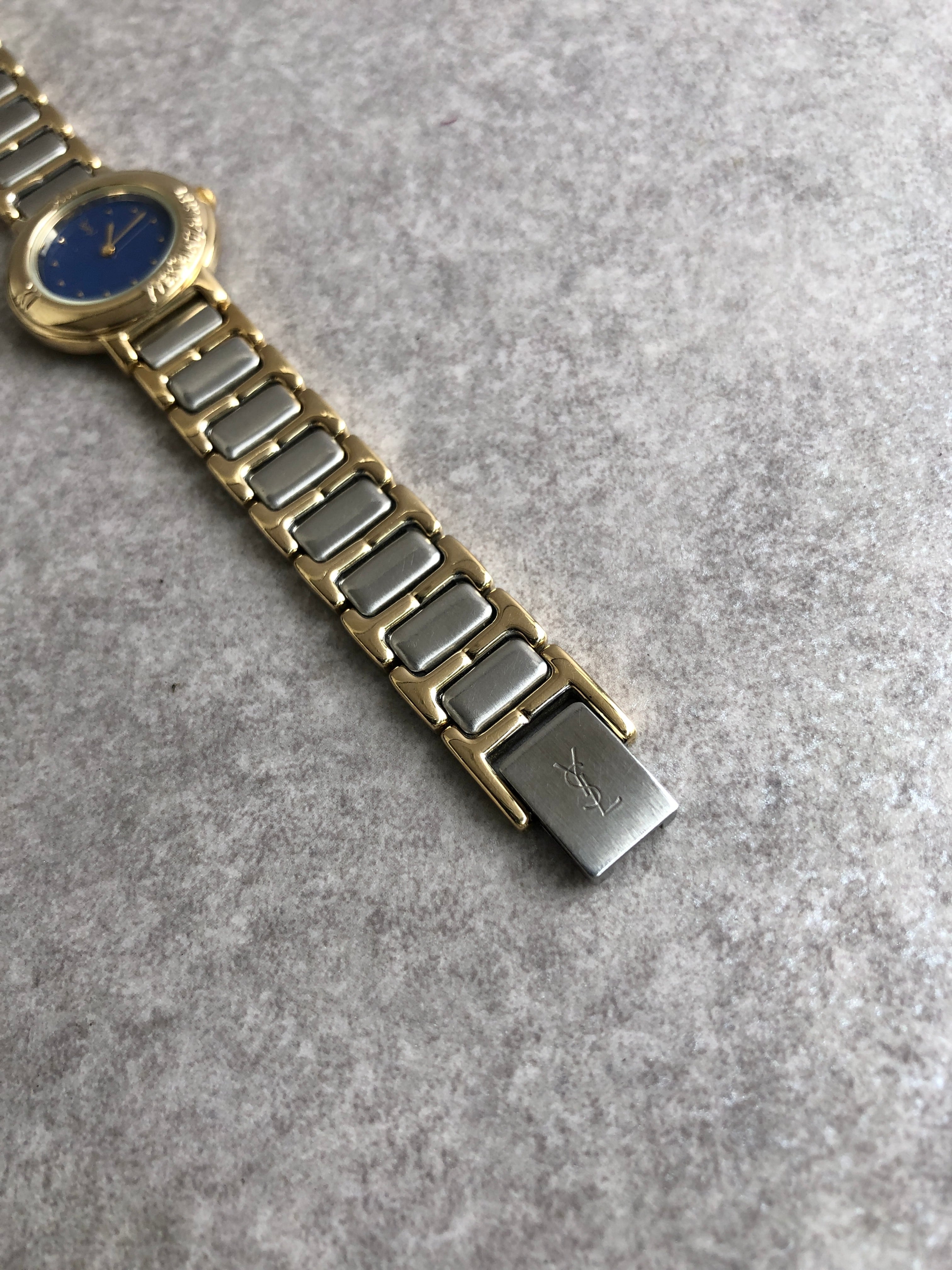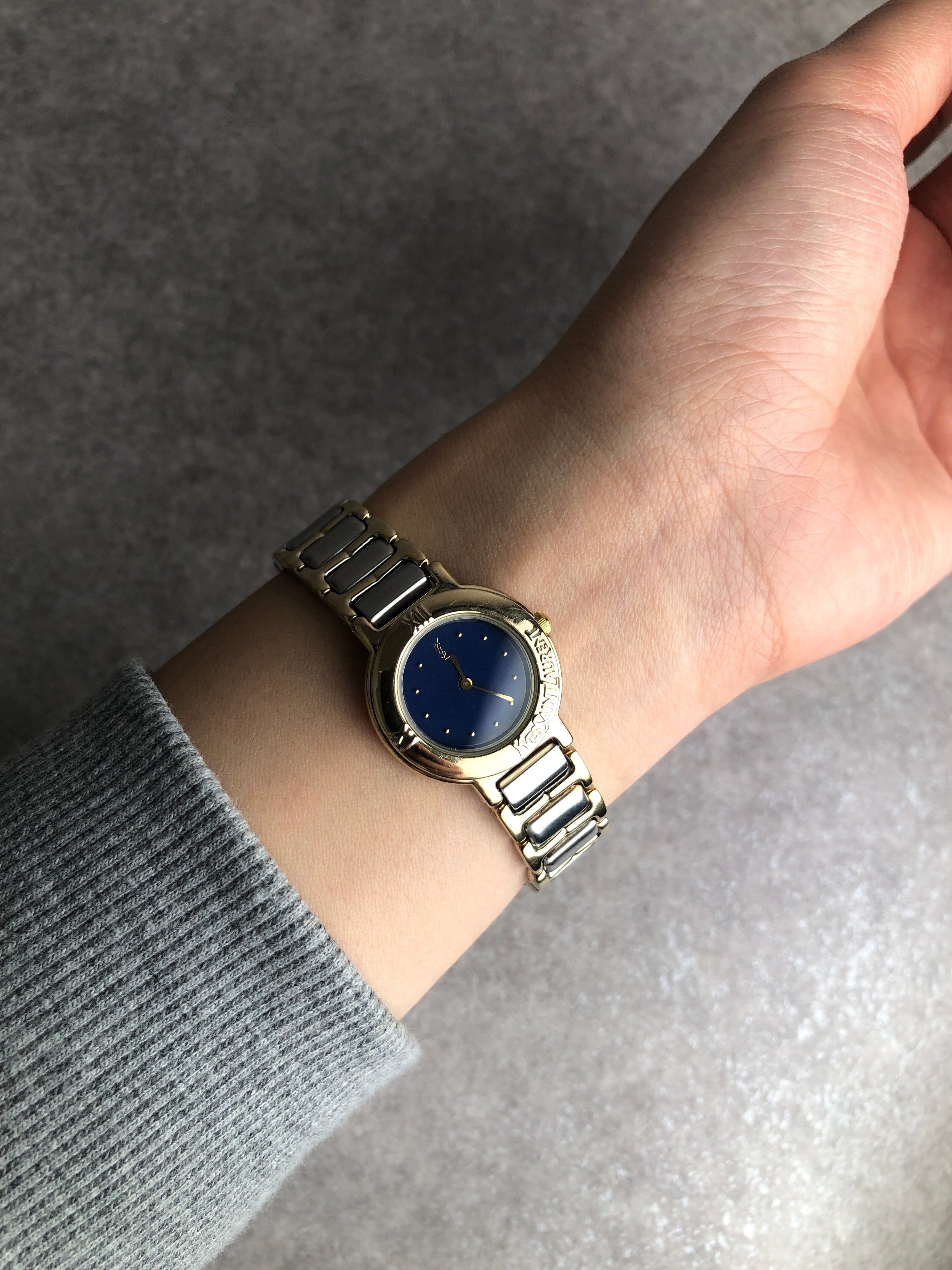 Yves Saint Laurent イヴ・サンローラン 腕時計 シルバー×ゴールド ラウンドロゴ vintage ヴィンテージ オールド 3vtjxx