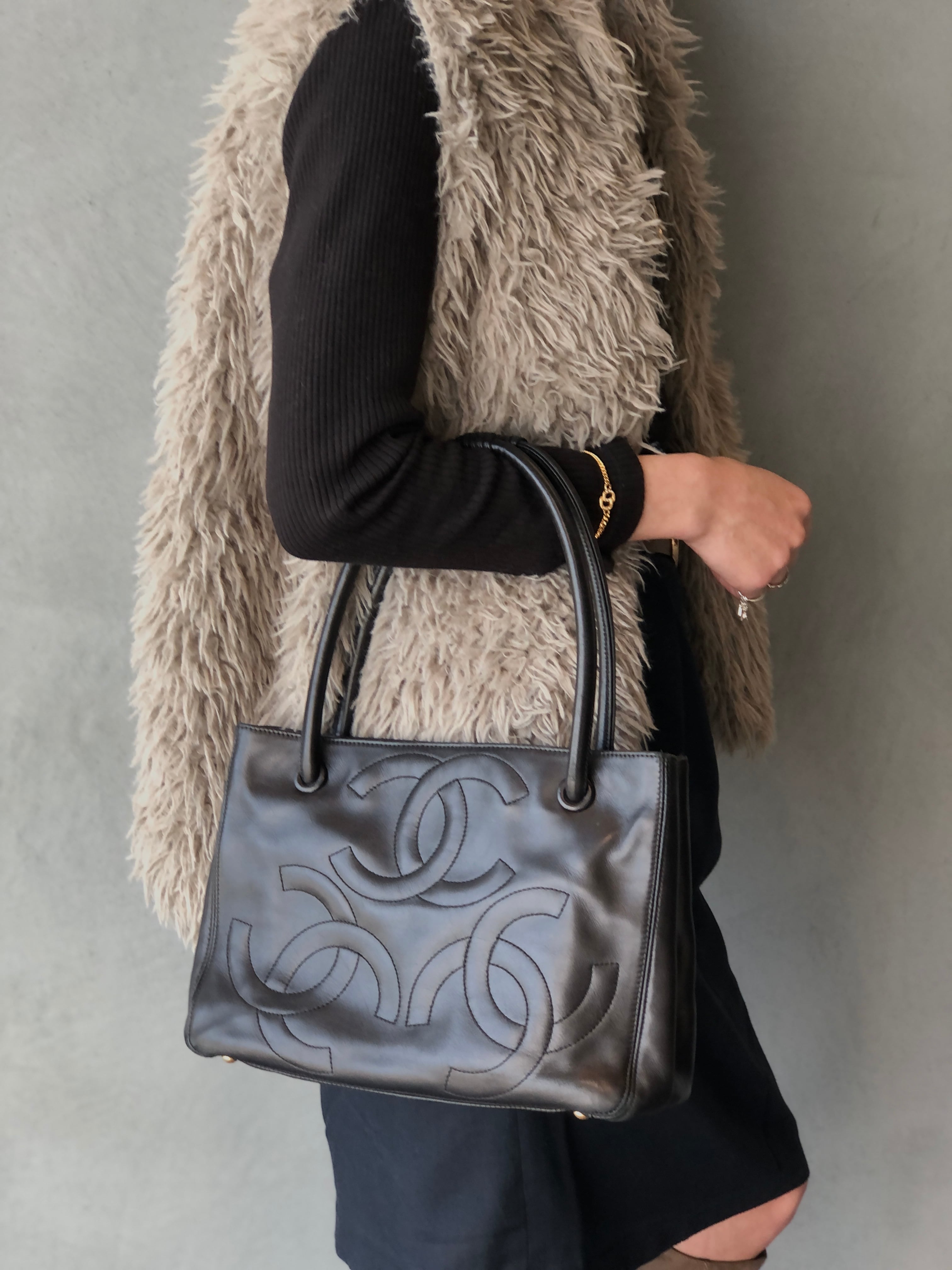 CHANEL シャネル トートバッグ ブラック ココマーク レザー トリプルココ vintage ヴィンテージ オールド k6gcrx