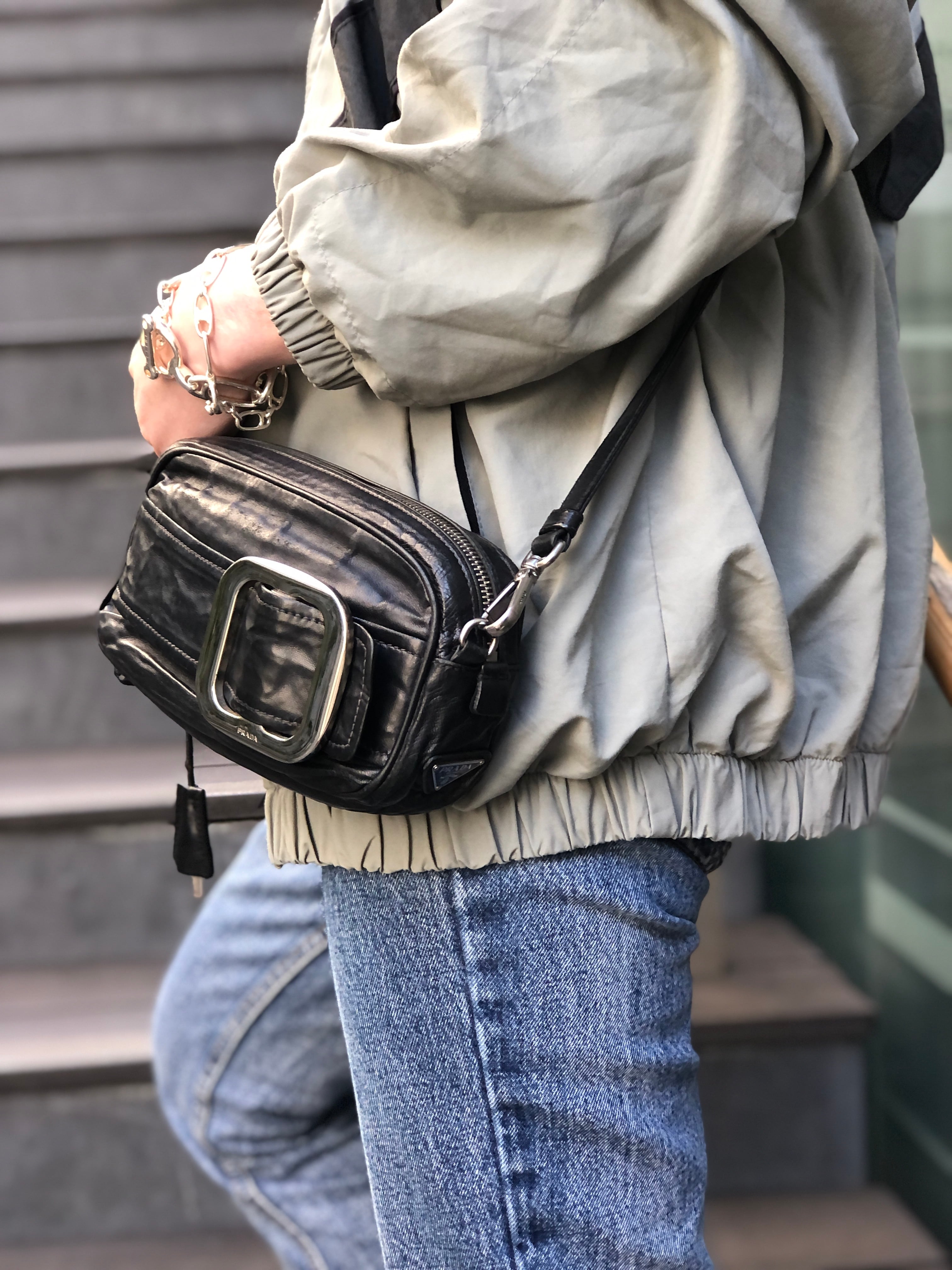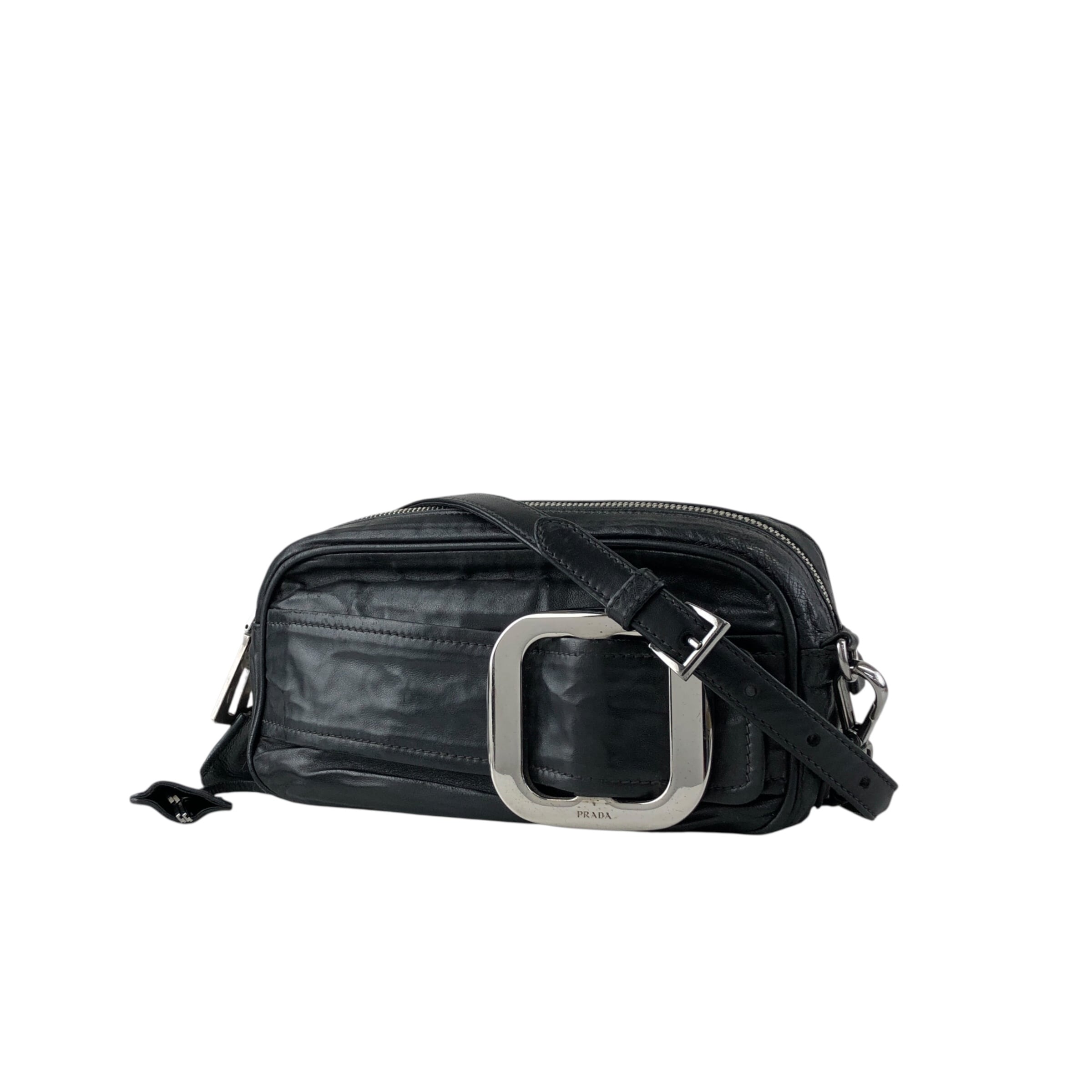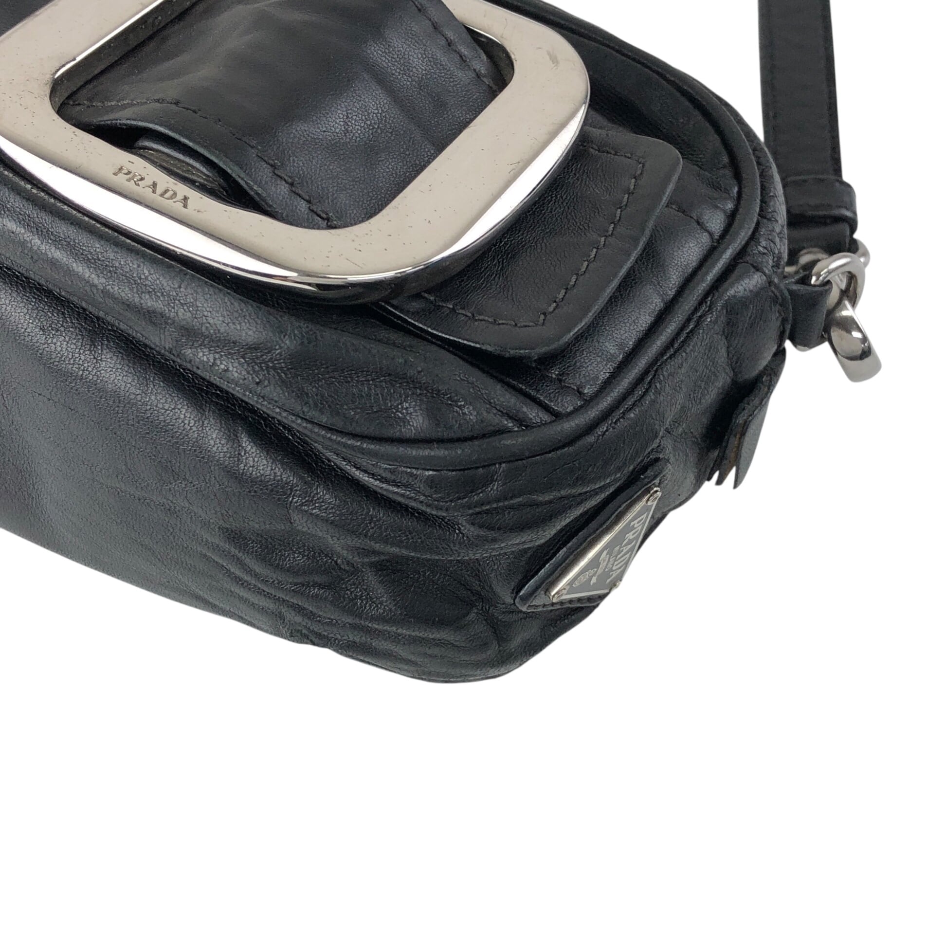 PRADA プラダ ショルダーバッグ ブラック バックルモチーフ レザー ミニバッグ vintage ヴィンテージ オールド cdnxfz