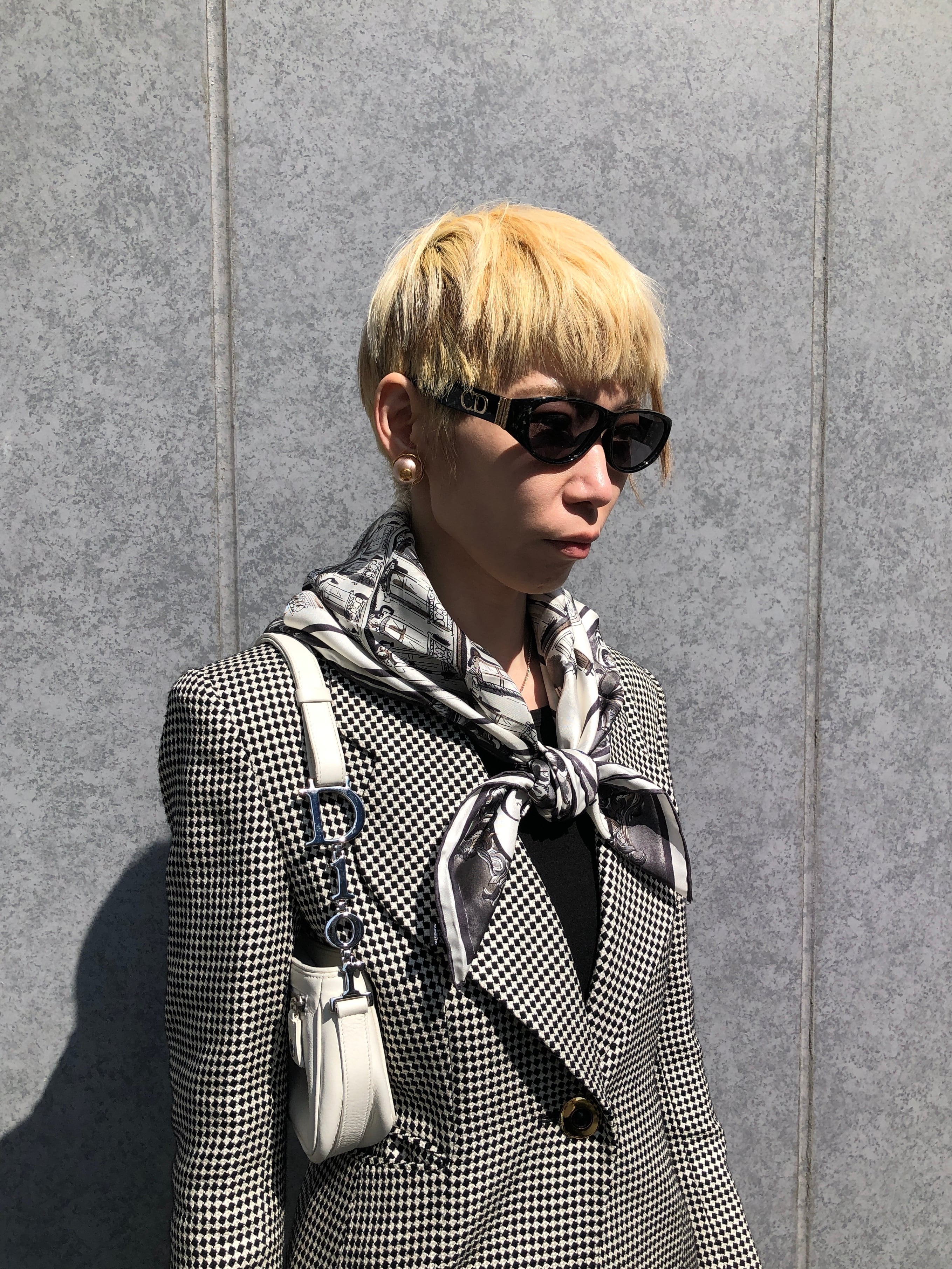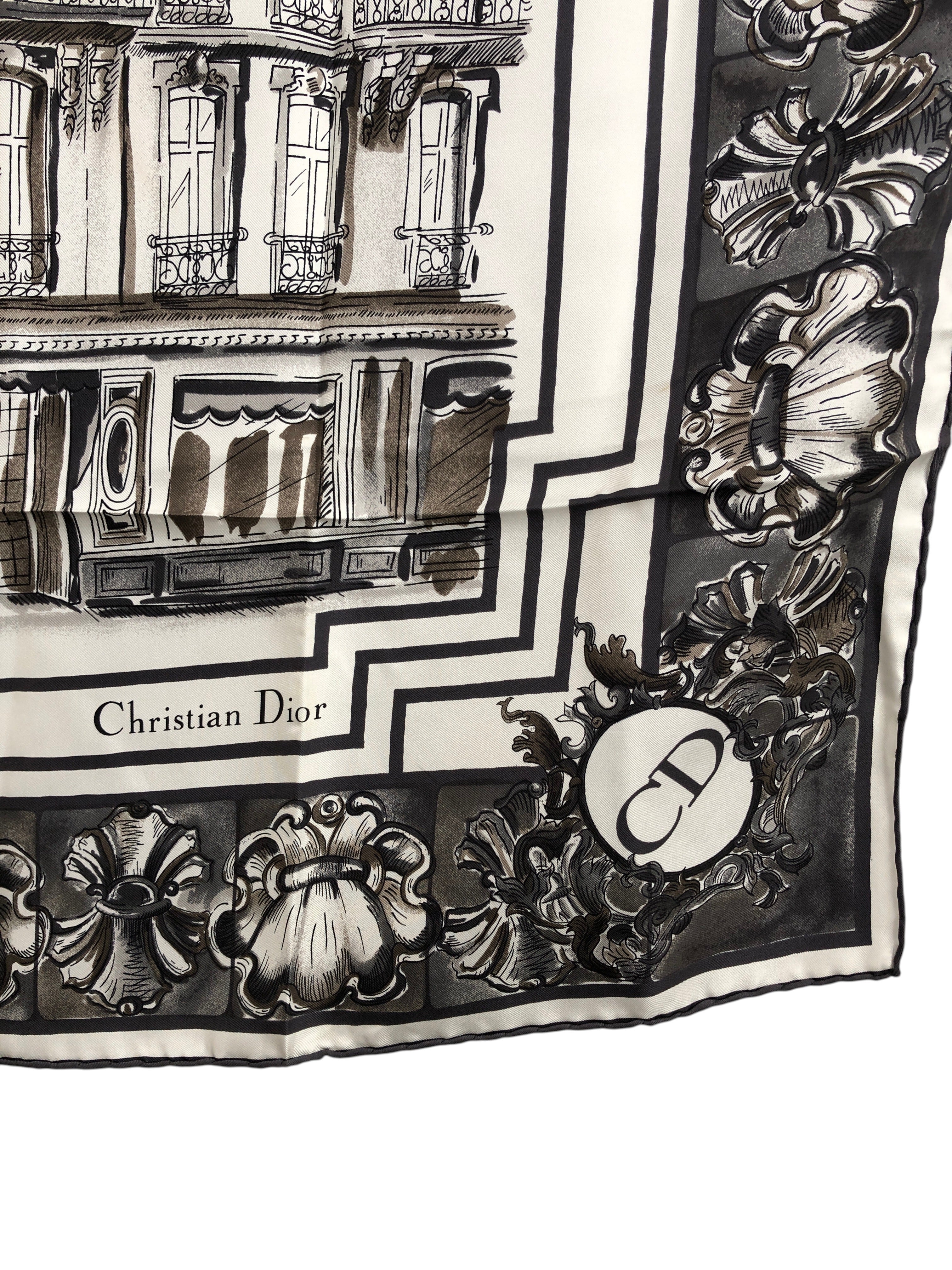 Christian Dior クリスチャン ディオール スカーフ ブラック×ホワイト 30モンテーニュ シルク vintage ヴィンテージ オールド 2dn4gf